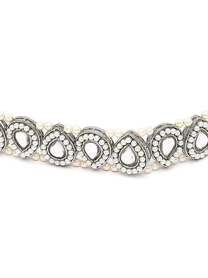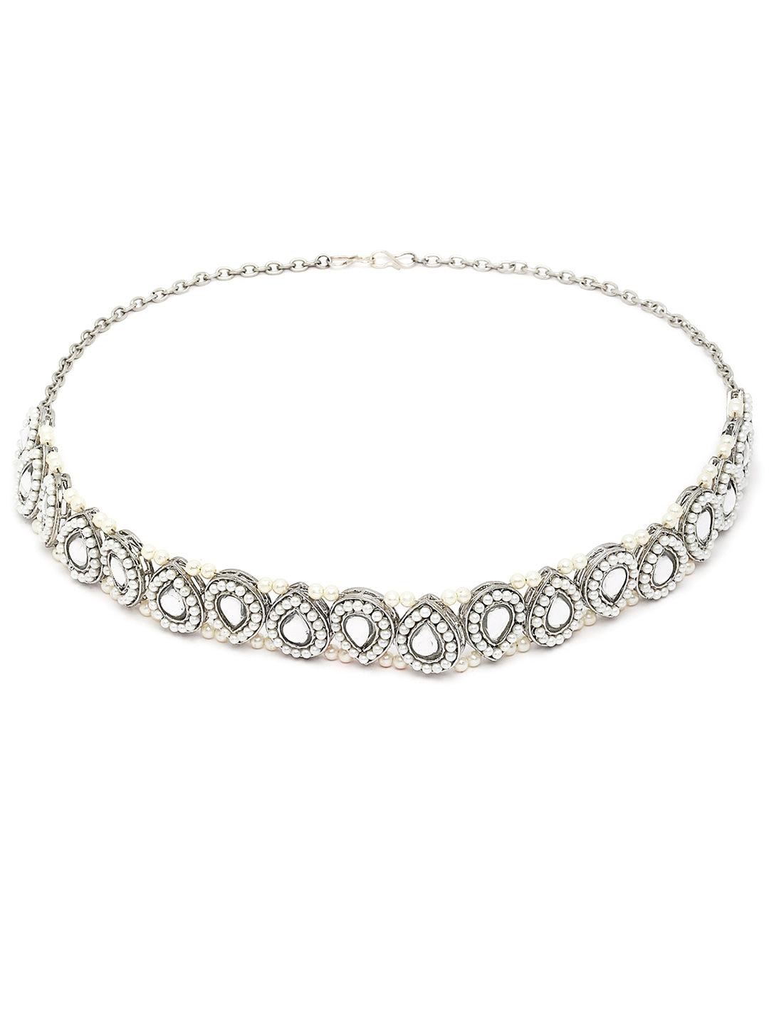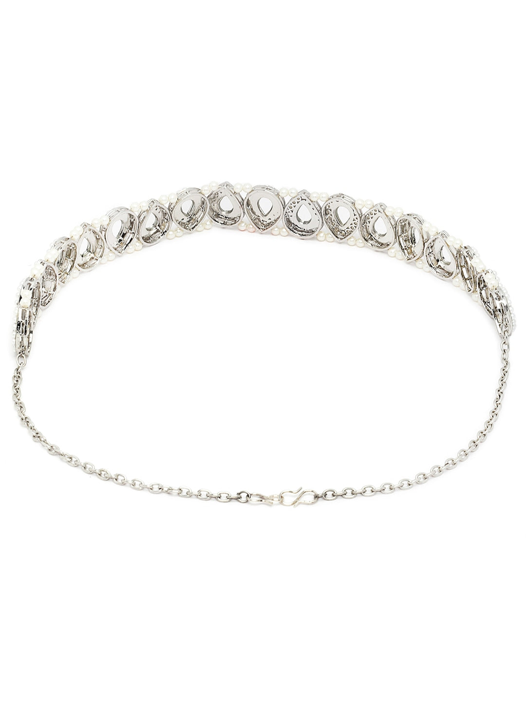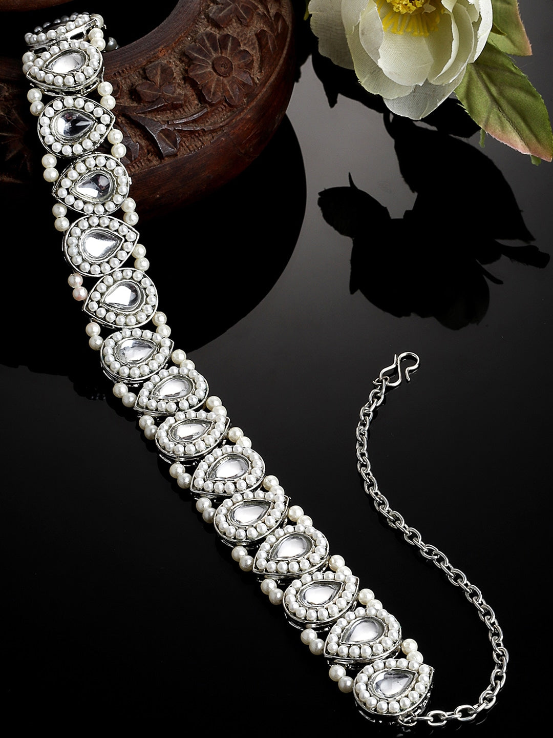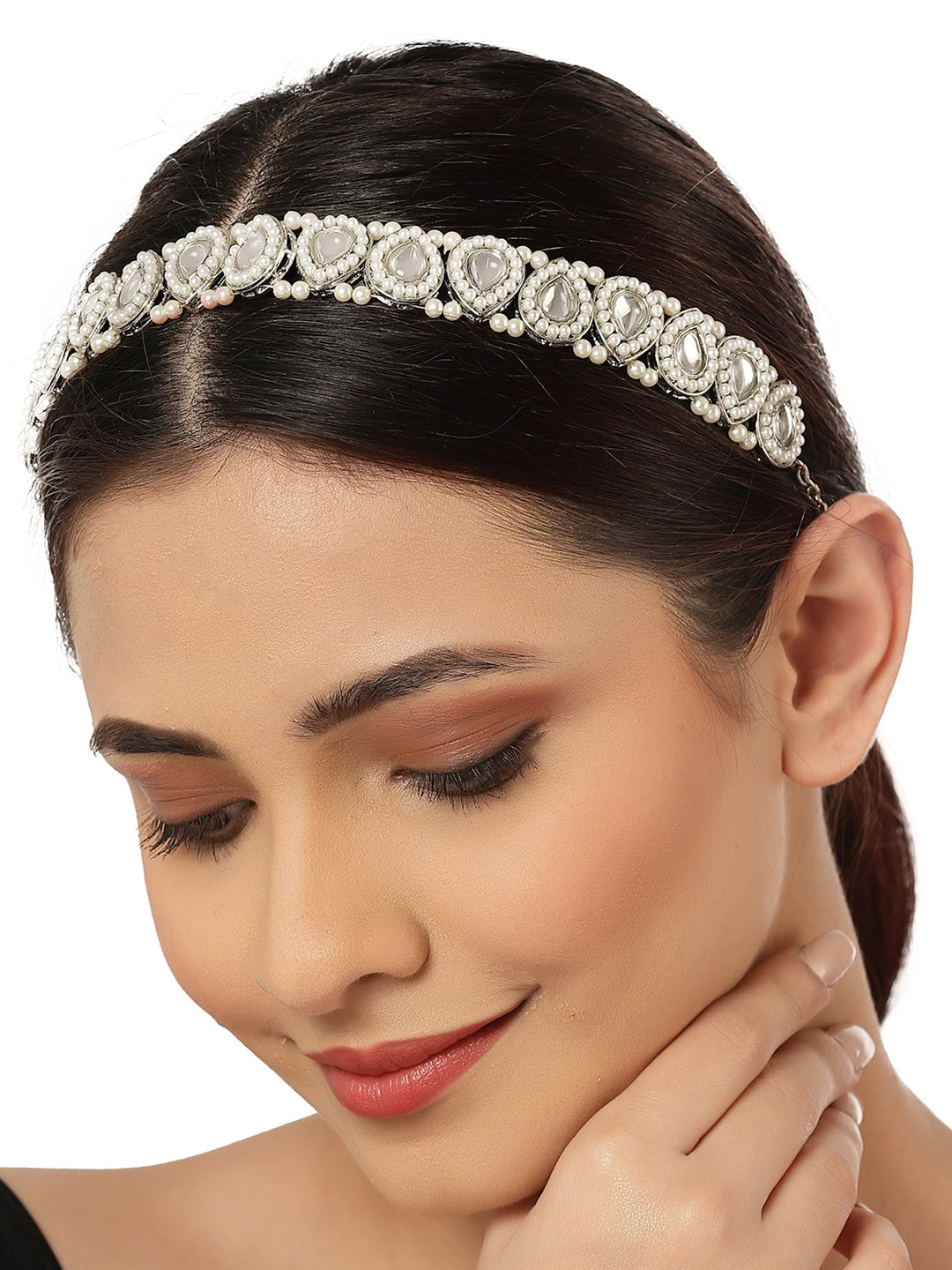 Women White & Silver-Toned Oxidised Kundan Studded Hairband