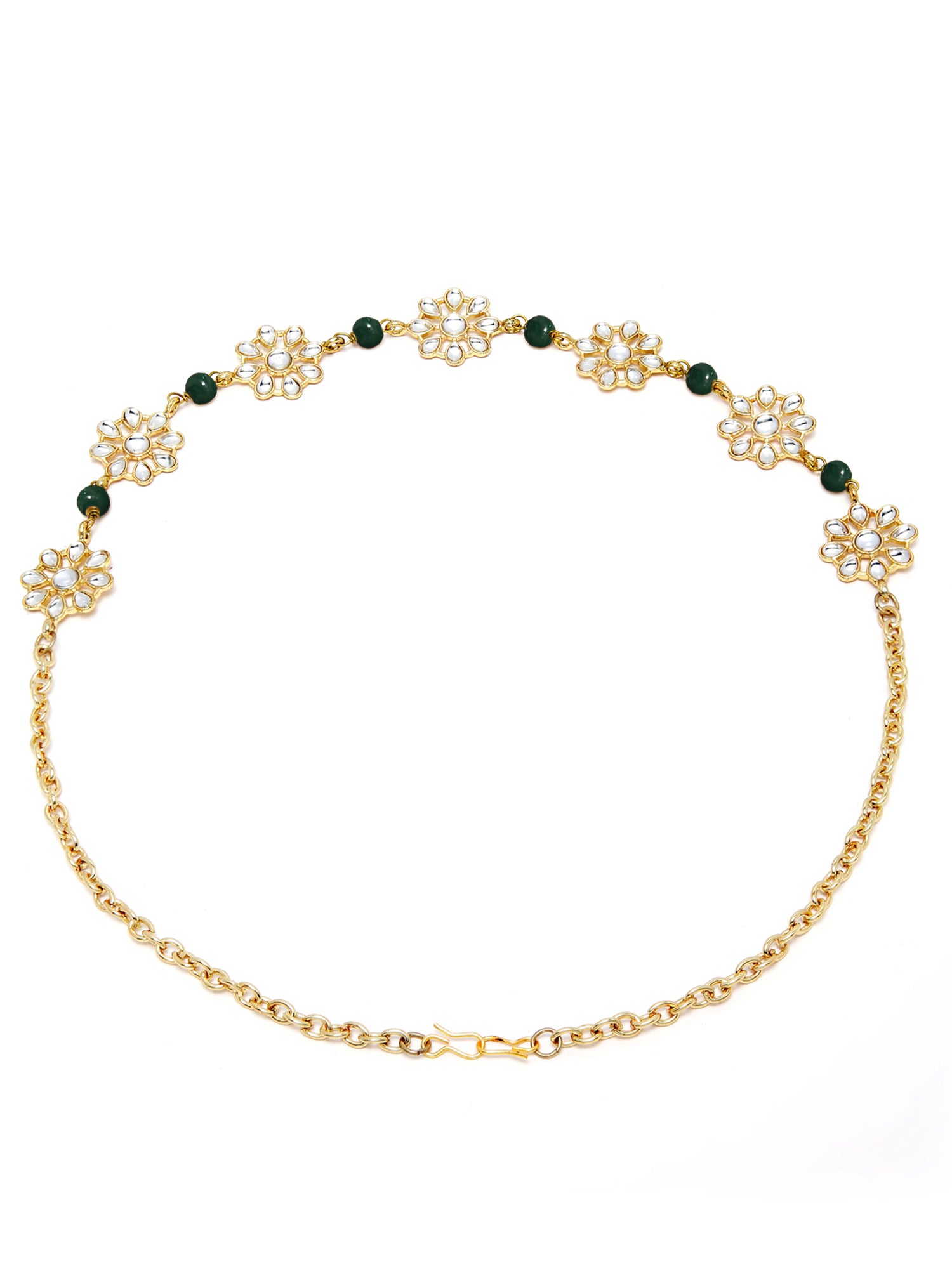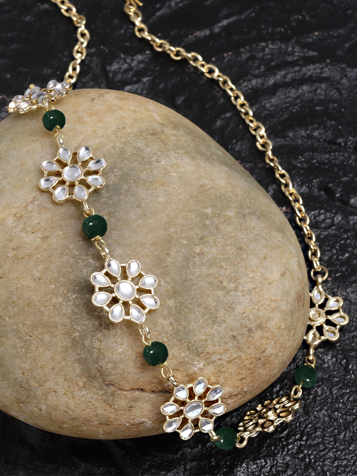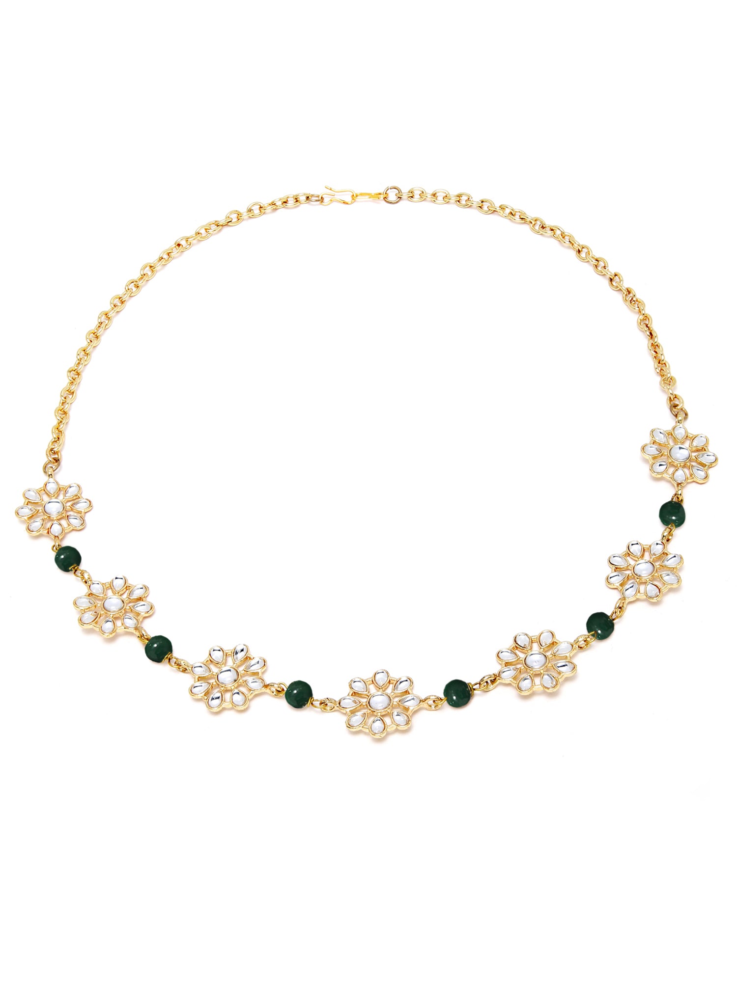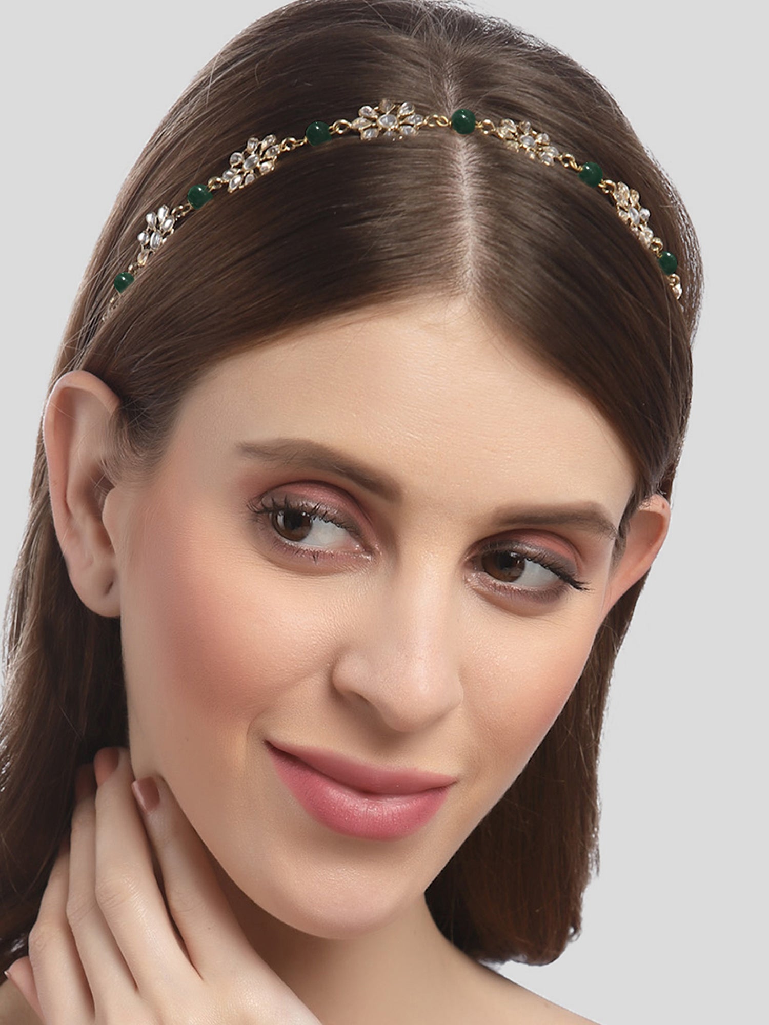 Karatcart Gold Plated Green Bead Studded Floral Kundan Hairband for Women