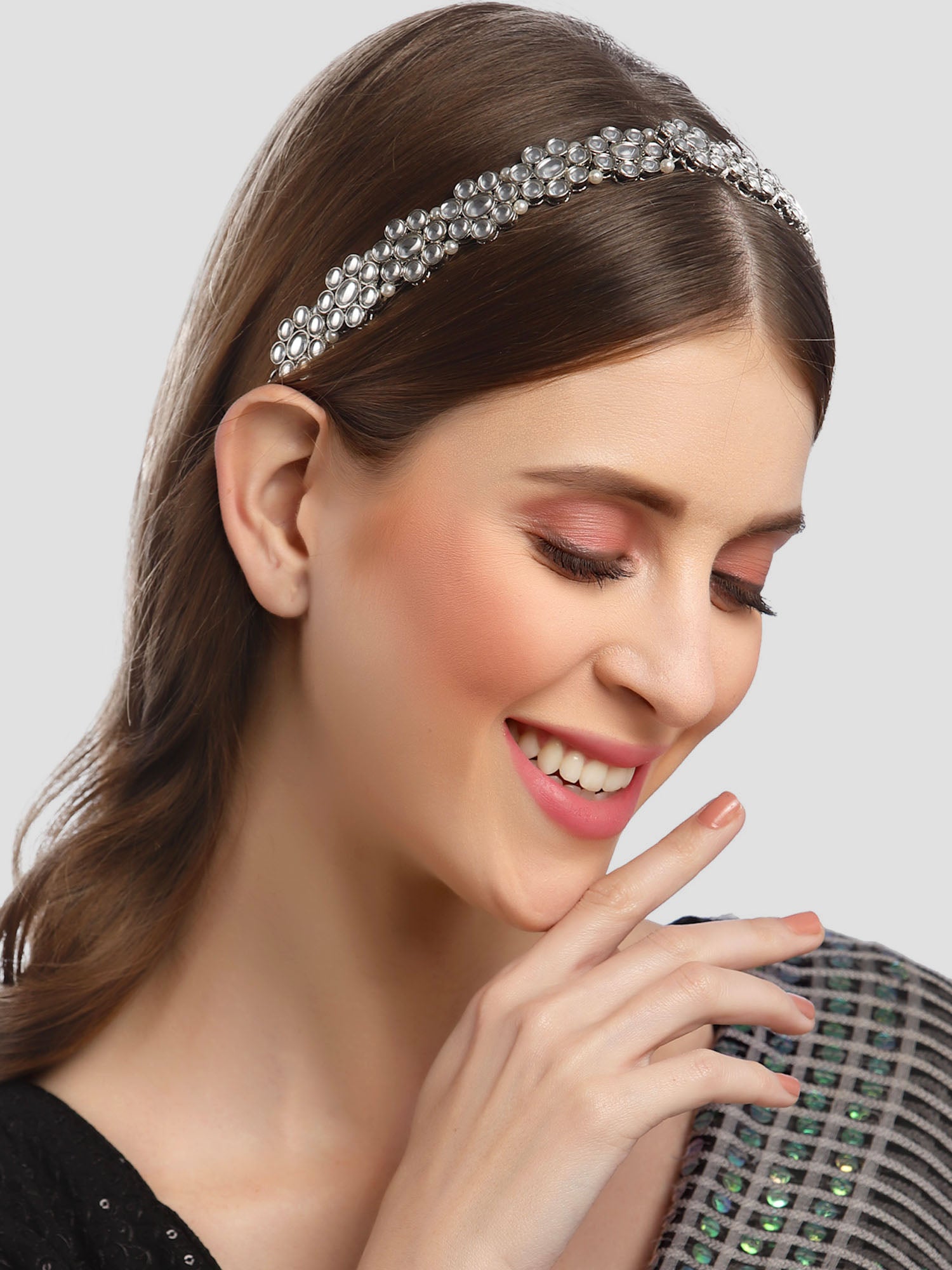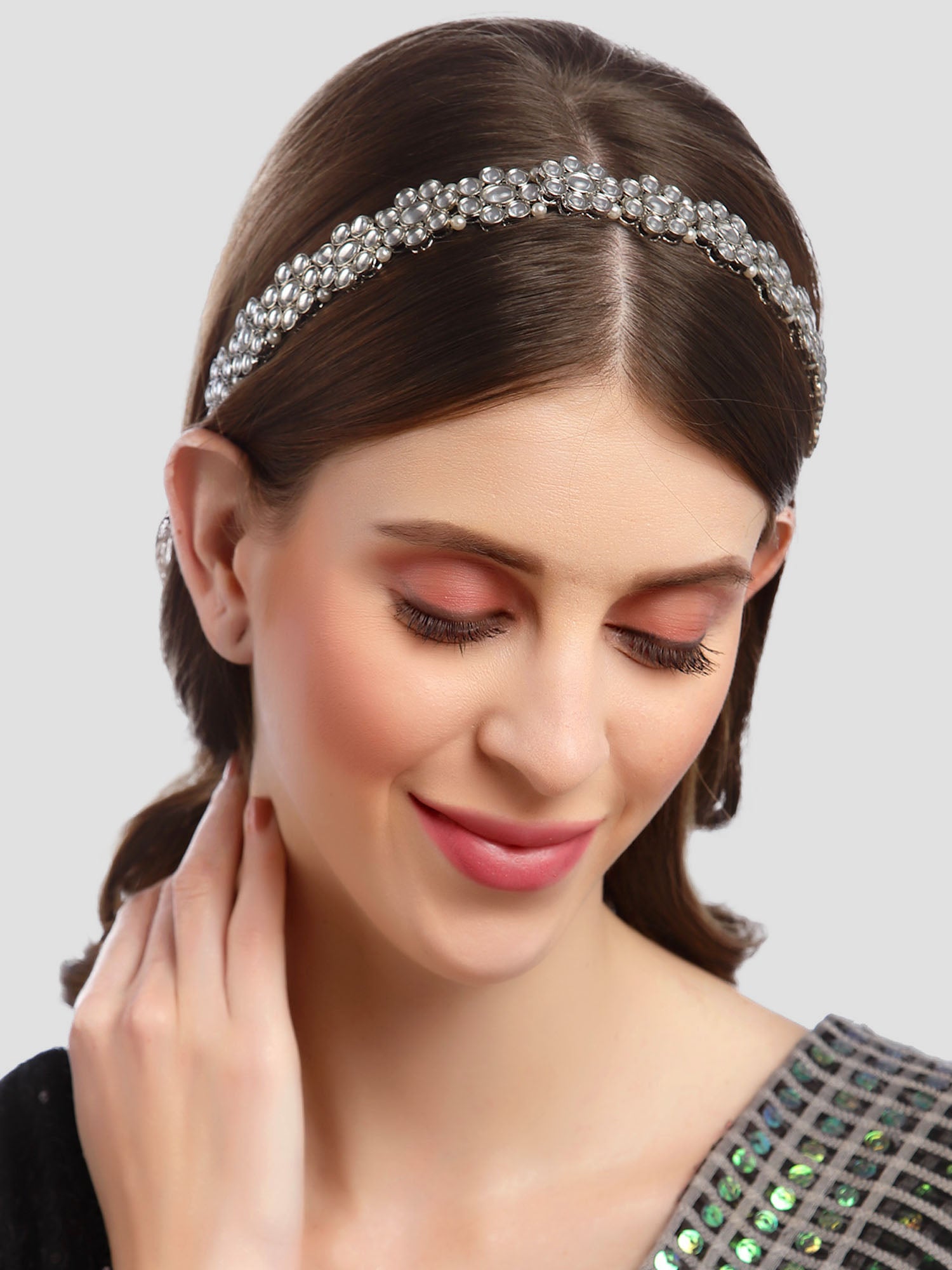 - Karatcart Oxidised Silver Kundan Studded Handcrafted Hairband for Women. It is made with High-Quality AAA Cubic zirconia. Perfect for Weddings, Parties, Festivals, and Traditional Occasions.