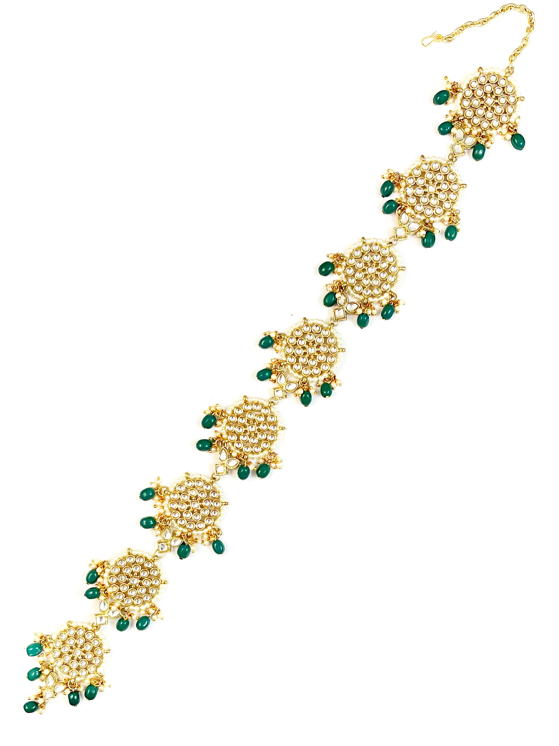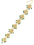Karatcart Floral Shape Gold Plated Green Tumble Kundan Bridal Wedding Hair Braid Choti