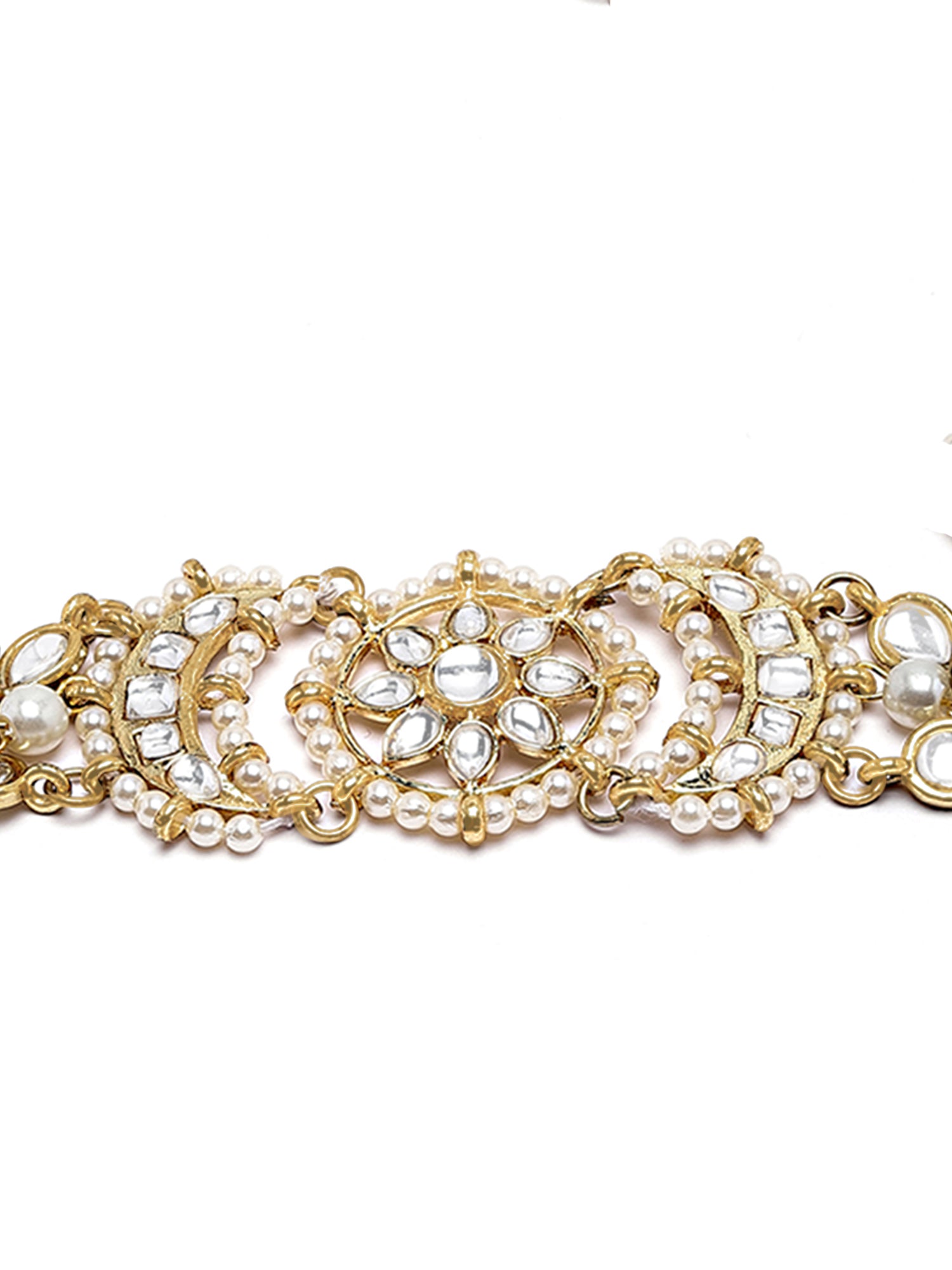Karatcart Gold Plated Floral Design Handcrafted Kundan Pearl Hairband for Women