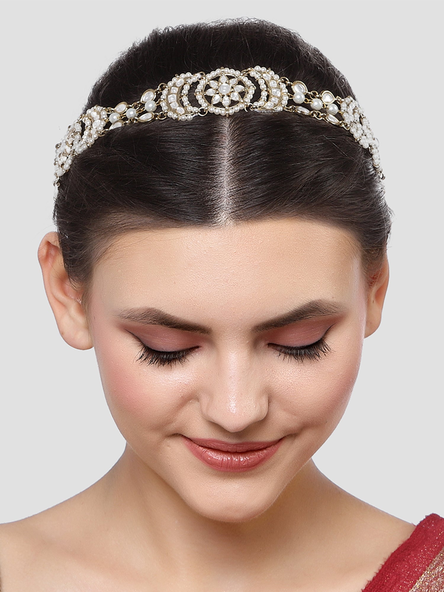 - This is a Gold Hair Accessory by Brand Karatcart which has Kundan stones. This is Gold Plated. We at KARATCART understand your desire to look the best on any day & we thrive in making any day an occasion. Every individual at Karatcart carries a passion for jewellery and it reflects in our beautiful designs as well as in our breathtaking craftsmanship. We create unique jewellery so you can make heads turn.