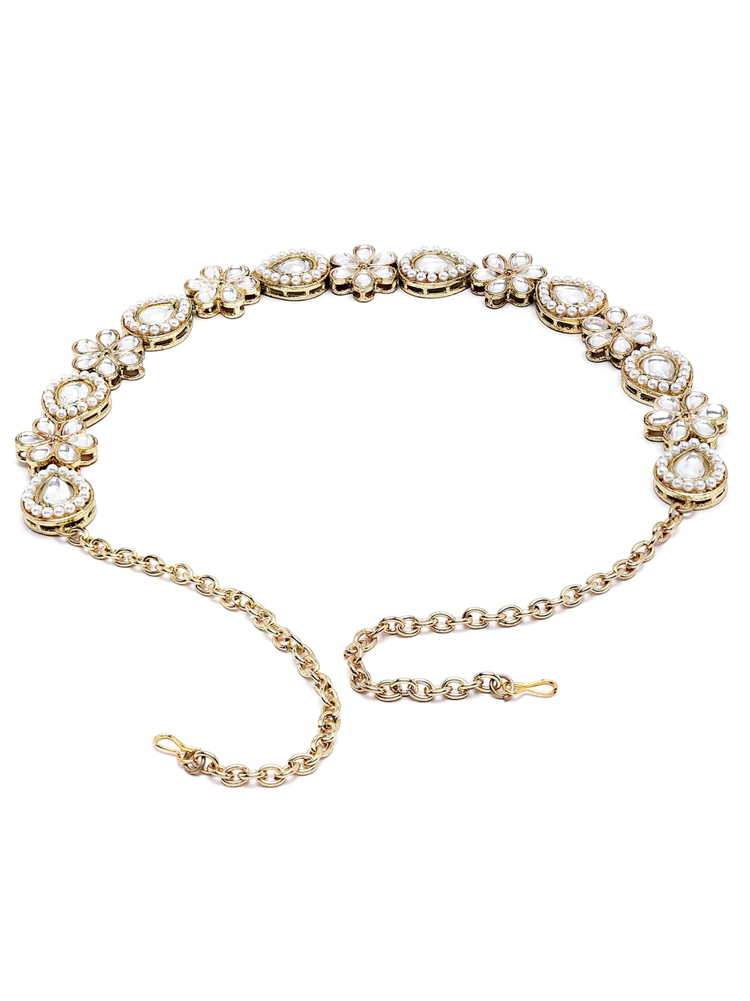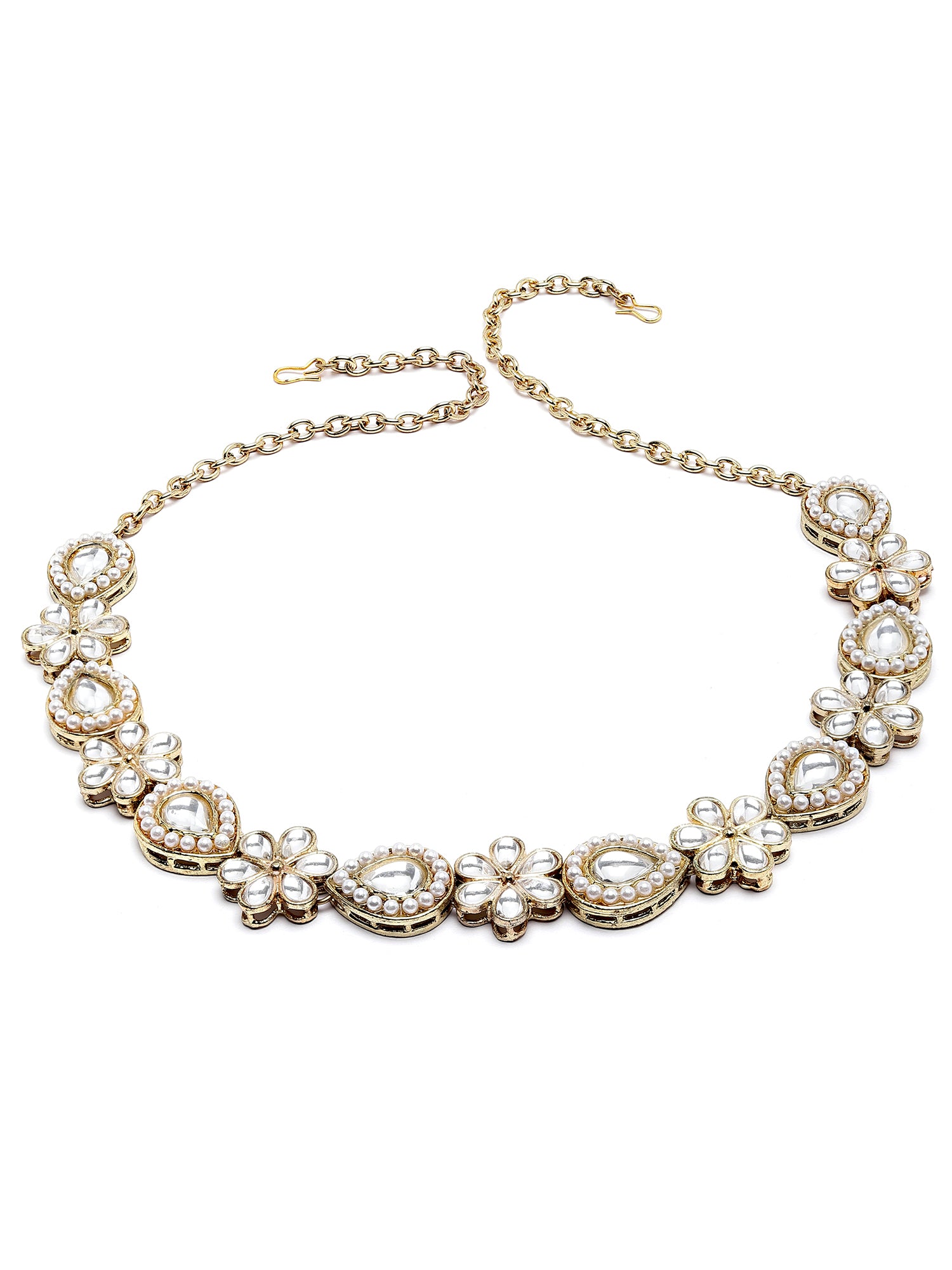 Karatcart Gold Plated Floral Design Drop Kundan Hairband for Women