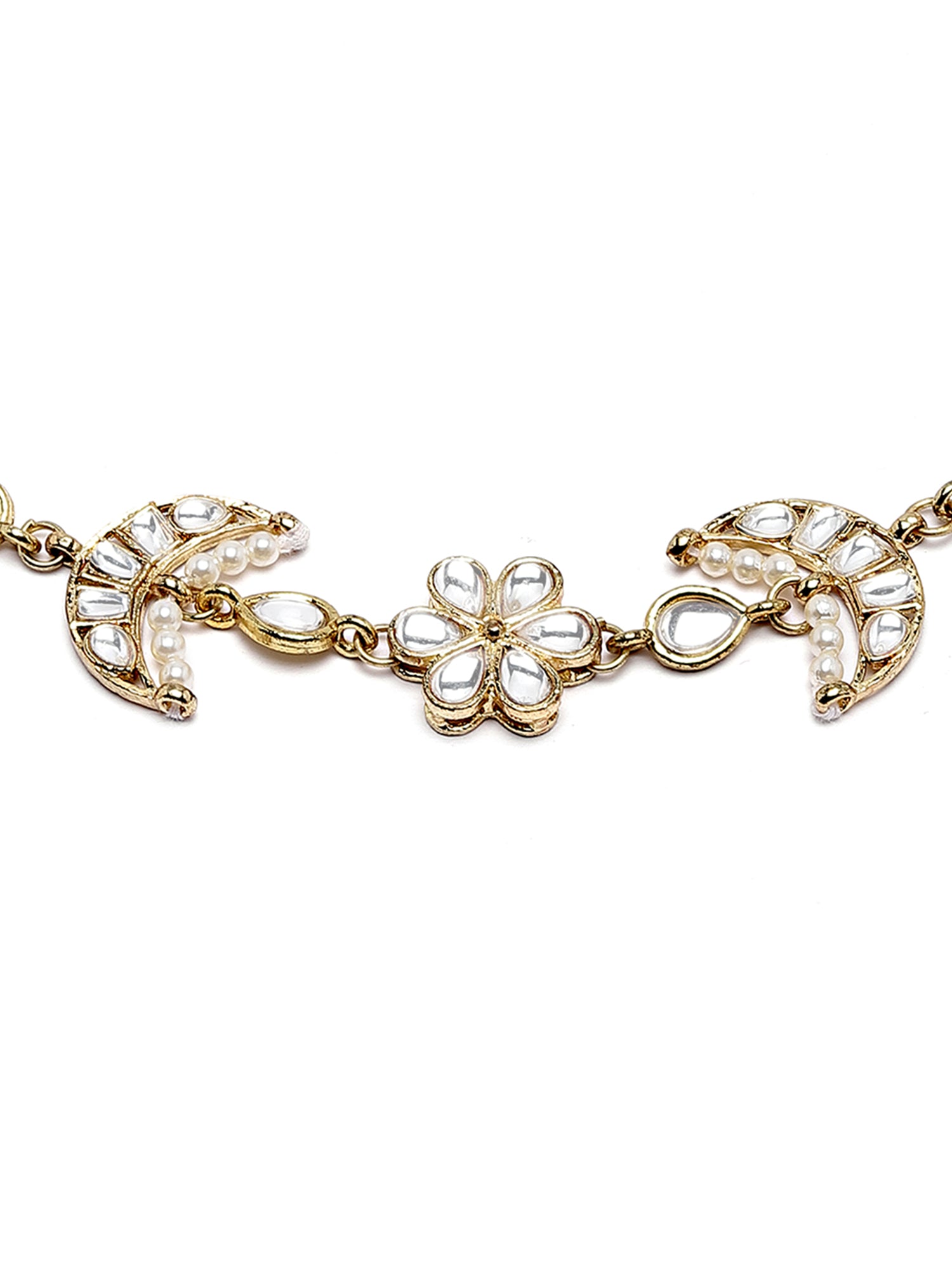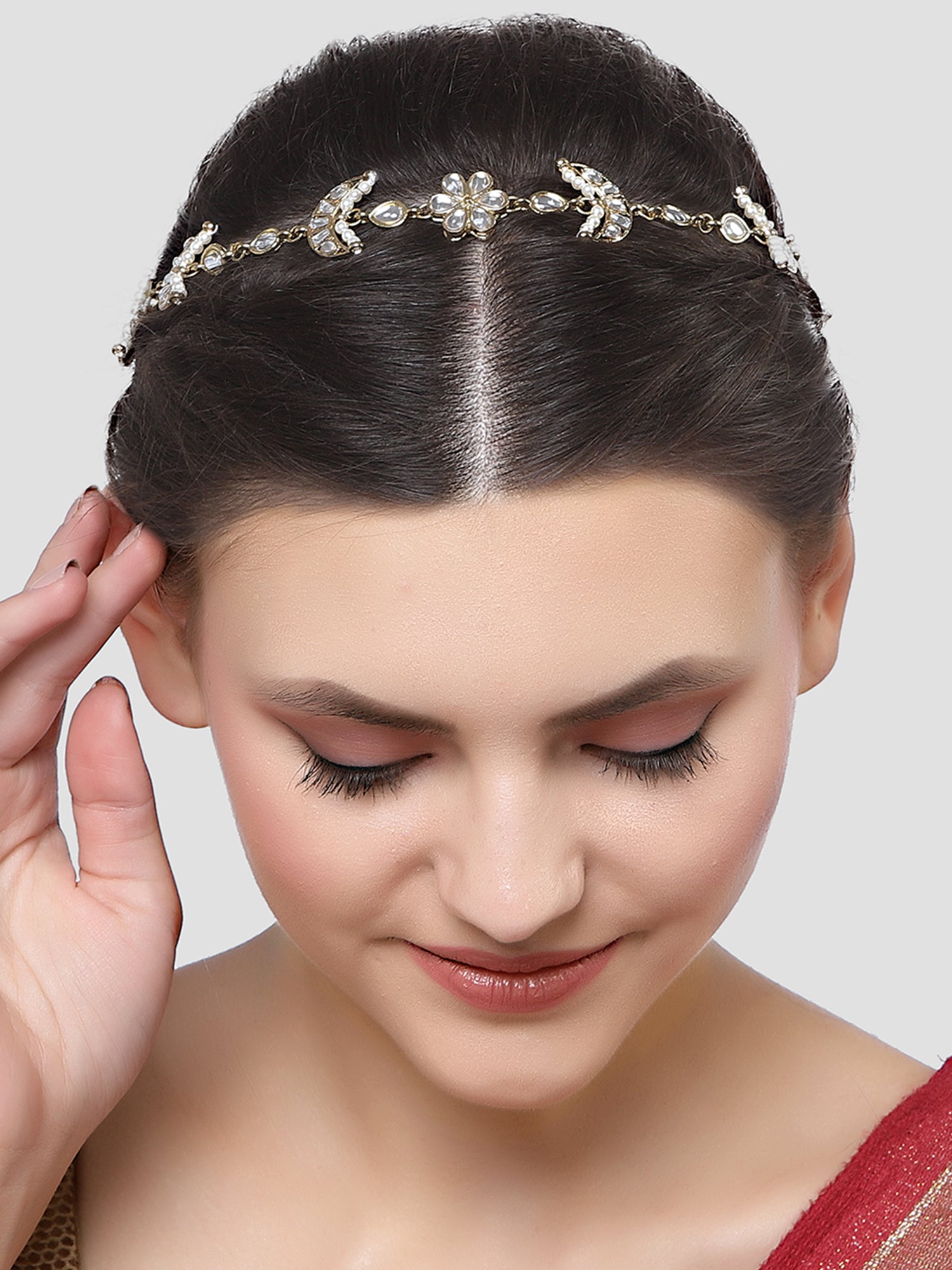 Karatcart Gold Plated Moon Design Kundan Hairband for Women