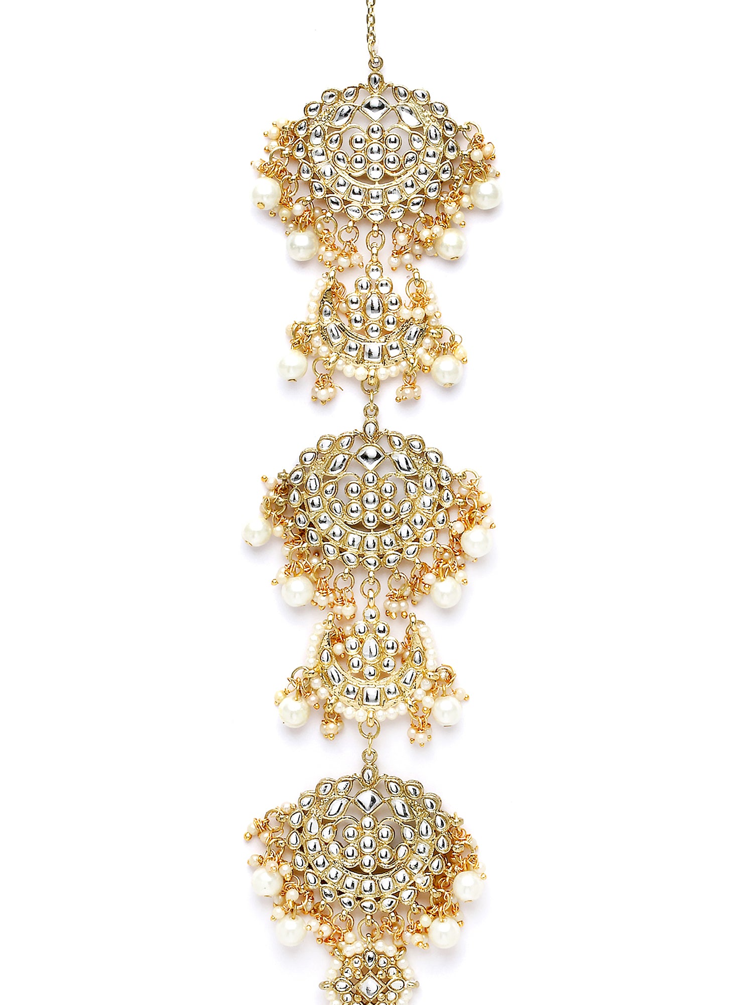 Karatcart Gold Plated Kundan and Pearl Bridal Wedding Hair Braid Choti