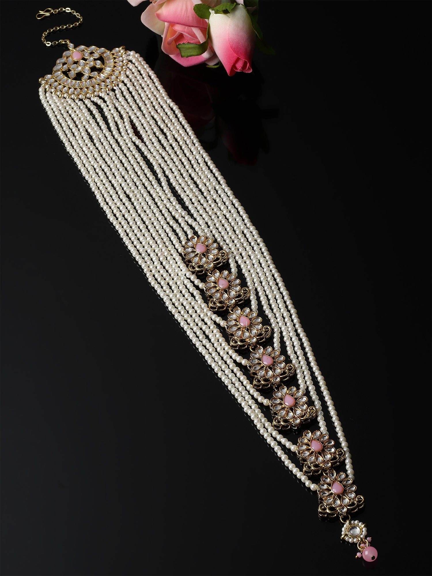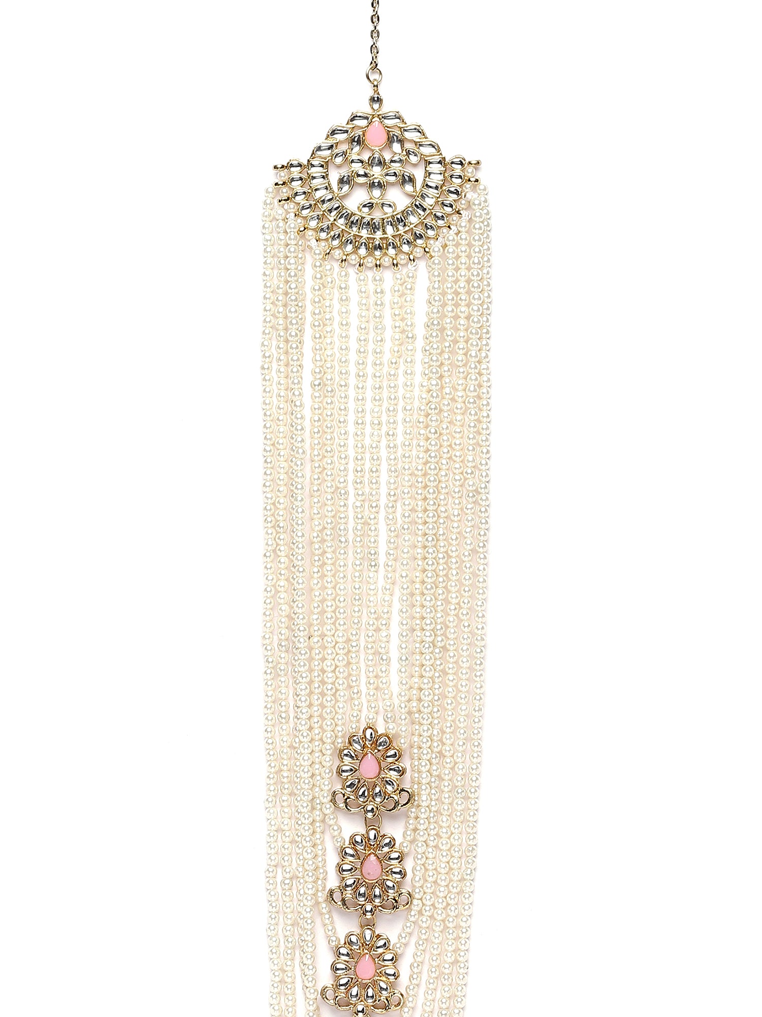 Karatcart Gold Plated Pink Kundan and Pearl Bridal Wedding Hair Braid Choti
