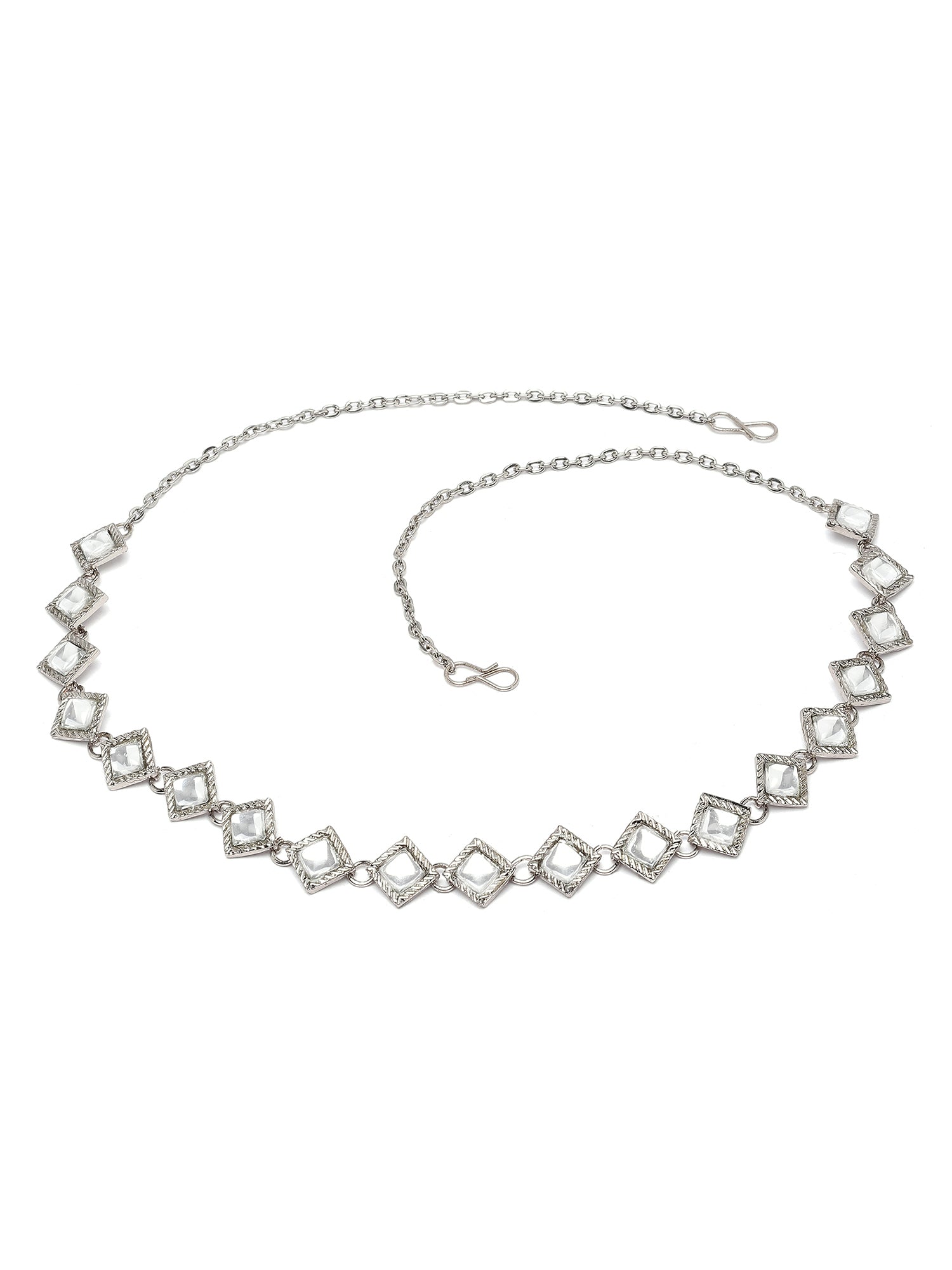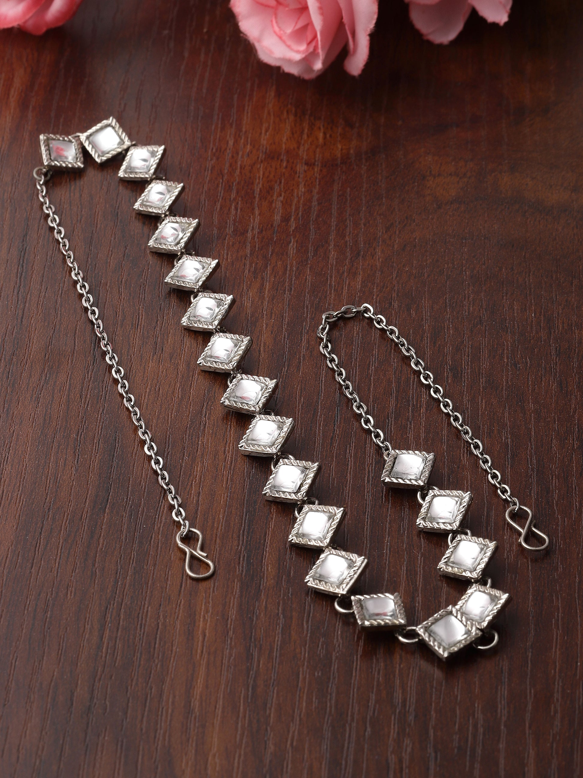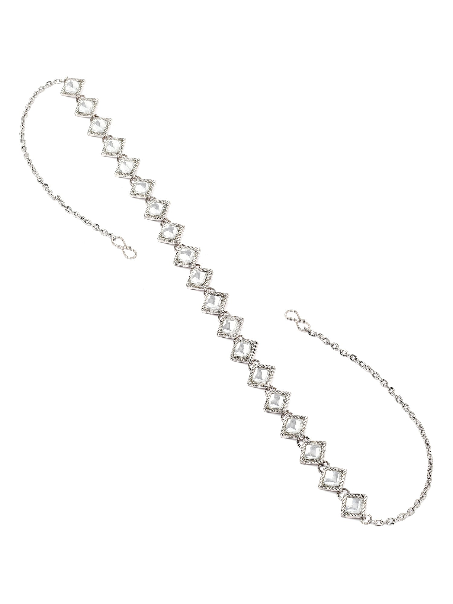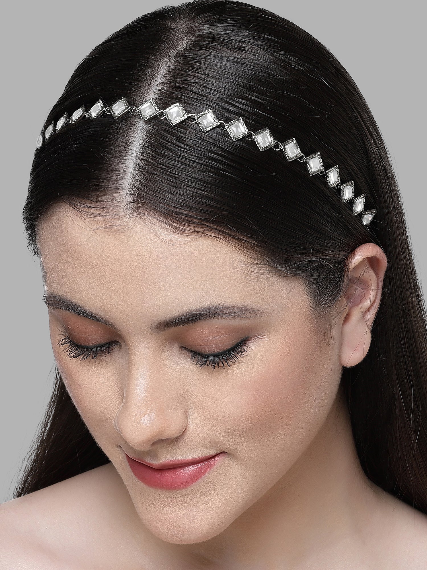 Karatcart Oxidised Silver Square Kundan Hairband for Women