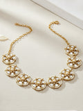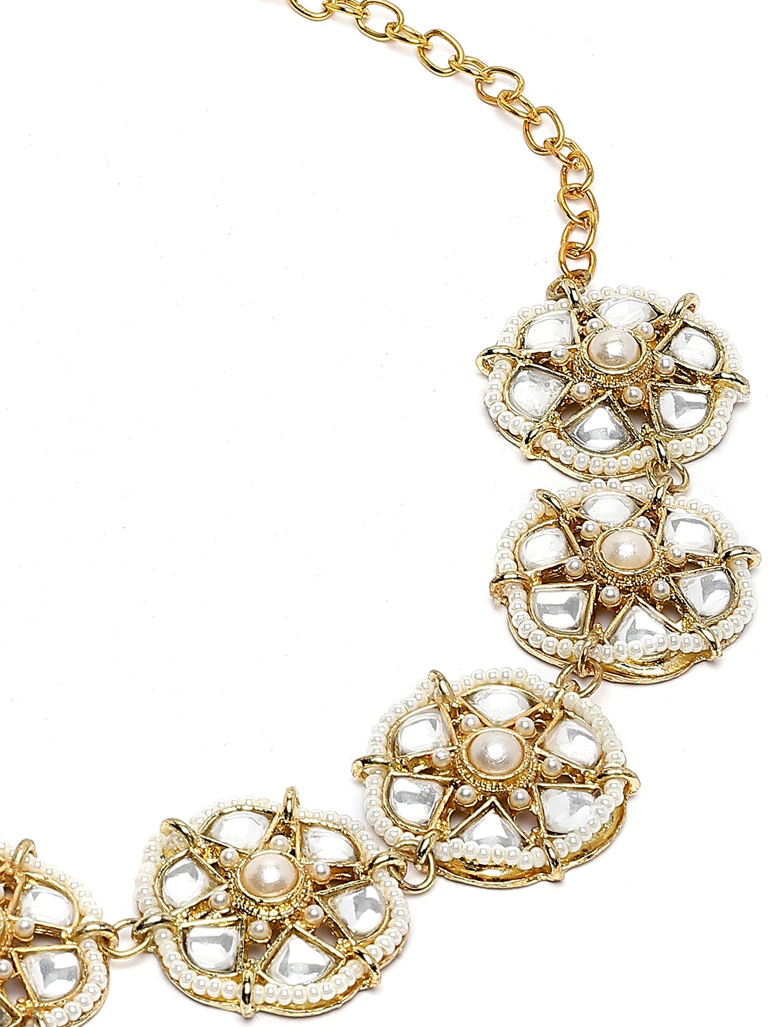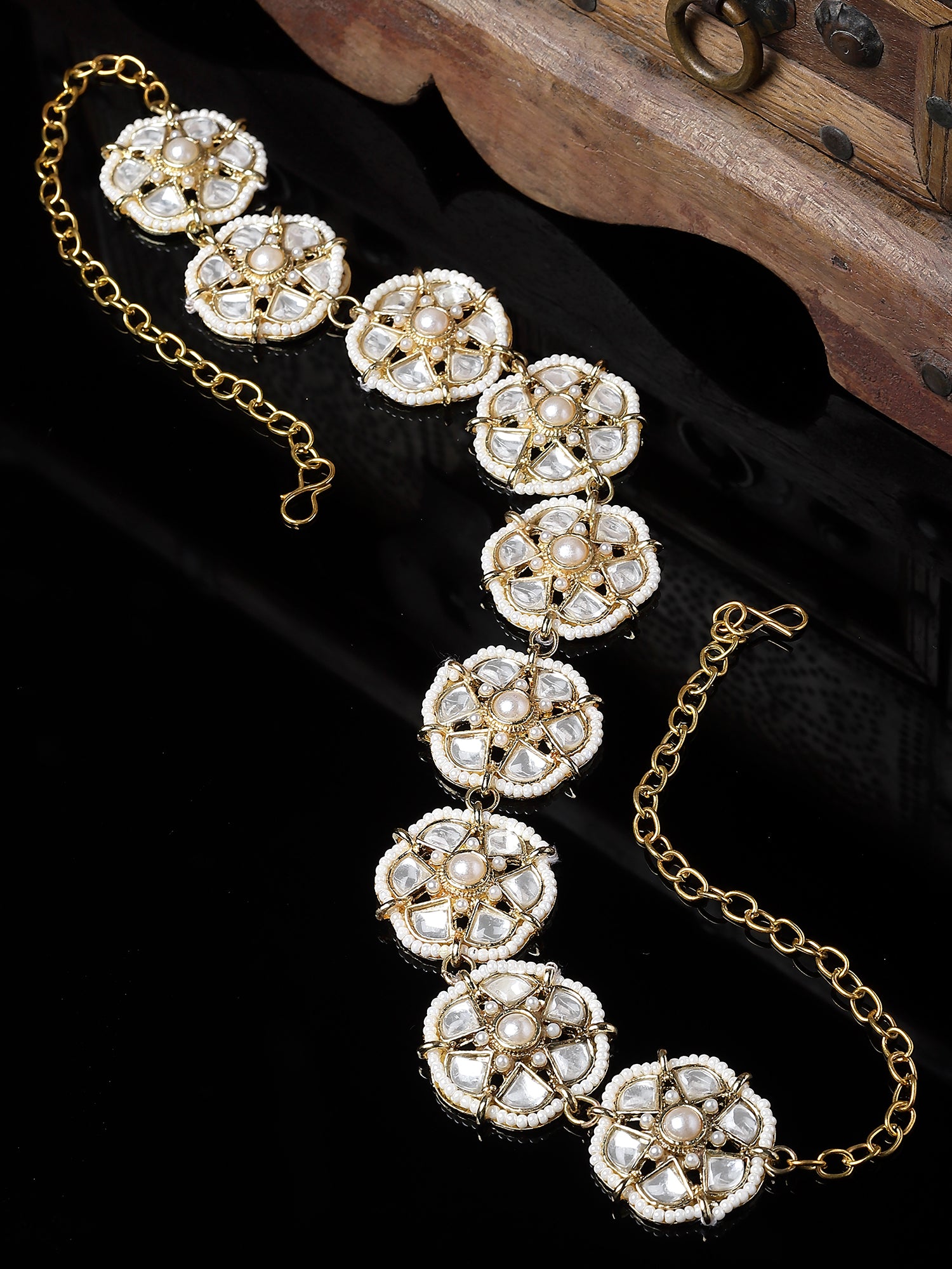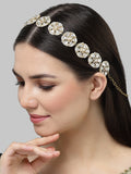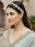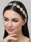 Karatcart Gold Plated Floral Design Pearl and Kundan Studded Hairband for Women