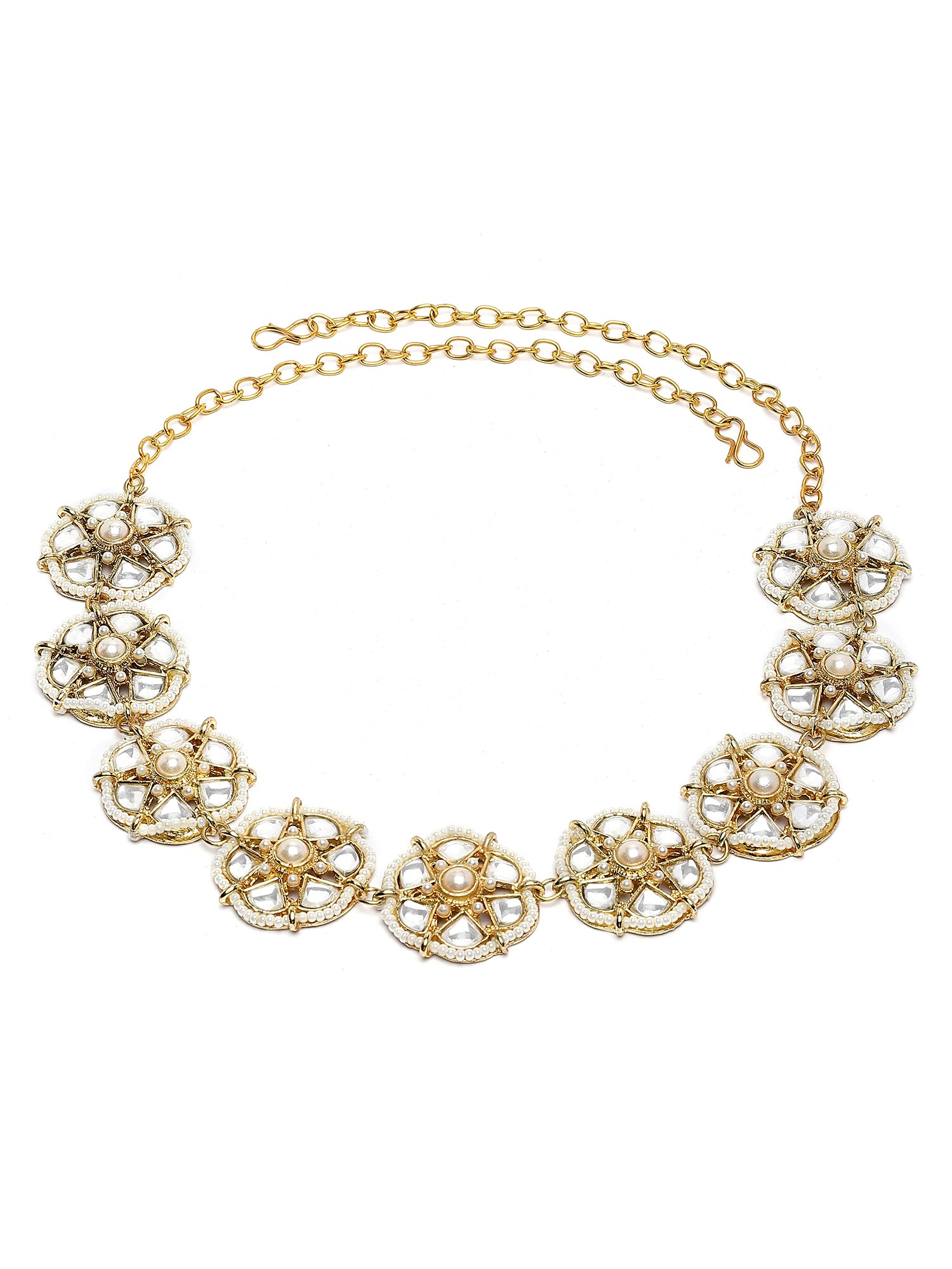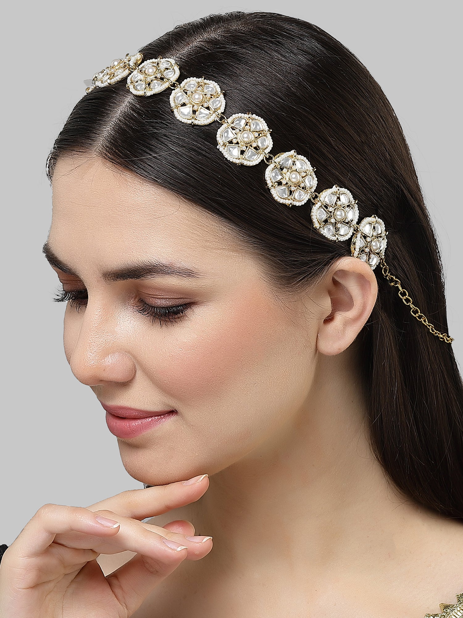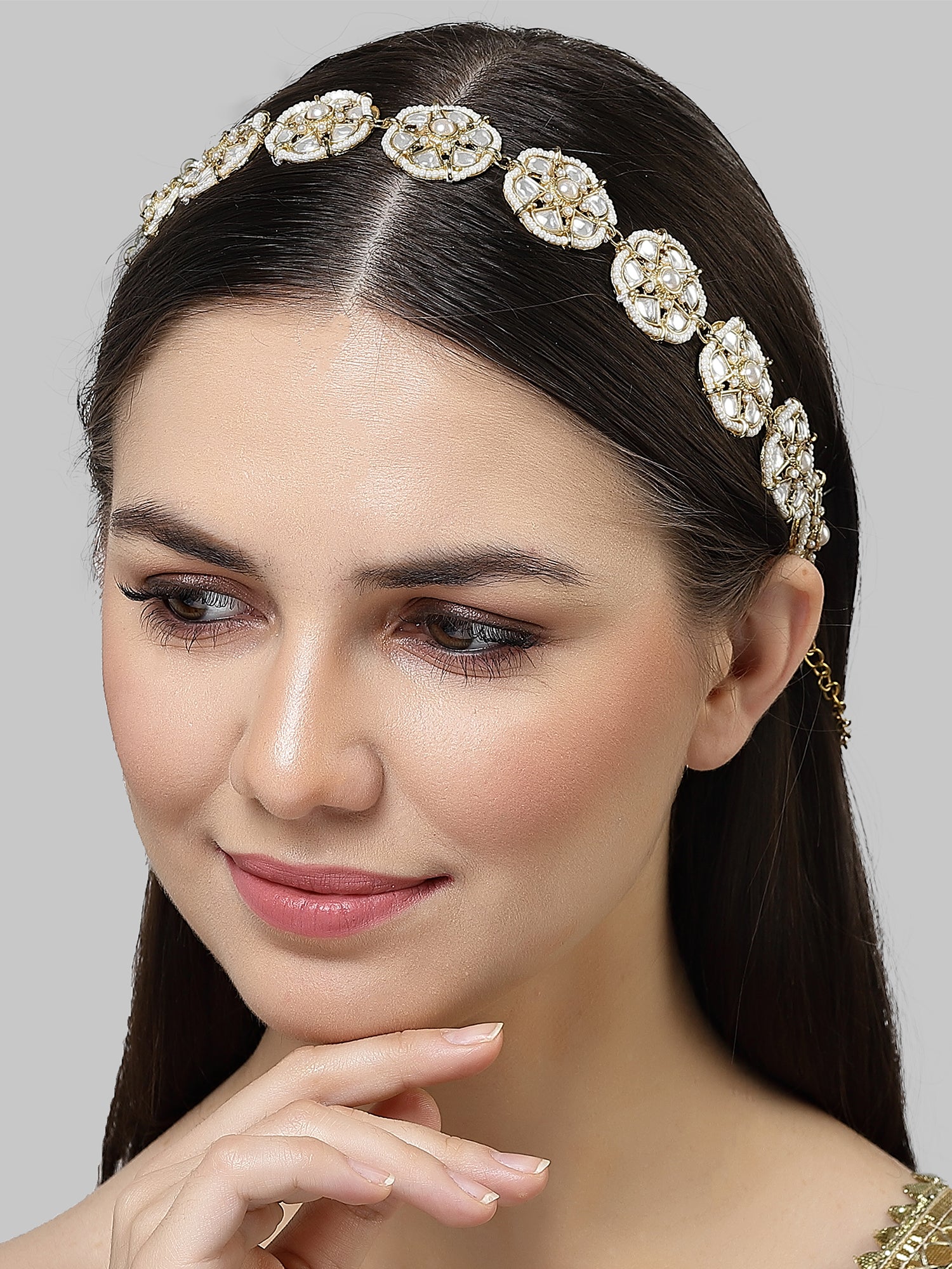 - Karatcart Gold Plated Floral Design Pearl and Kundan Studded Hairband for Women. Our products are designed with high-quality material and these products are enhanced with plating that are skin-friendly & with love to reach your heart.