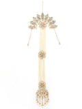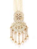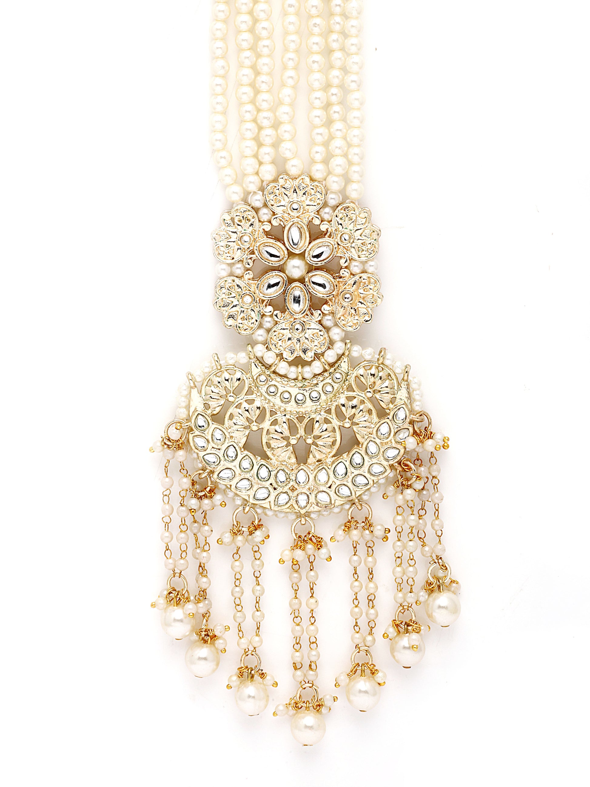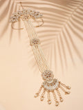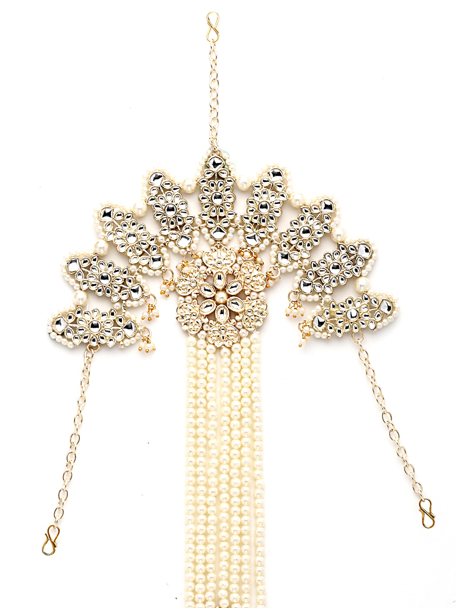 Karatcart Gold Plated Ethnic White Pearl and Kundan Juda Styles Hair Choti for Women