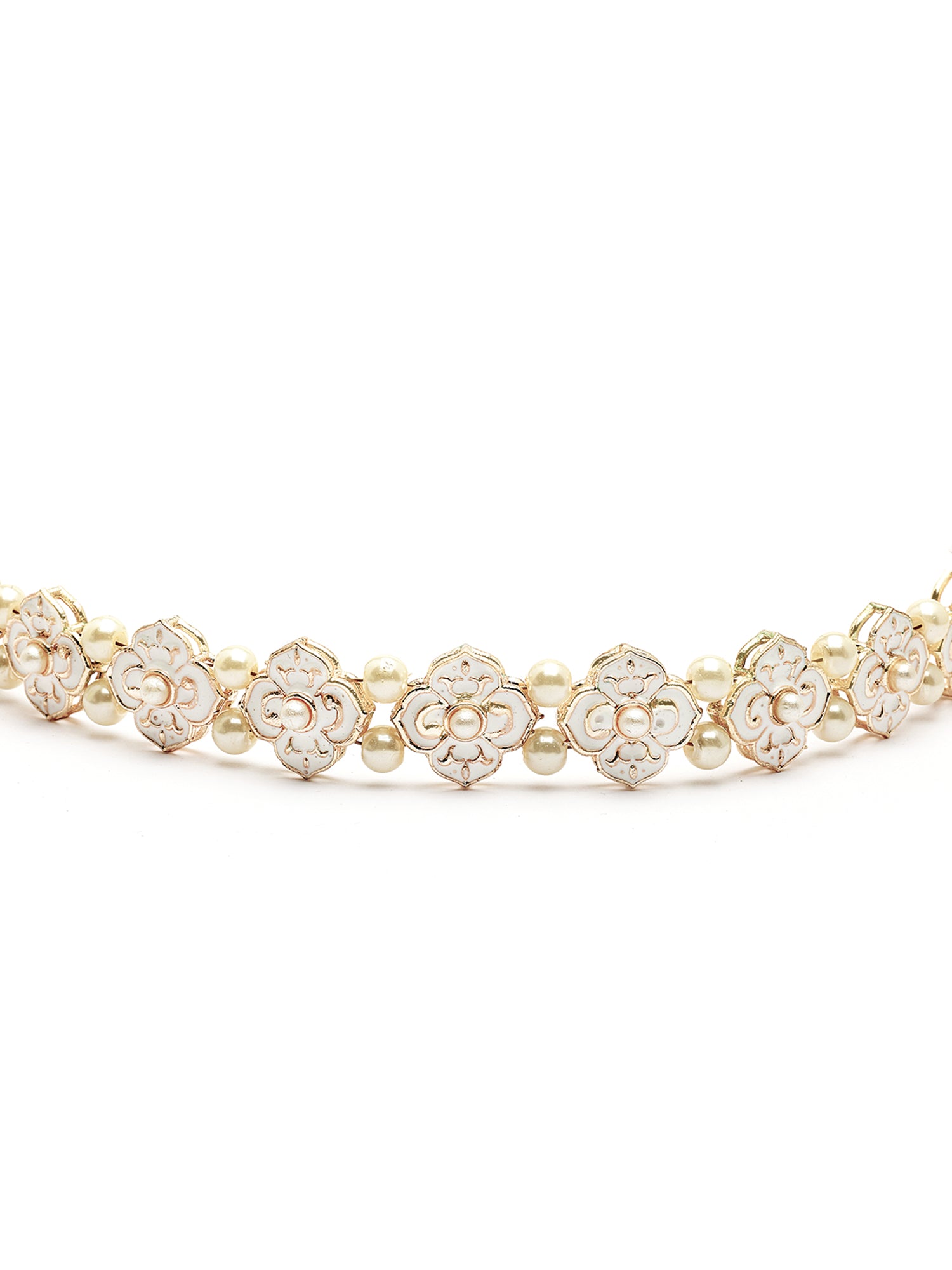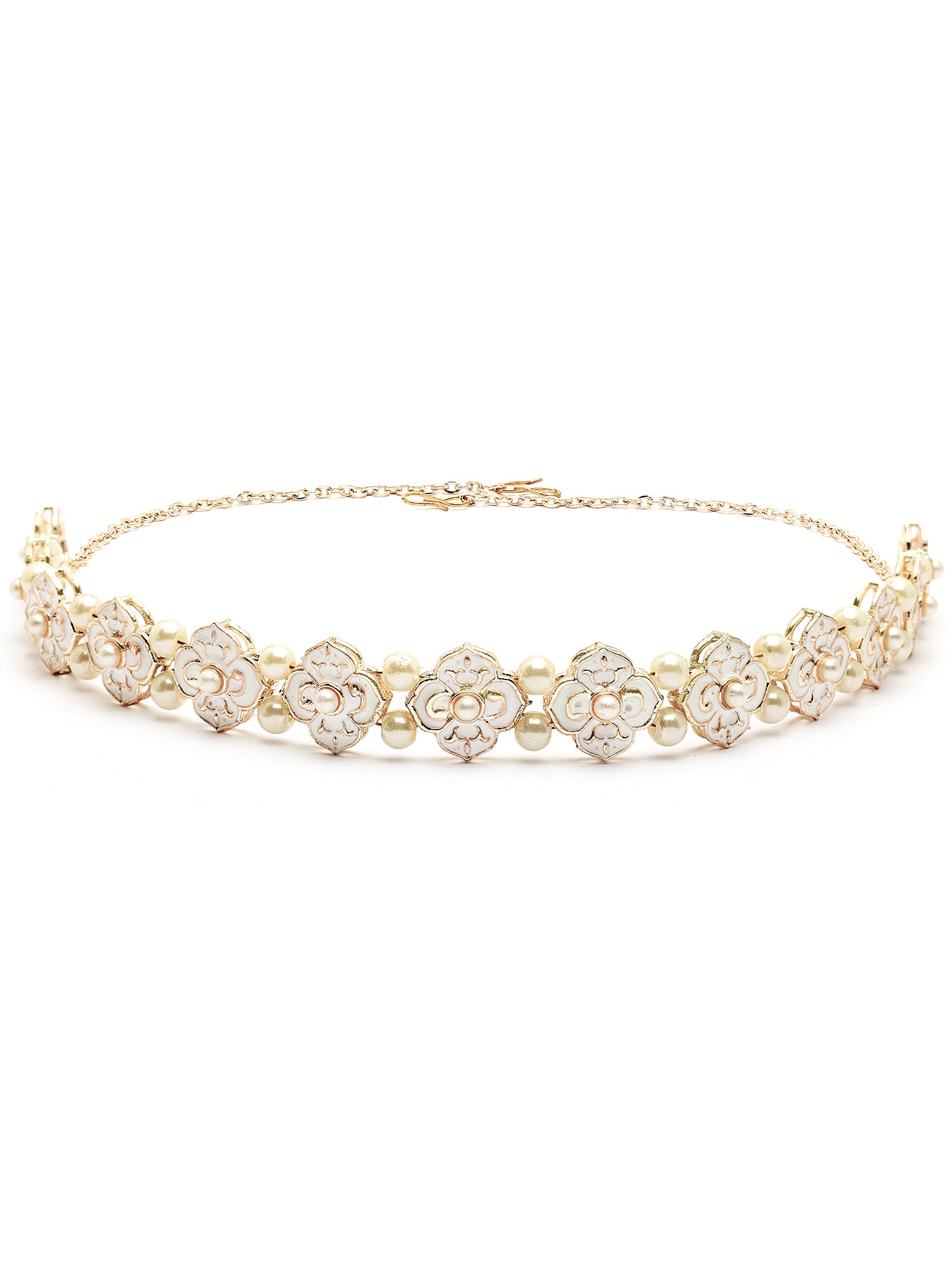 - This is a White Hair Accessory by Brand Karatcart which has Enamel stones. This is Gold Plated. We at KARATCART understand your desire to look the best on any day & we thrive in making any day an occasion. Every individual at Karatcart carries a passion for jewellery and it reflects in our beautiful designs as well as in our breathtaking craftsmanship. We create unique jewellery so you can make heads turn.