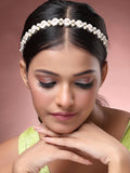 Karatcart Luxurious Gold-Plated Kundan Meenakari Hairband with Elegant Pearl for Women