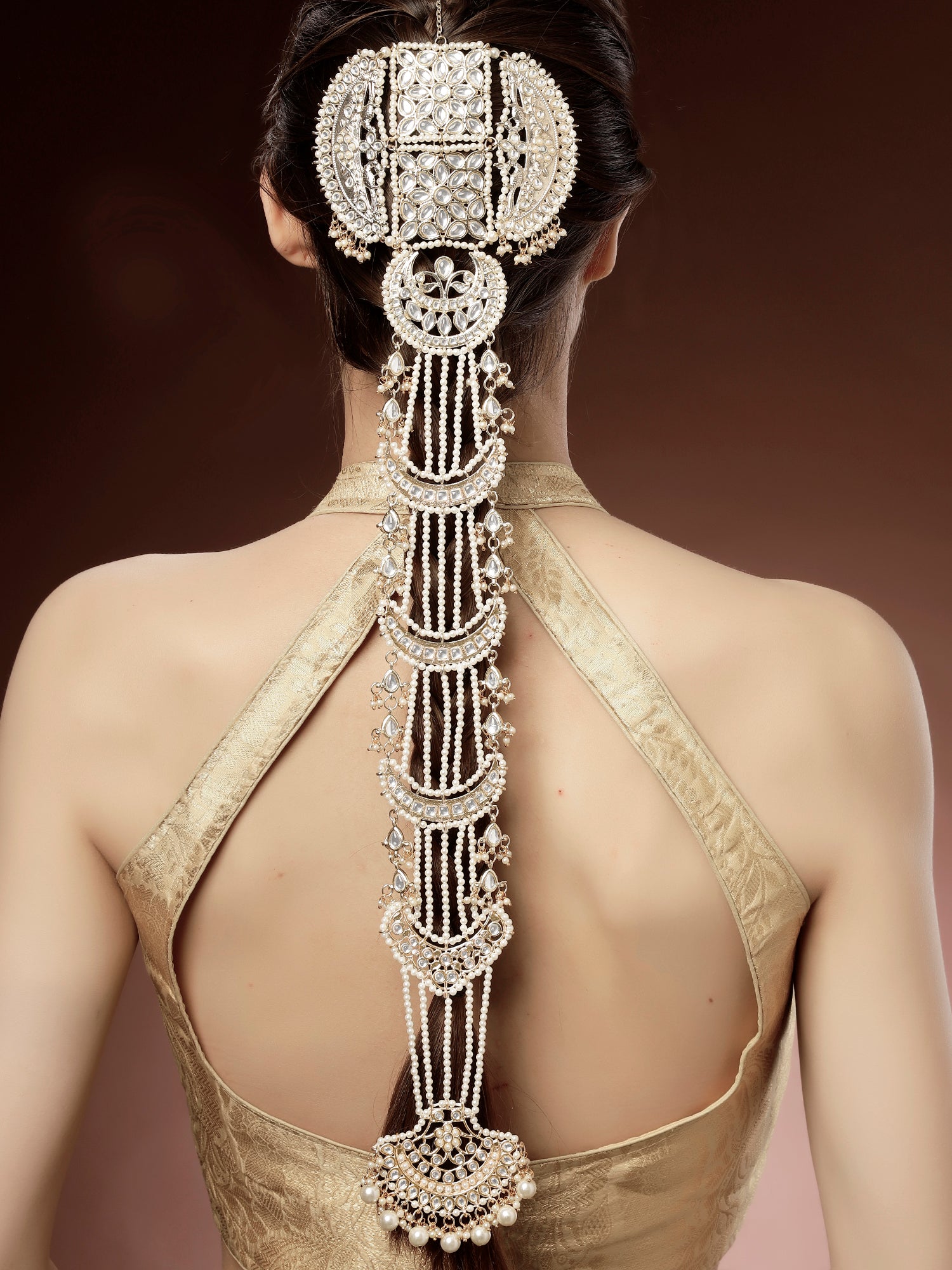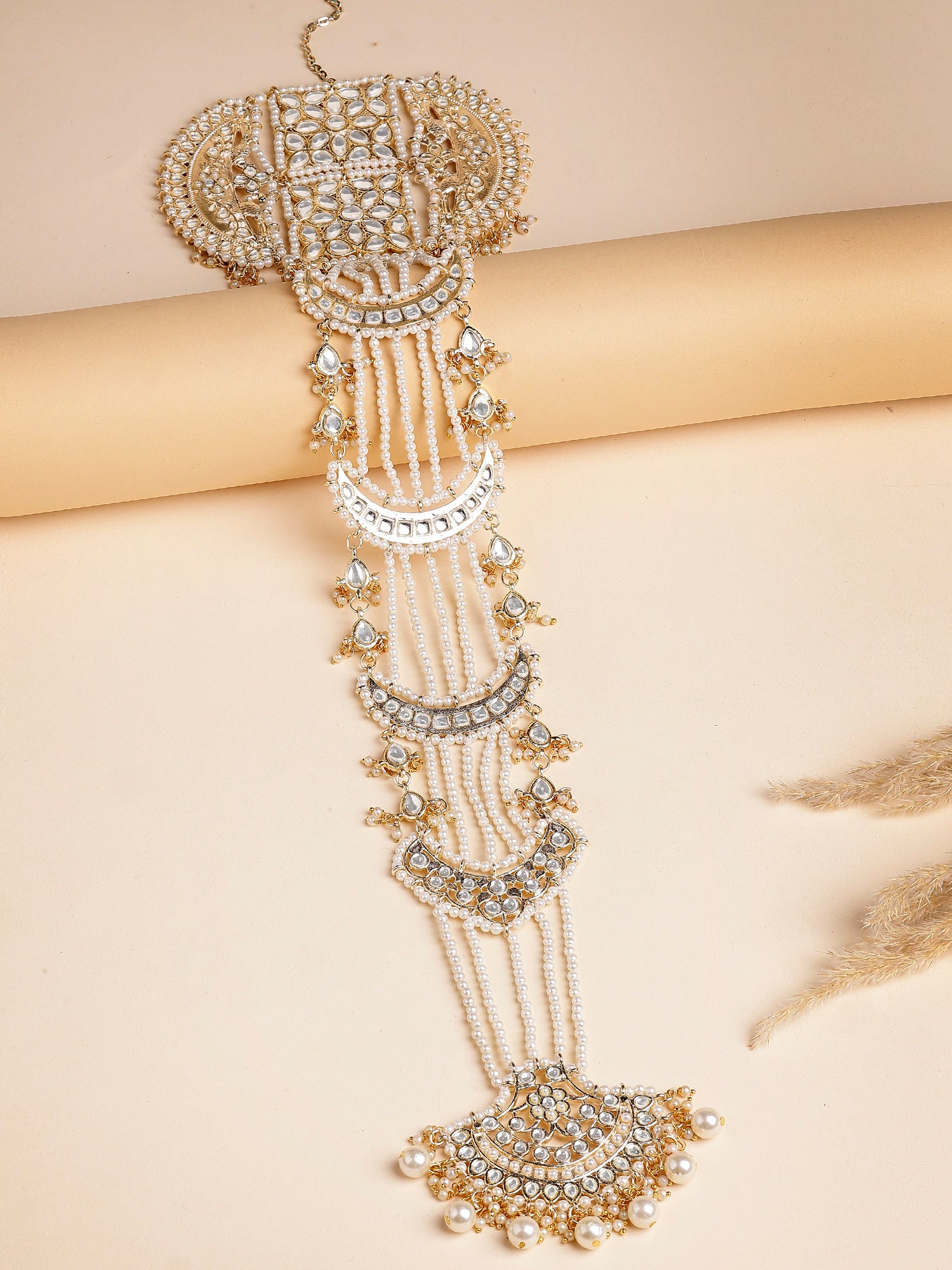 Karatcart Designer Pearl Beaded Gold-Plated Kundan Hair Choti for Women