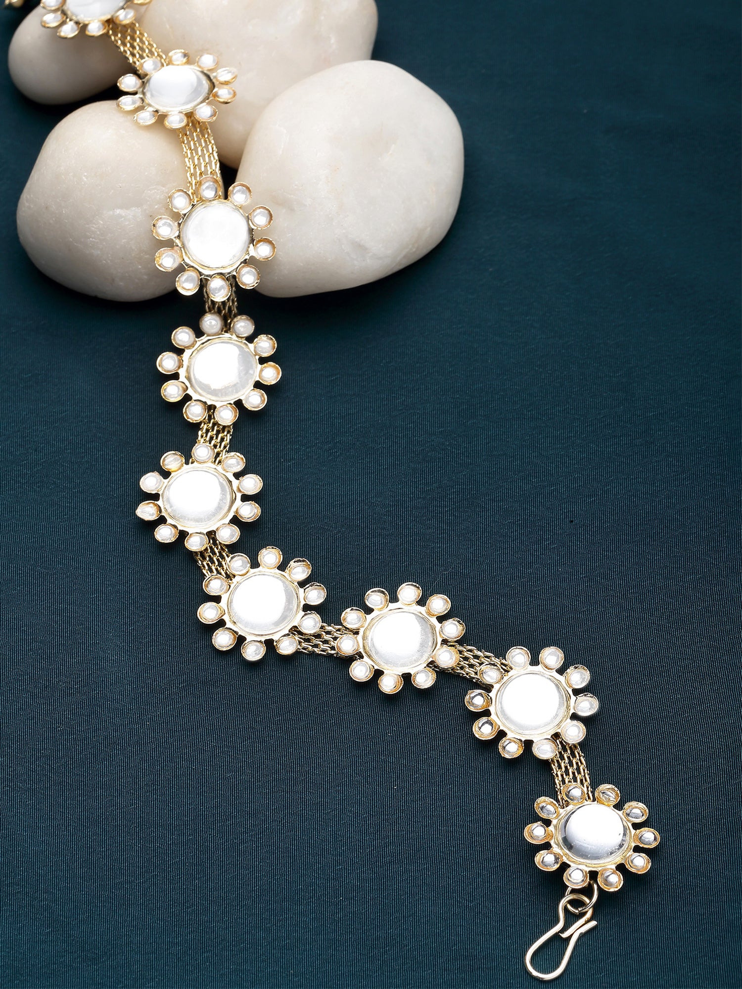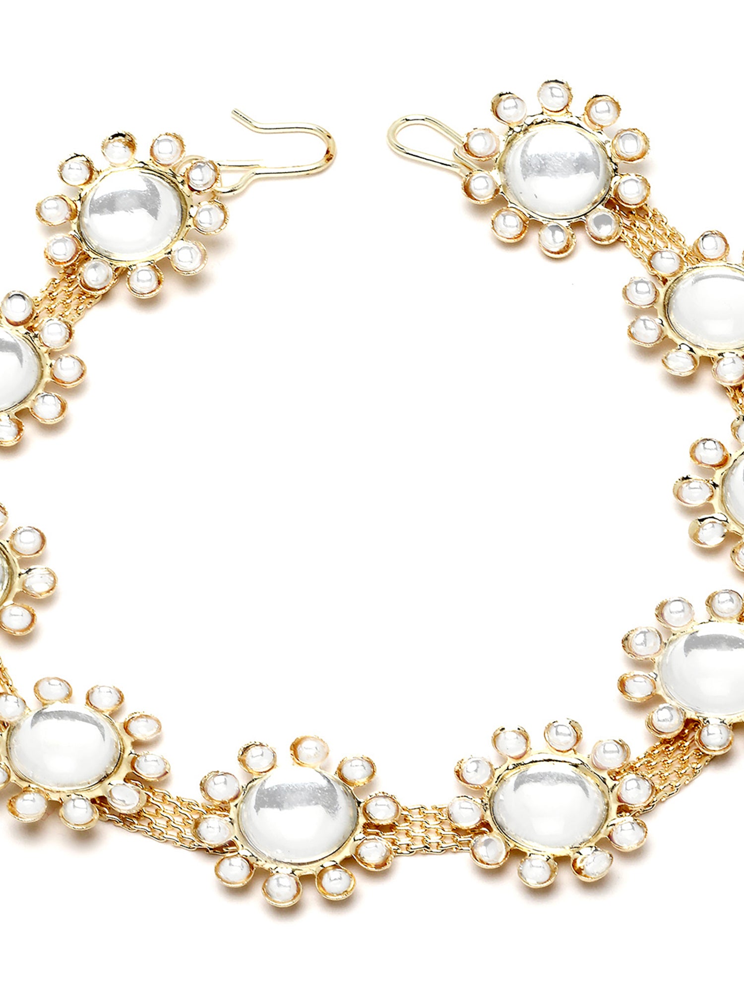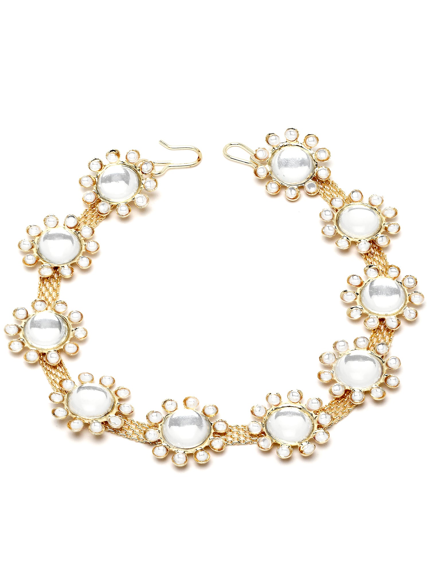 Karatcart Gold Plated Floral Design Kundan Studded Hairband for Women