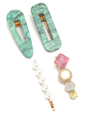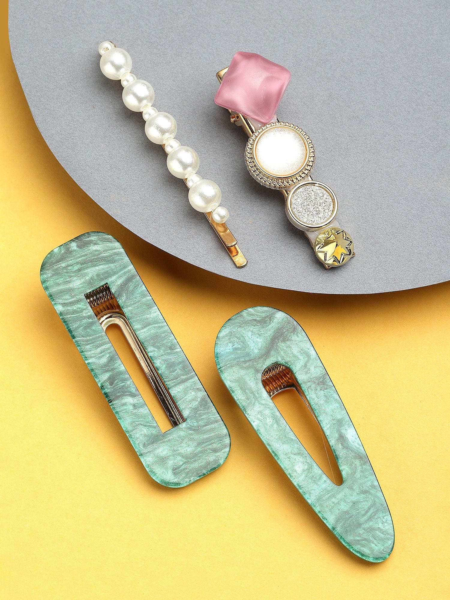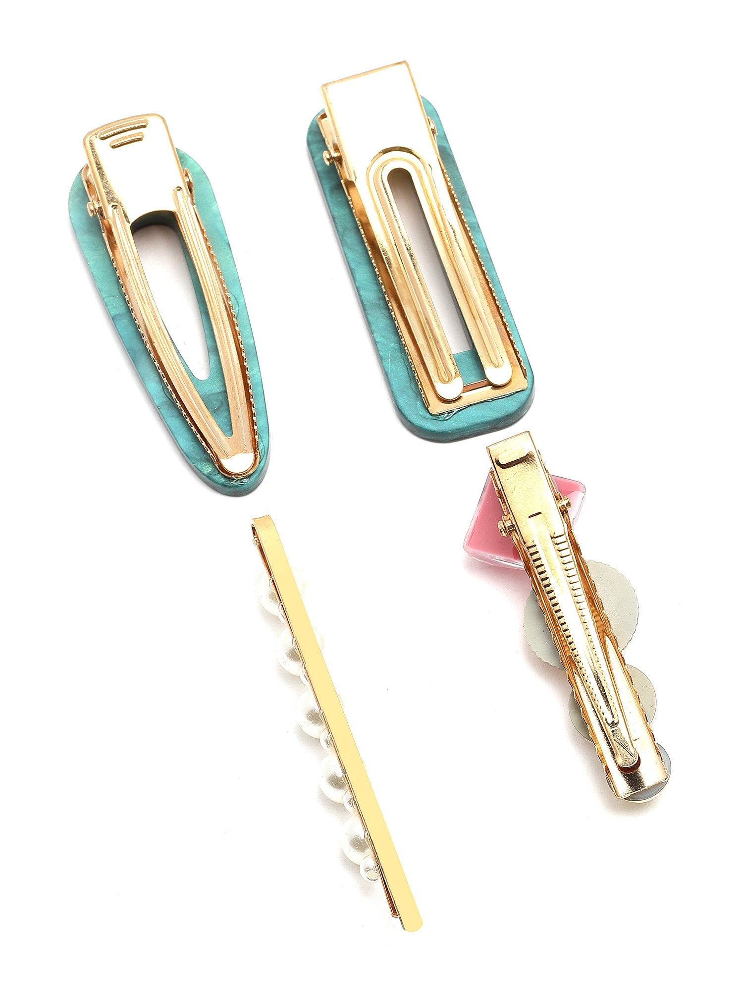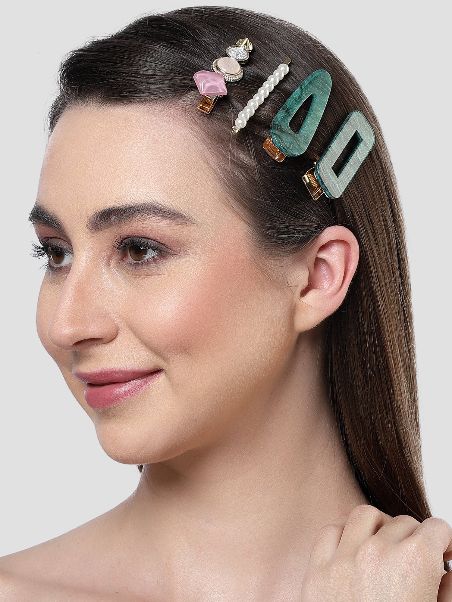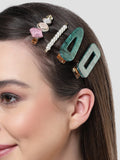Bohey by KARATCART Set of 4 Teal Hair Clips for Women