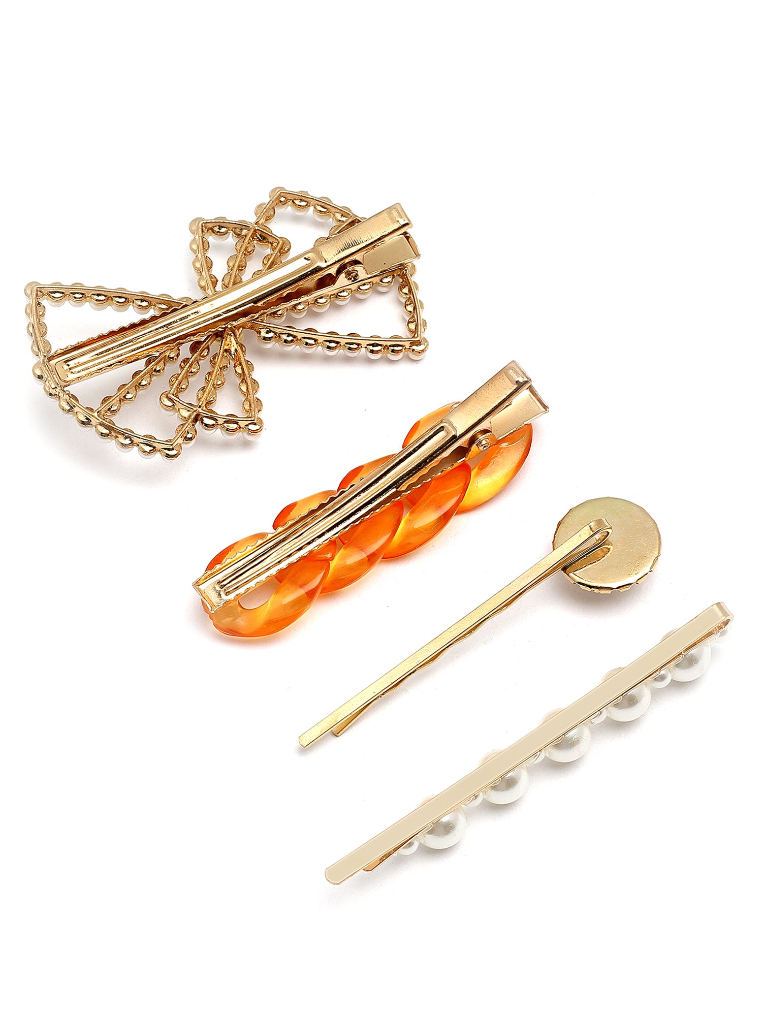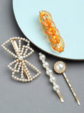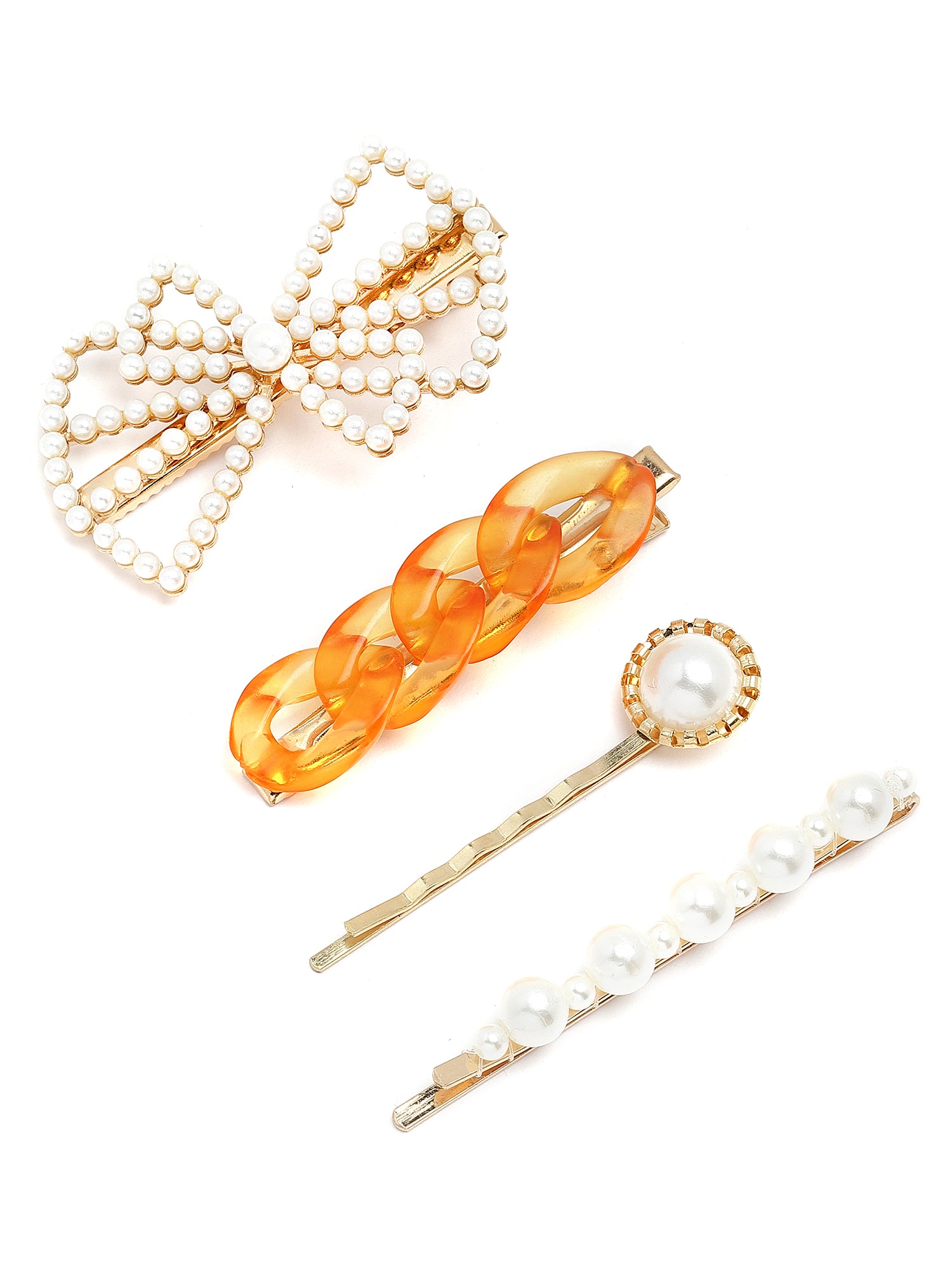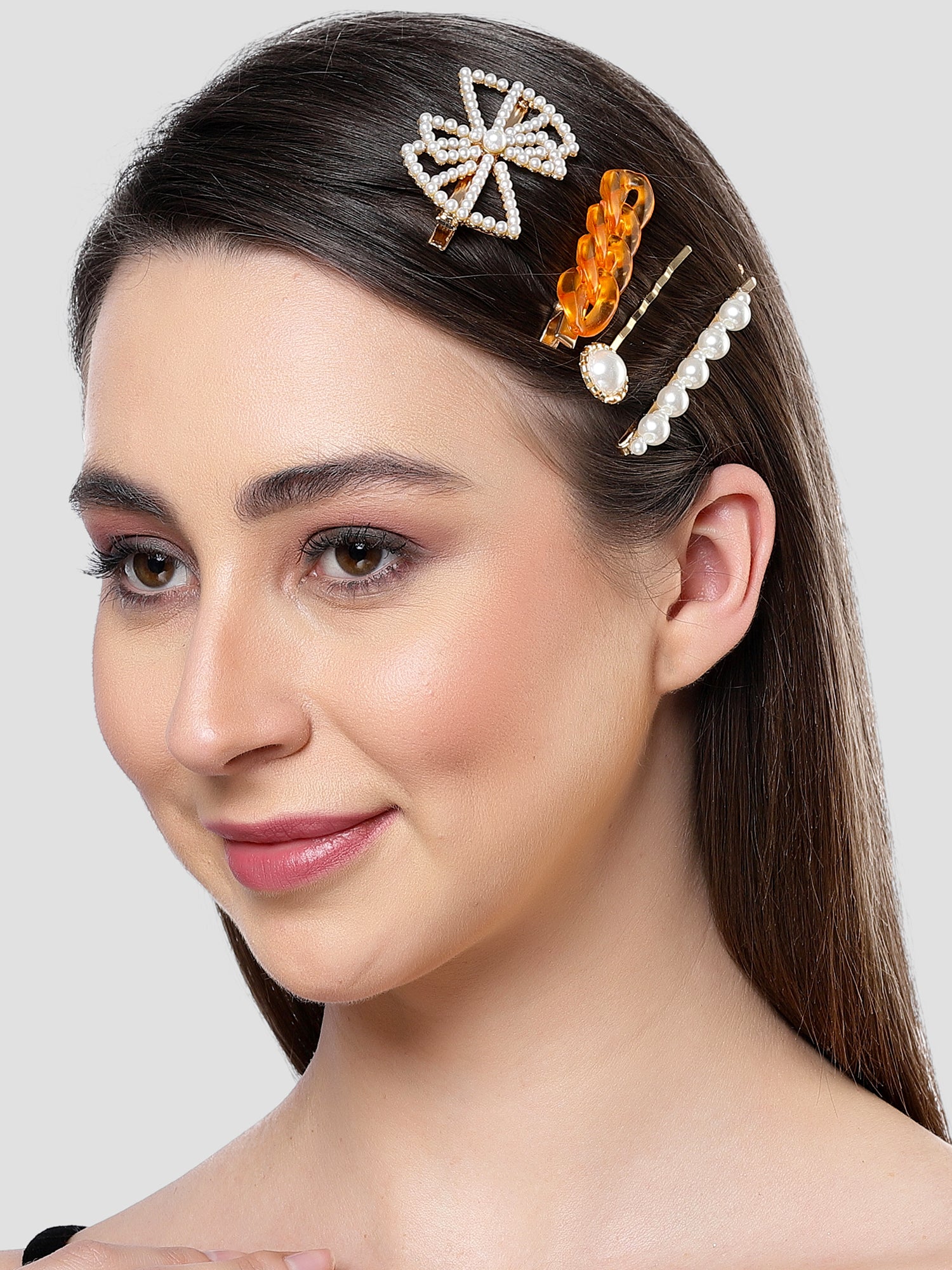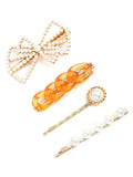 Bohey by KARATCART Set of 4 Pearl Beaded Hair Clips for Women