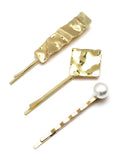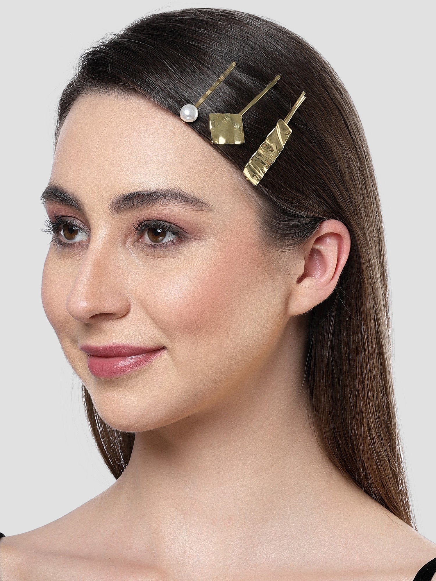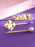 Bohey by KARATCART Gold Tone Set of 3 Hammered Hair Clips for Women