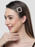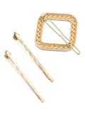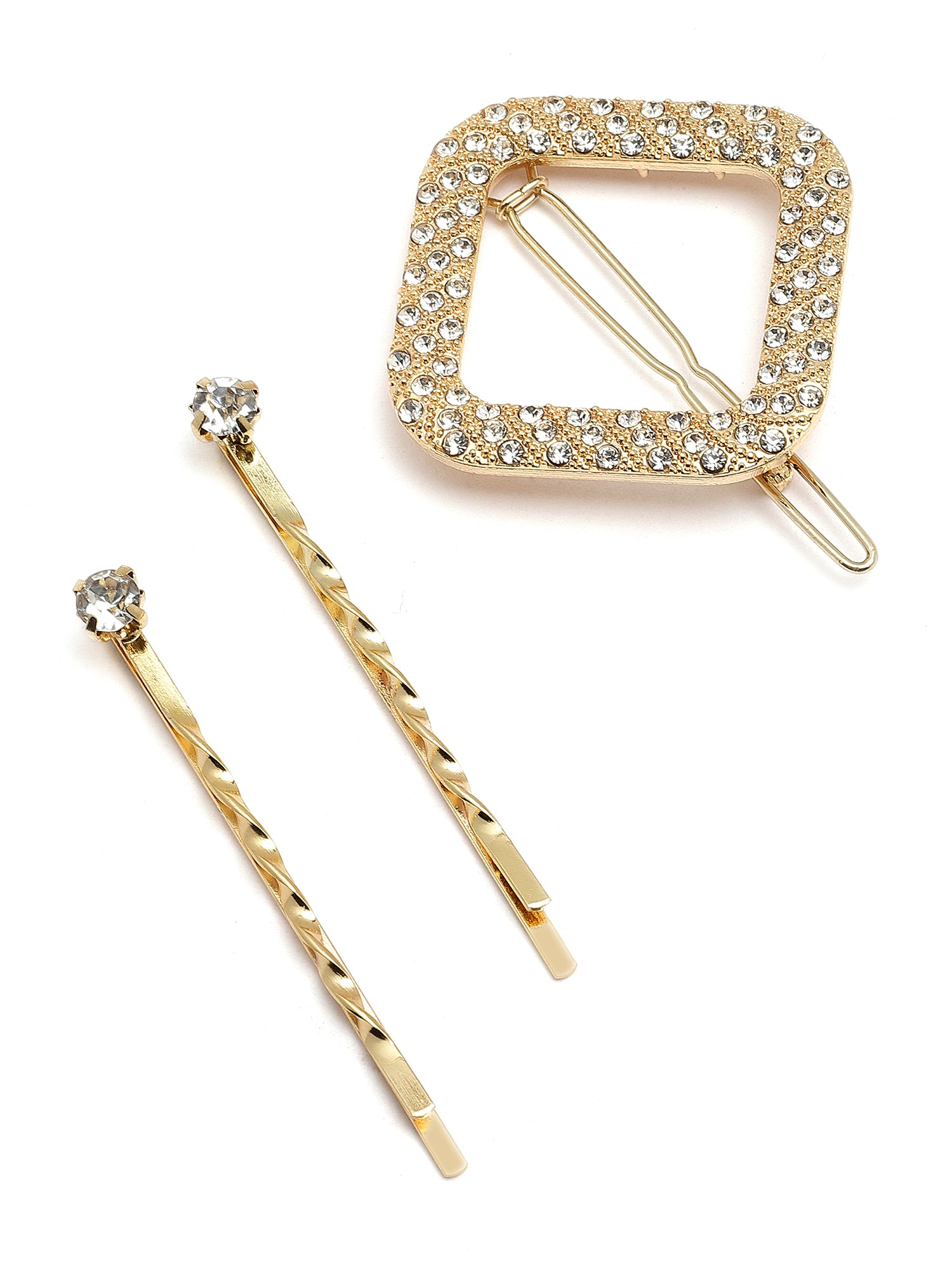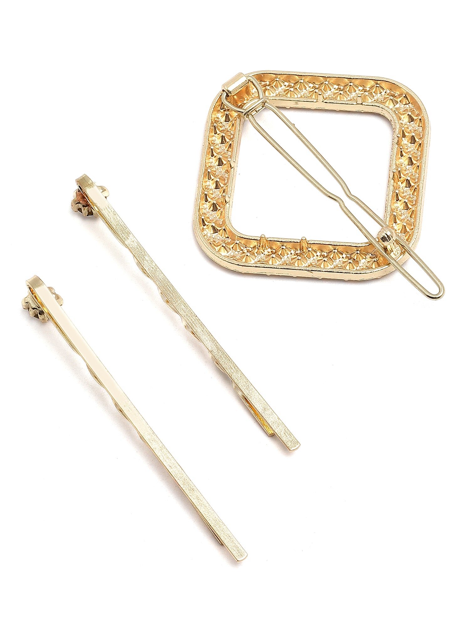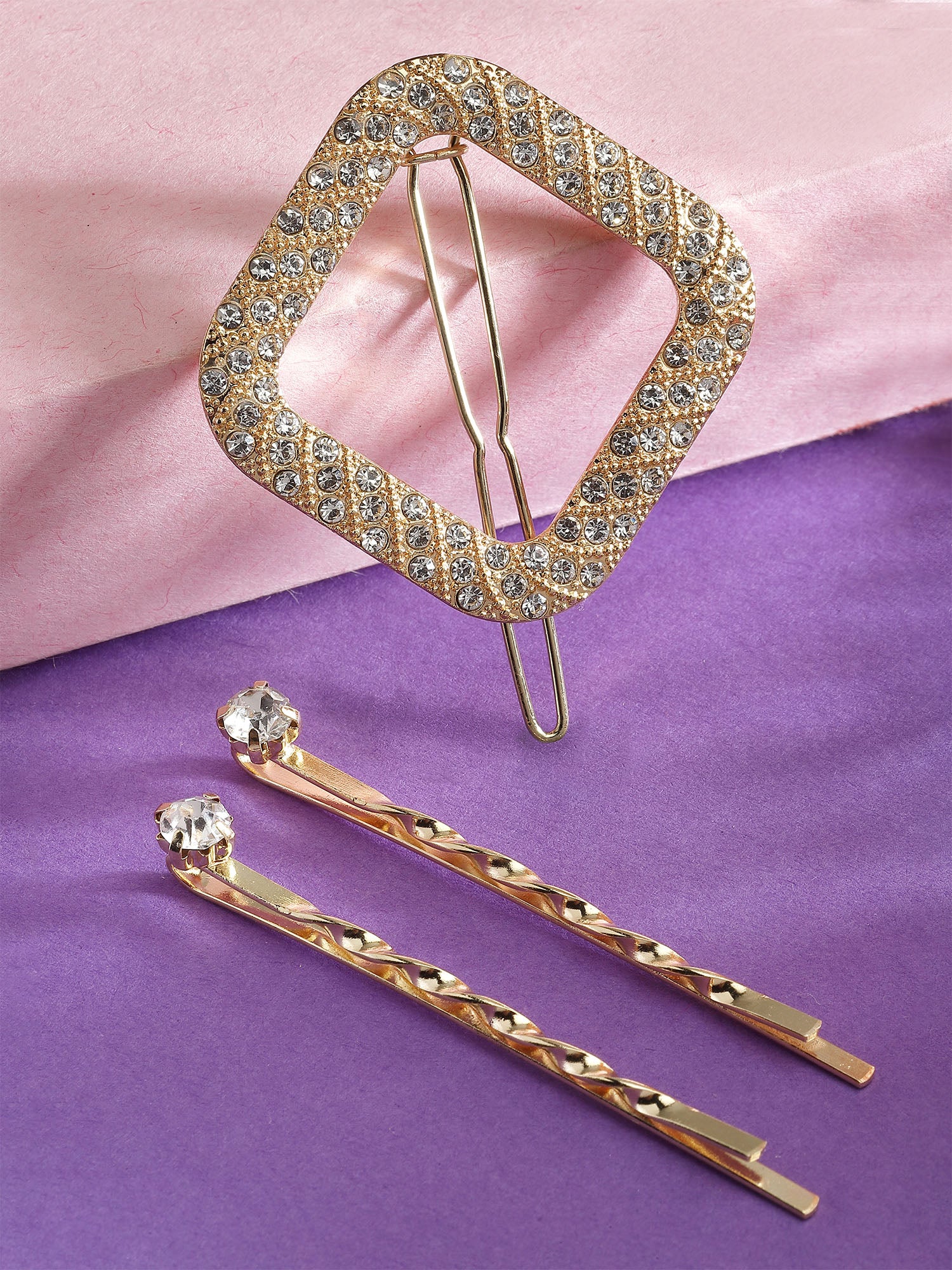 Bohey by KARATCART Gold Tone Set of 3 Crystal Studded Square Hair Clips for Women