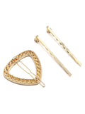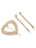 Bohey by KARATCART Gold Tone Set of 3 Crystal Studded Triangle Hair Clips for Women