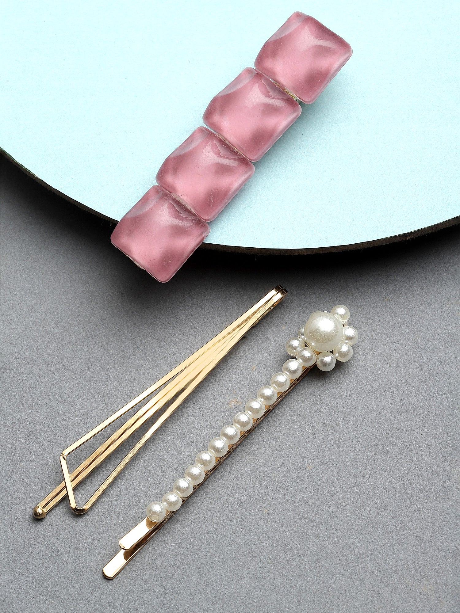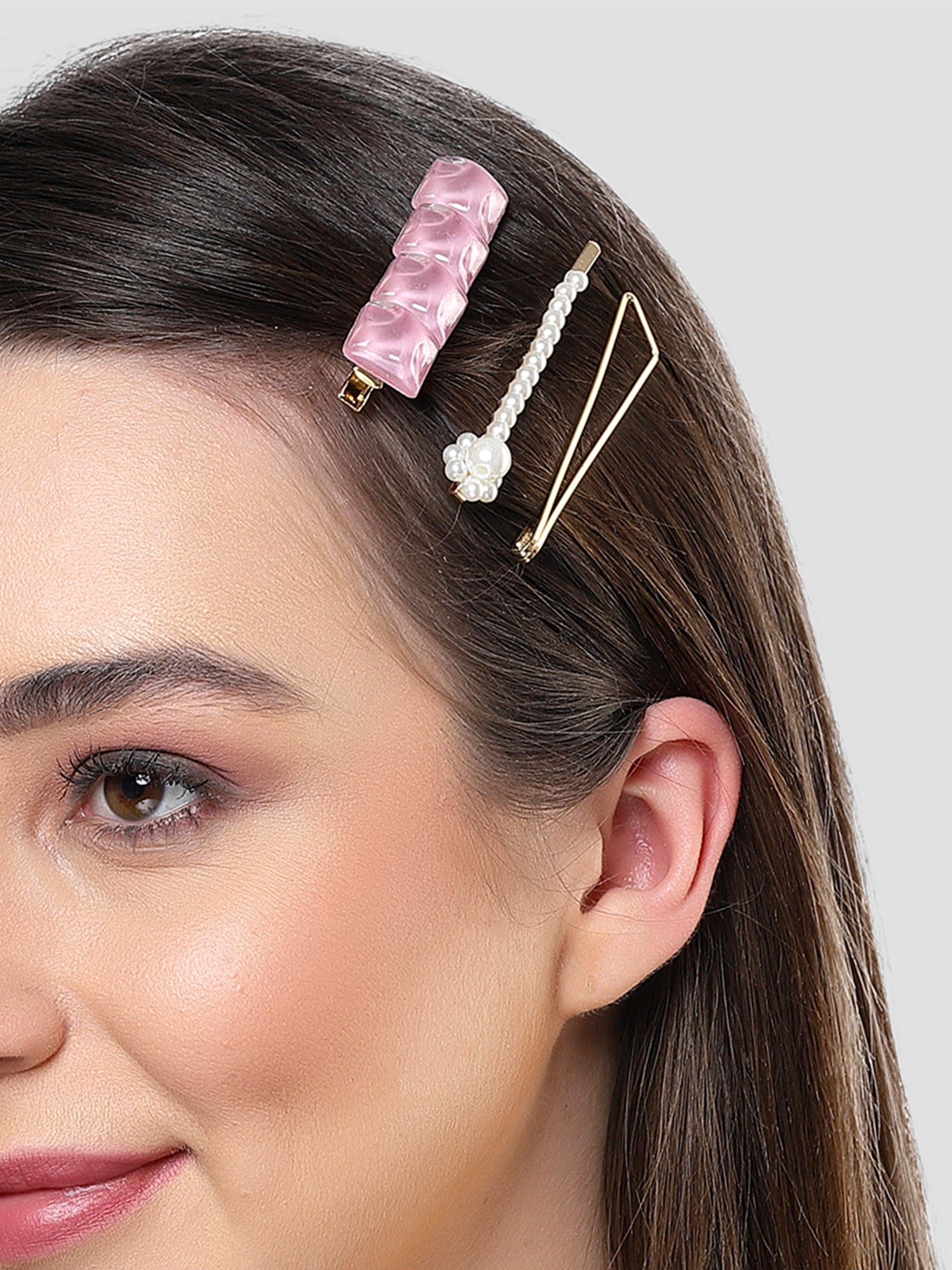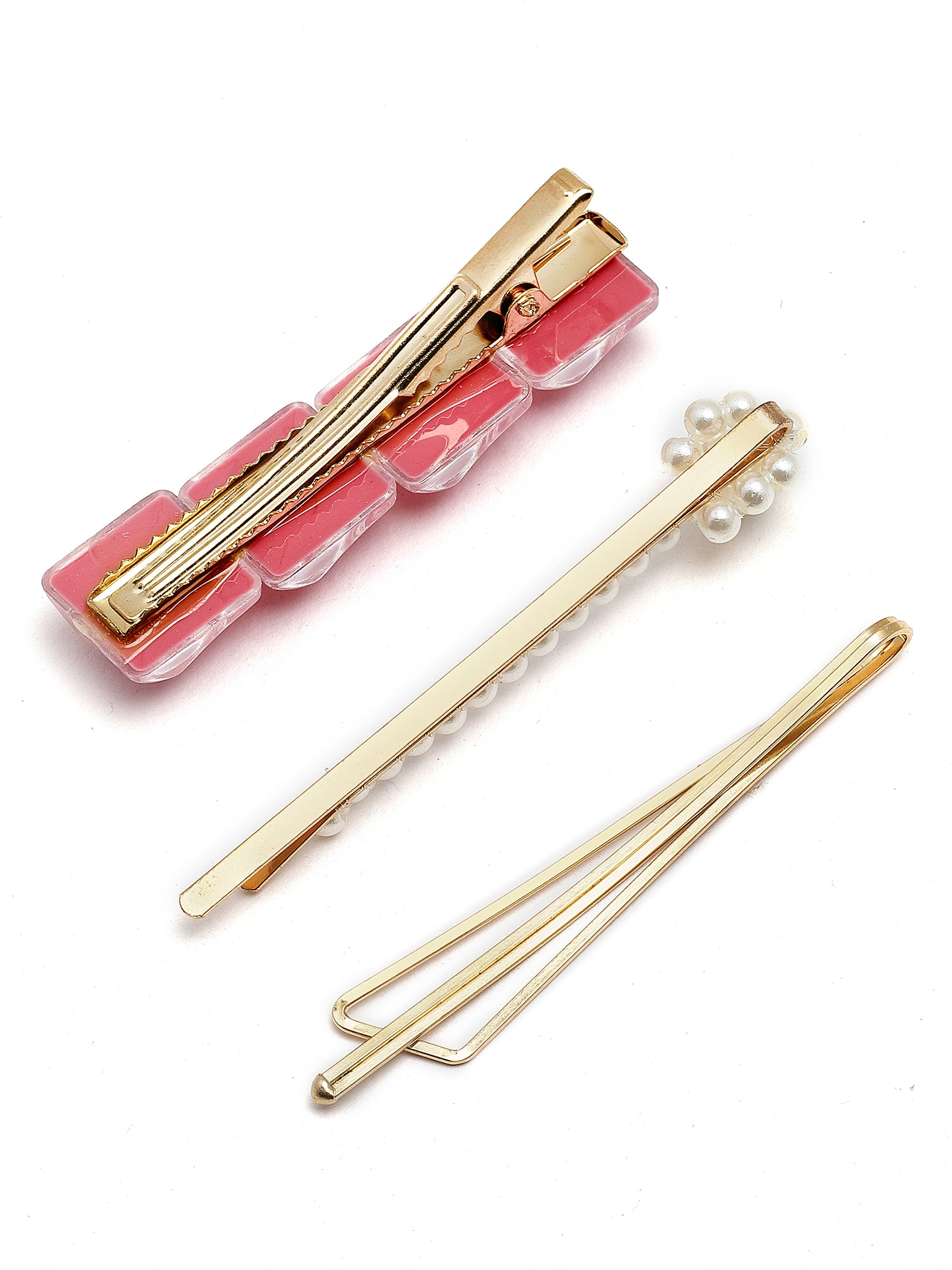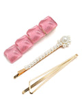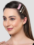 Bohey by KARATCART Set of 3 Pink and White Hair Clips for Women