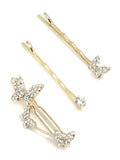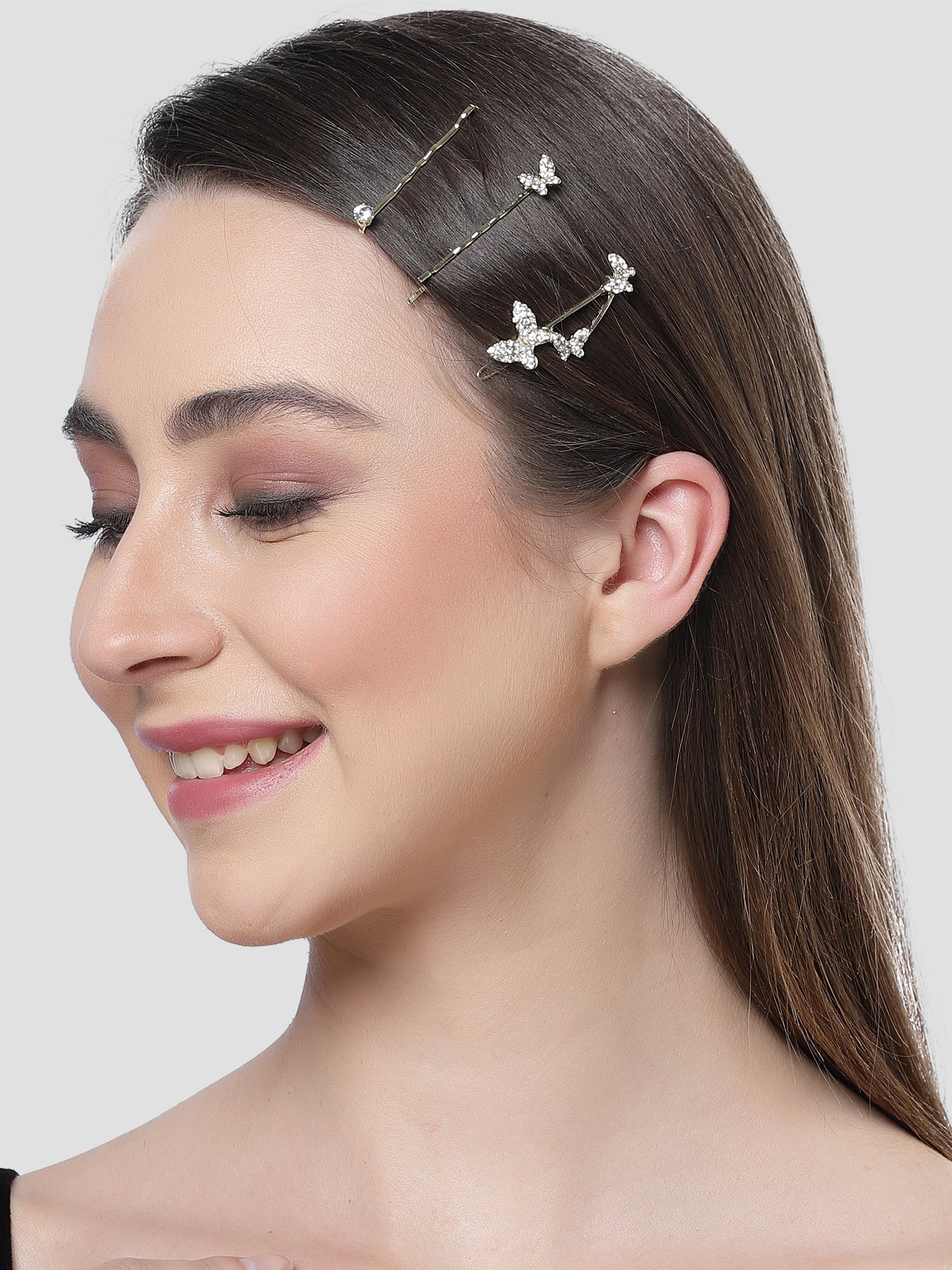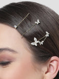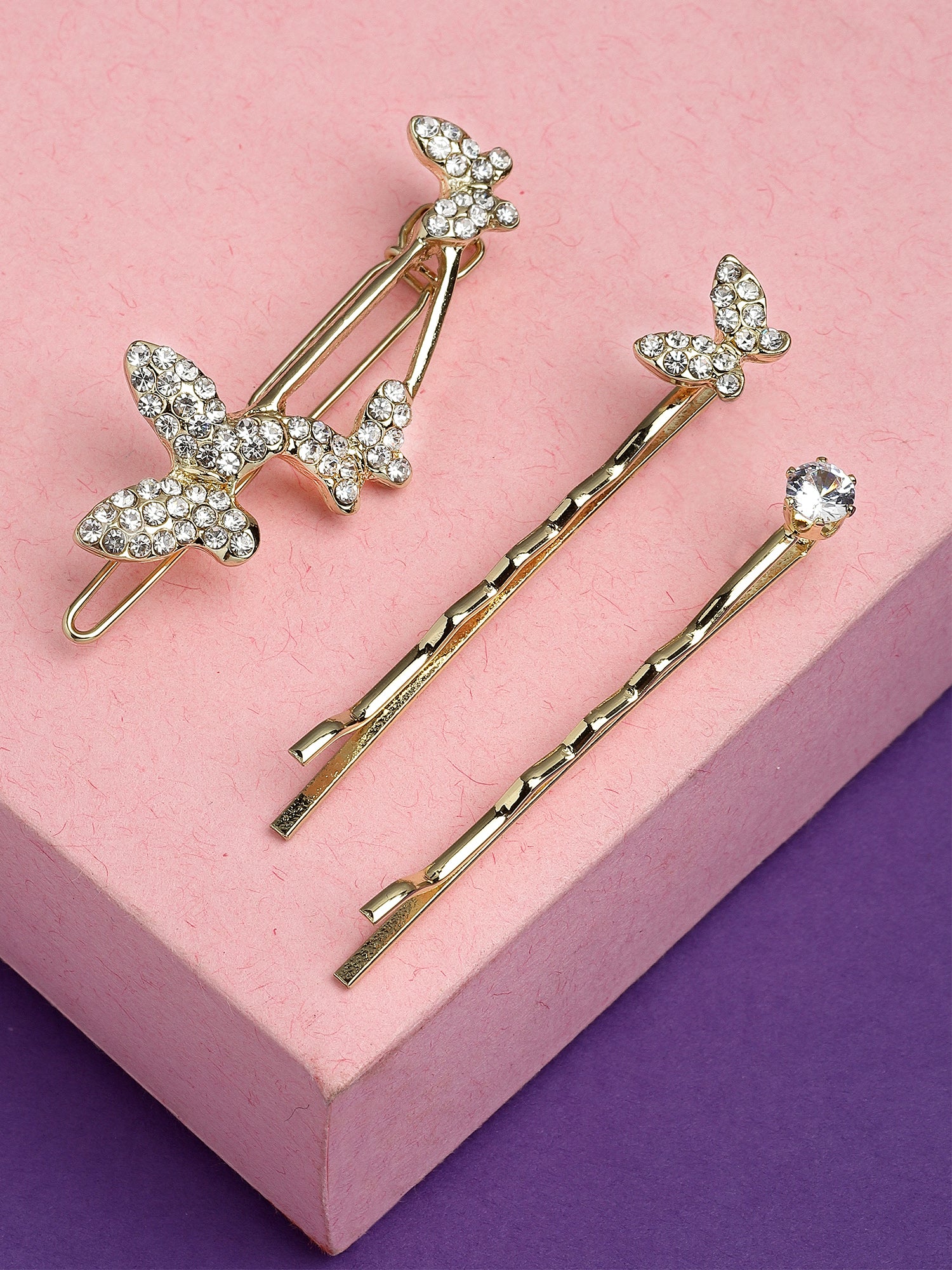 Bohey by KARATCART Set of 3 Gold Plated Butterfly Crystal Studded Hair Clips for Women