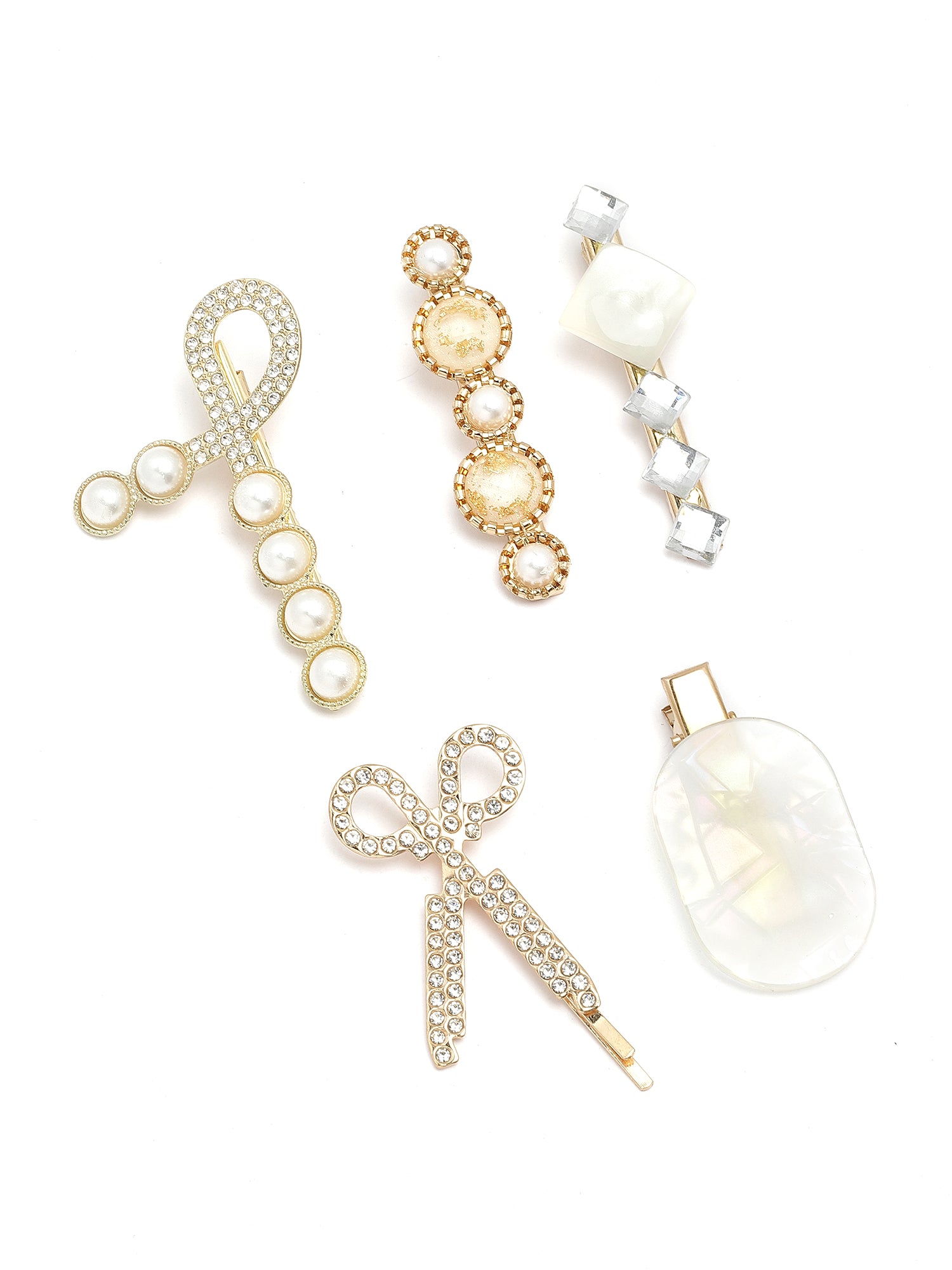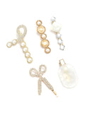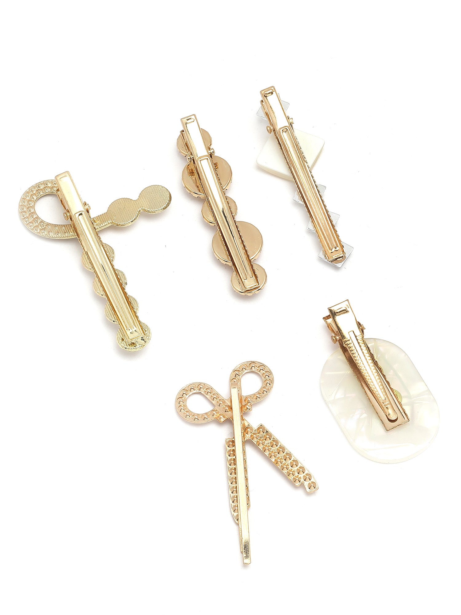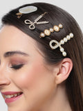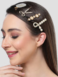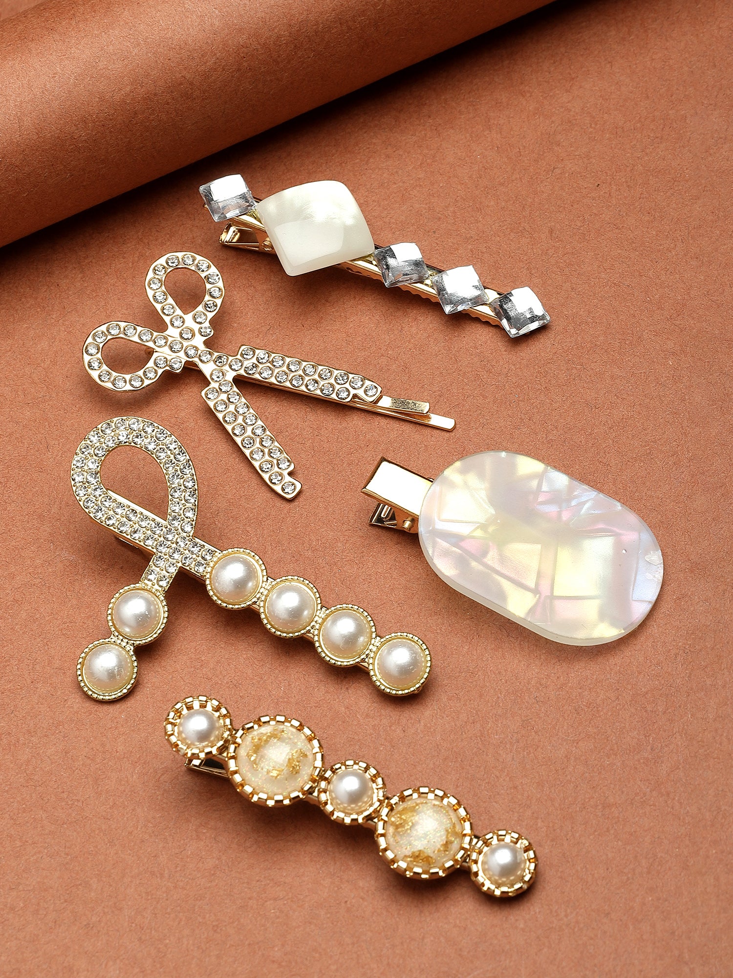 Bohey by KARATCART Set of 5 White Crystal Studded Hair Clips for Women