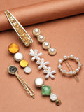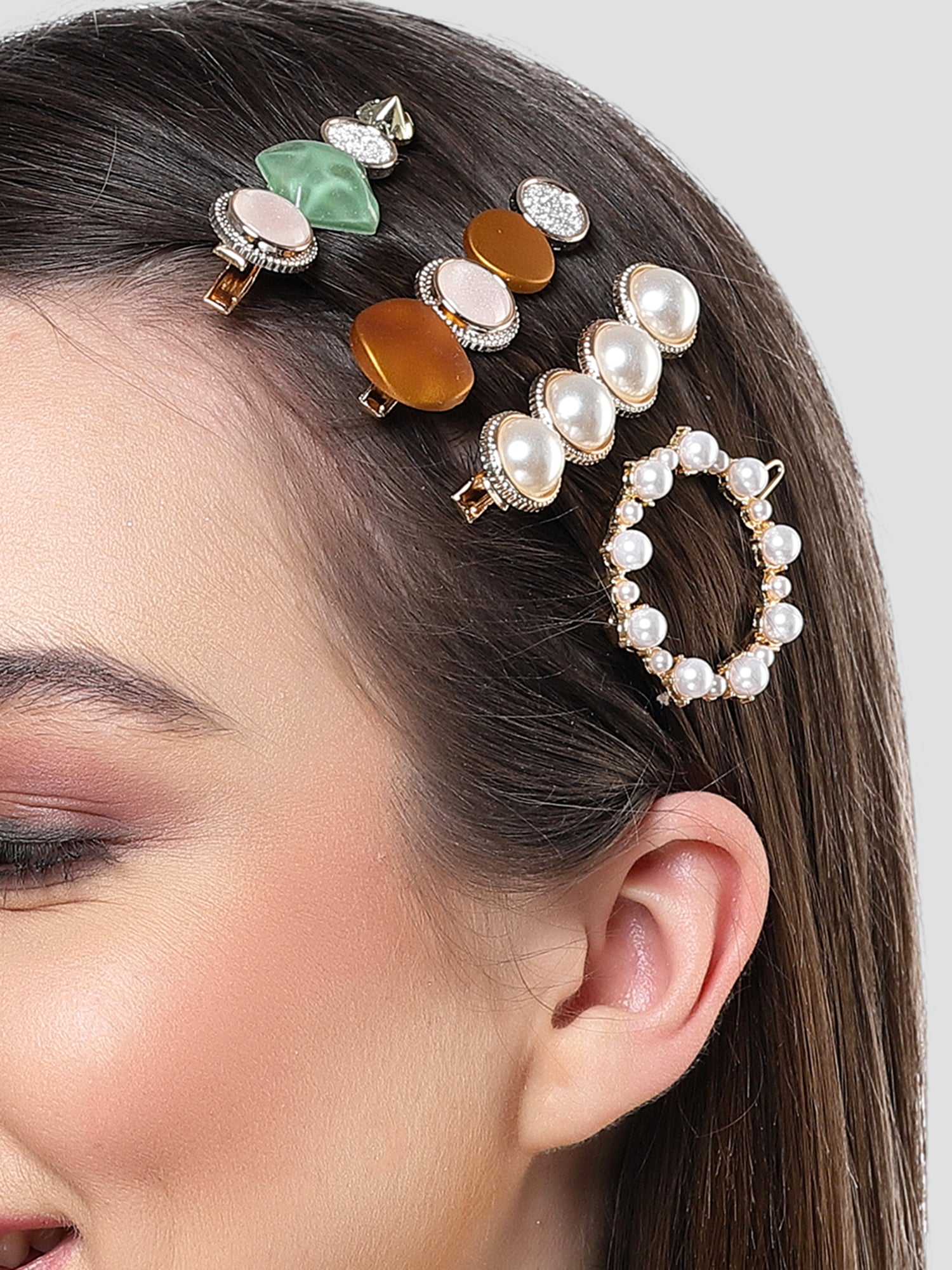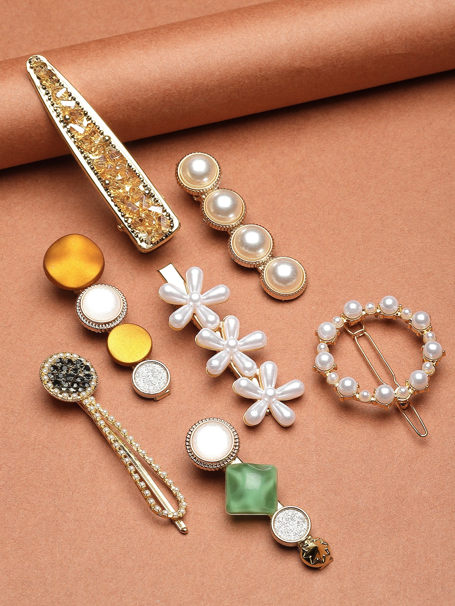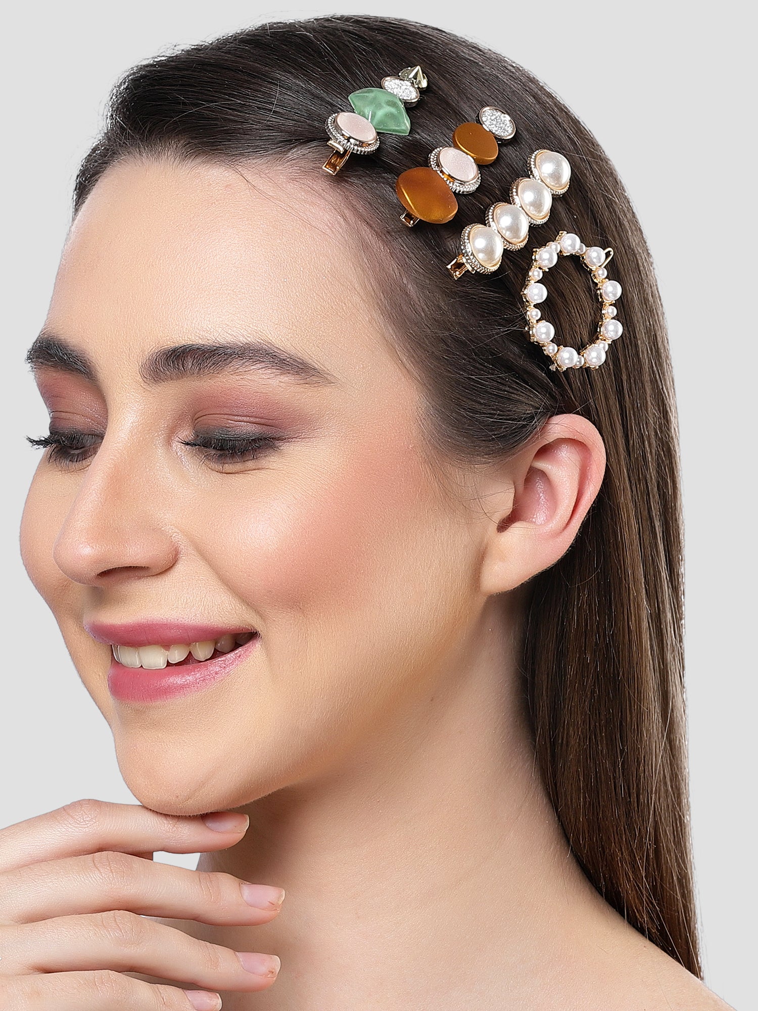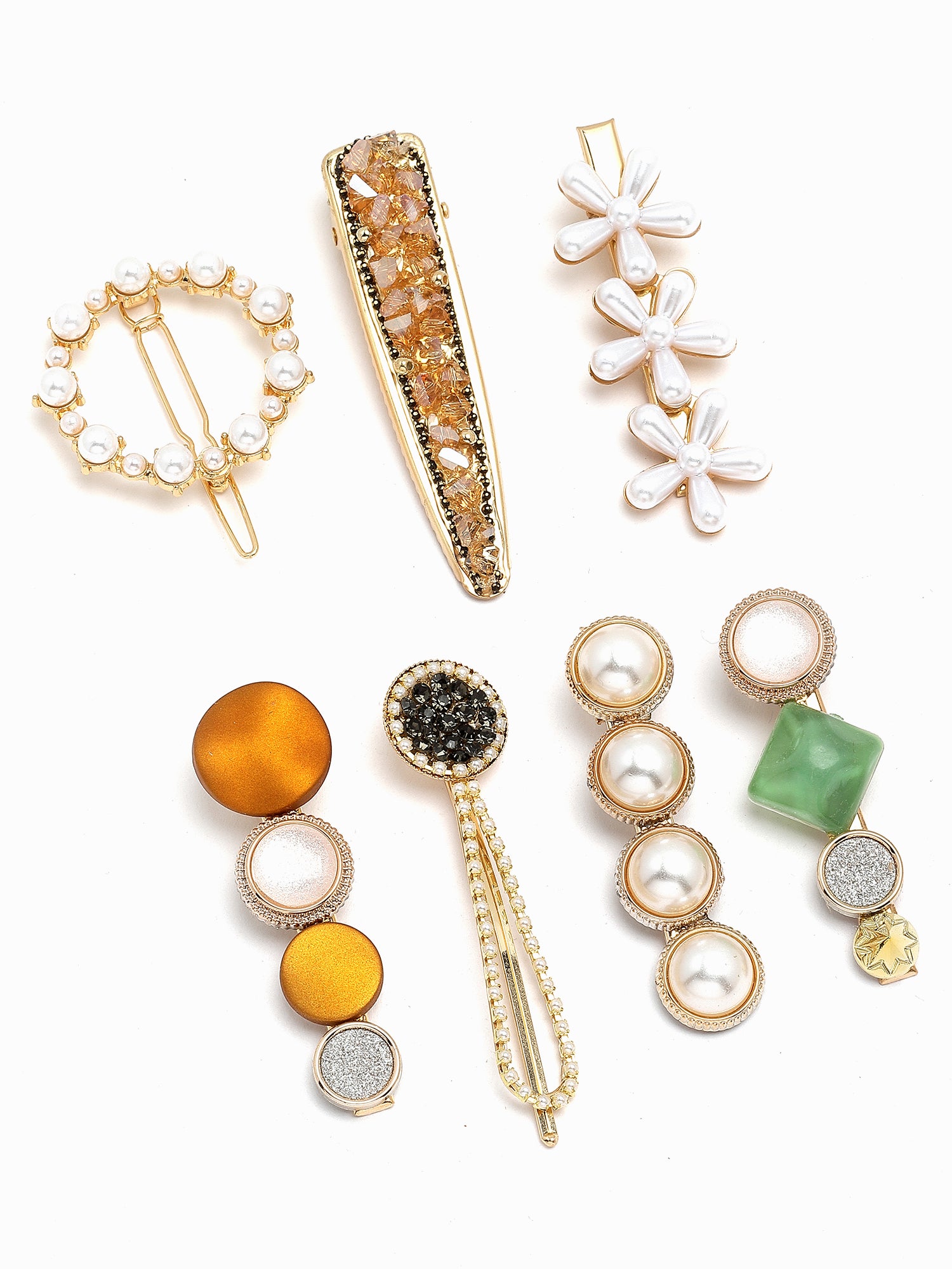 Bohey by KARATCART Set of 7 Embellished Multicolor Alligator Hair Clips for Women