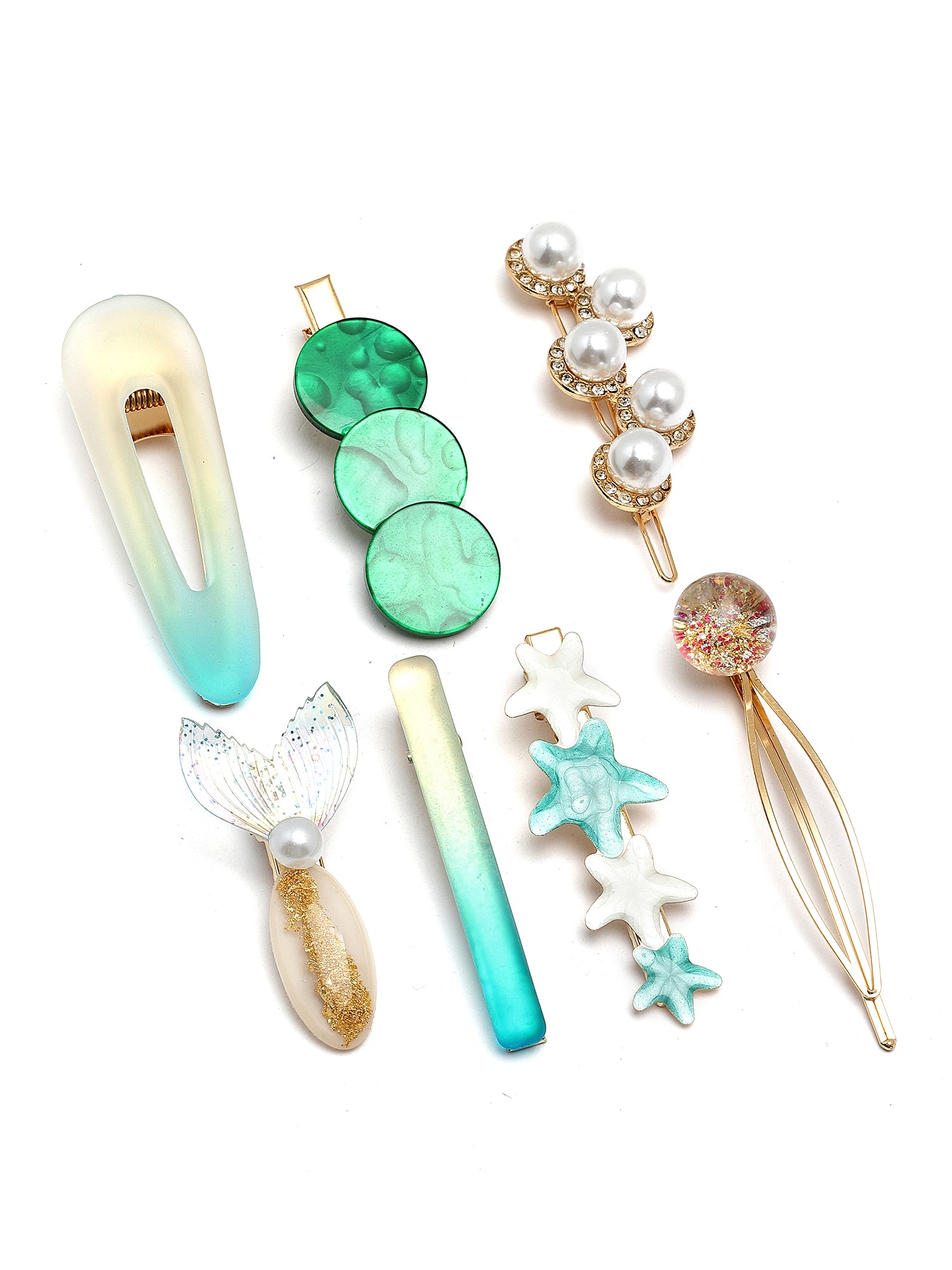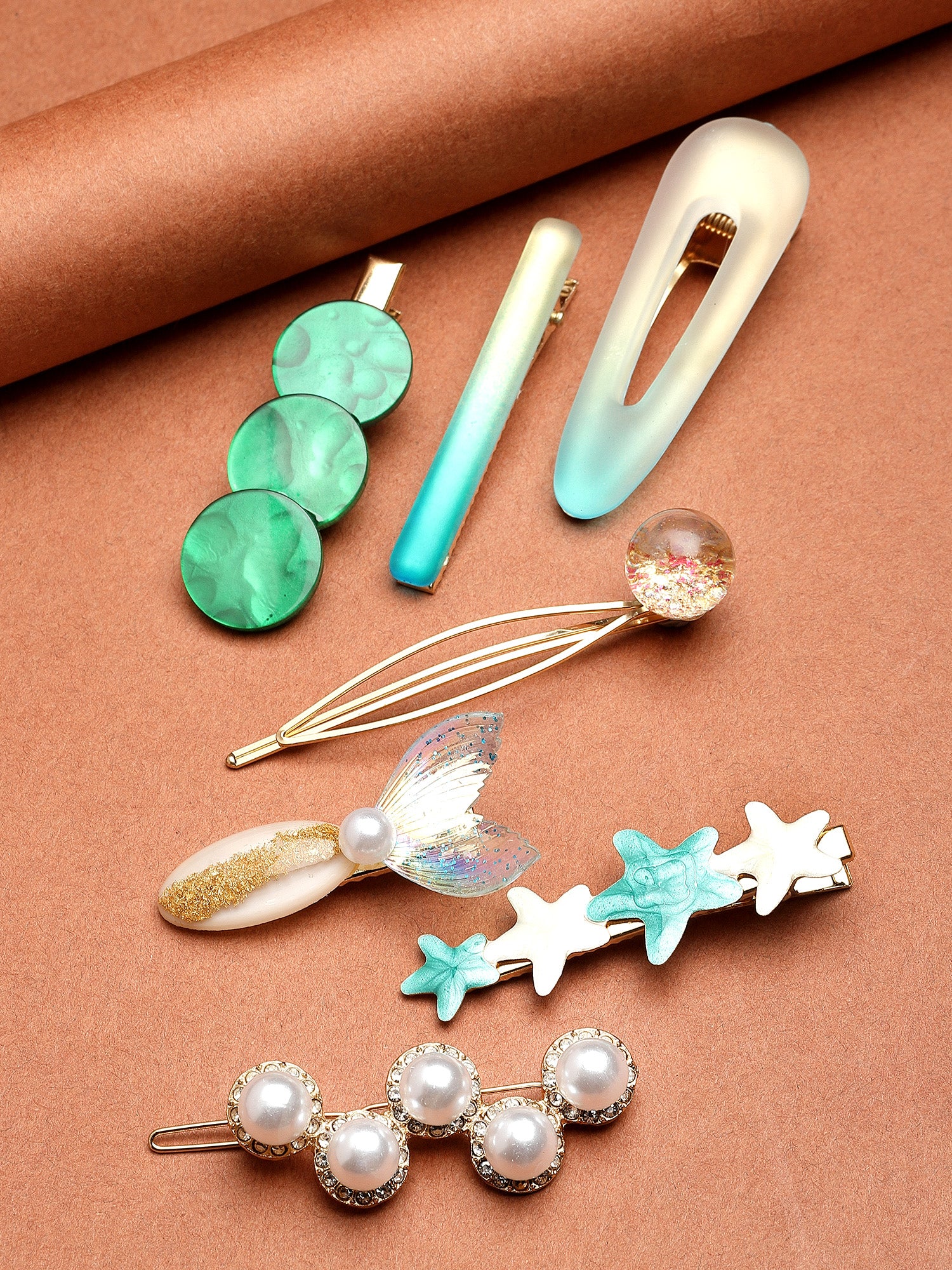 - KARATCART Set of 7 Ocean Theme Hair Clips for Women. Our products are designed with high-quality material and these products are enhanced with plating that are skin-friendly & with love to reach your heart.