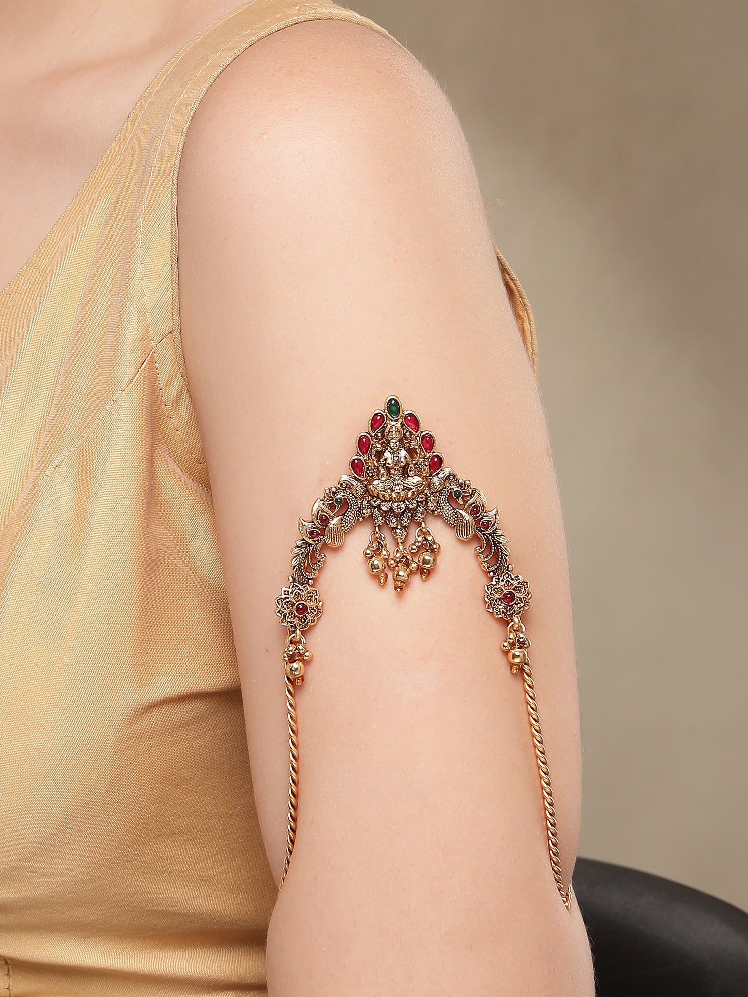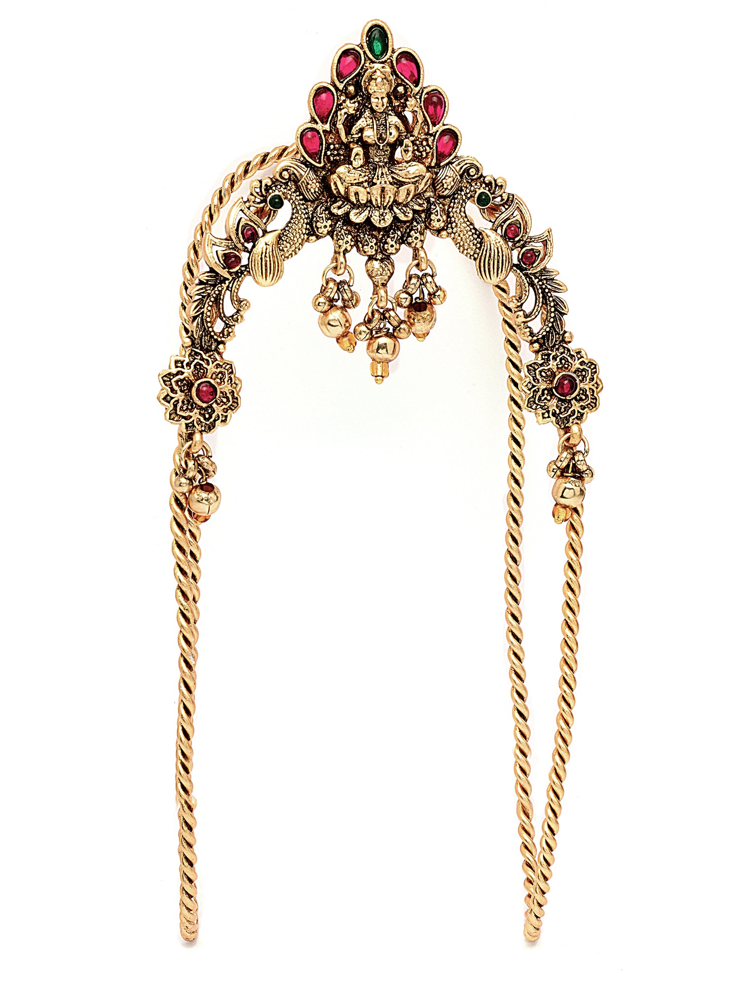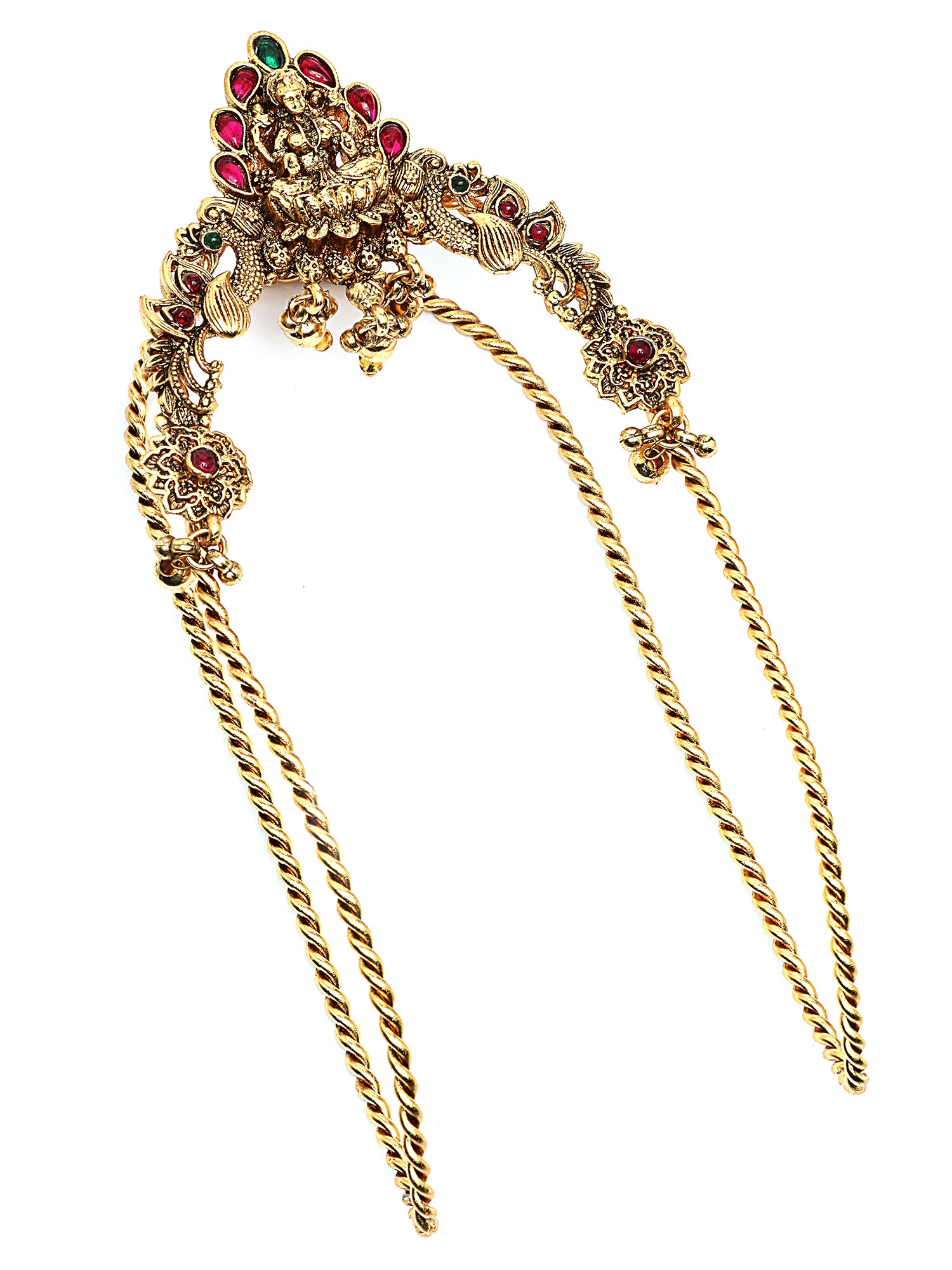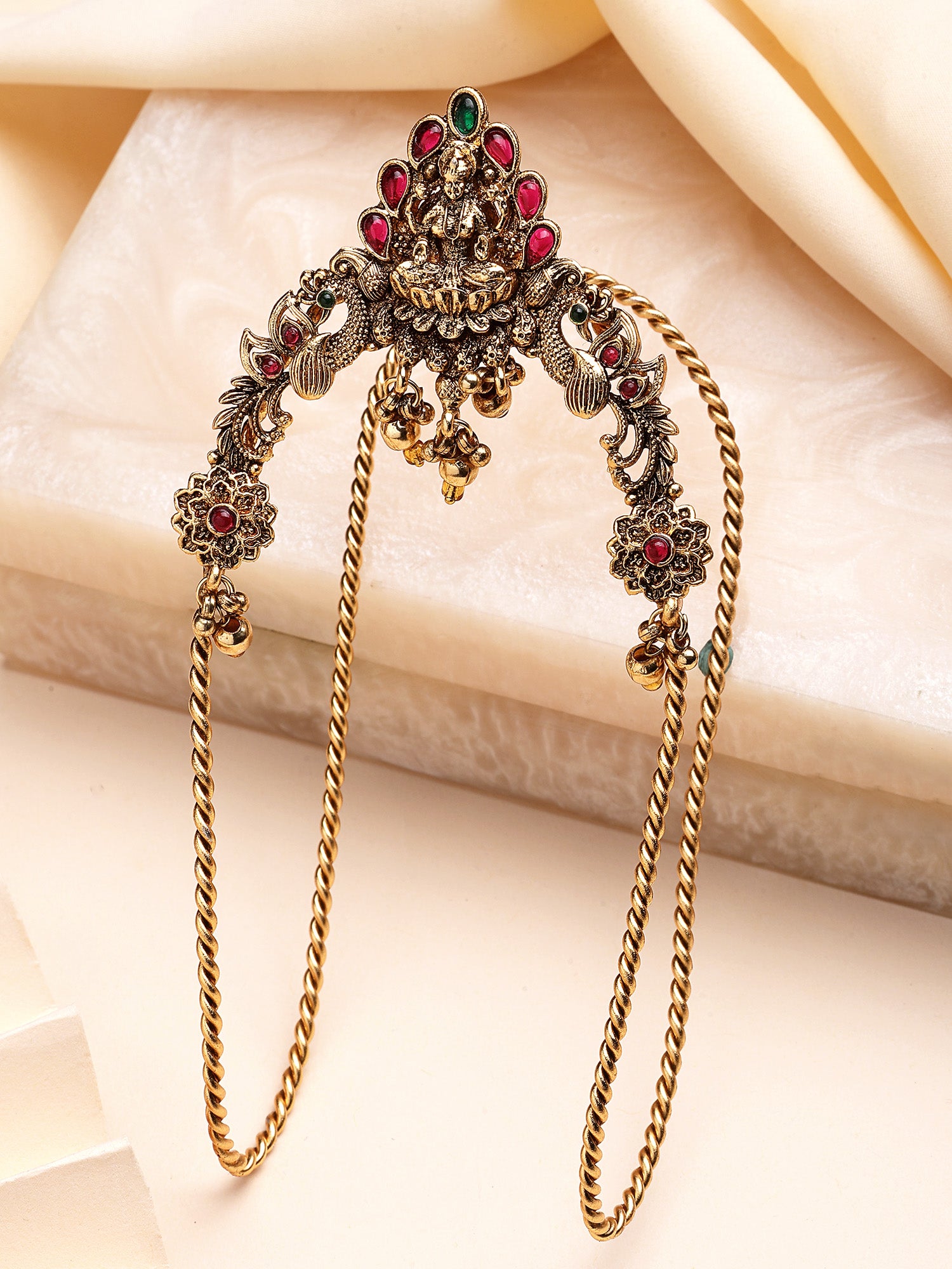 KARATCART South Indian Style Gold-Plated Hand Veni with Gemstone Detailing for Women