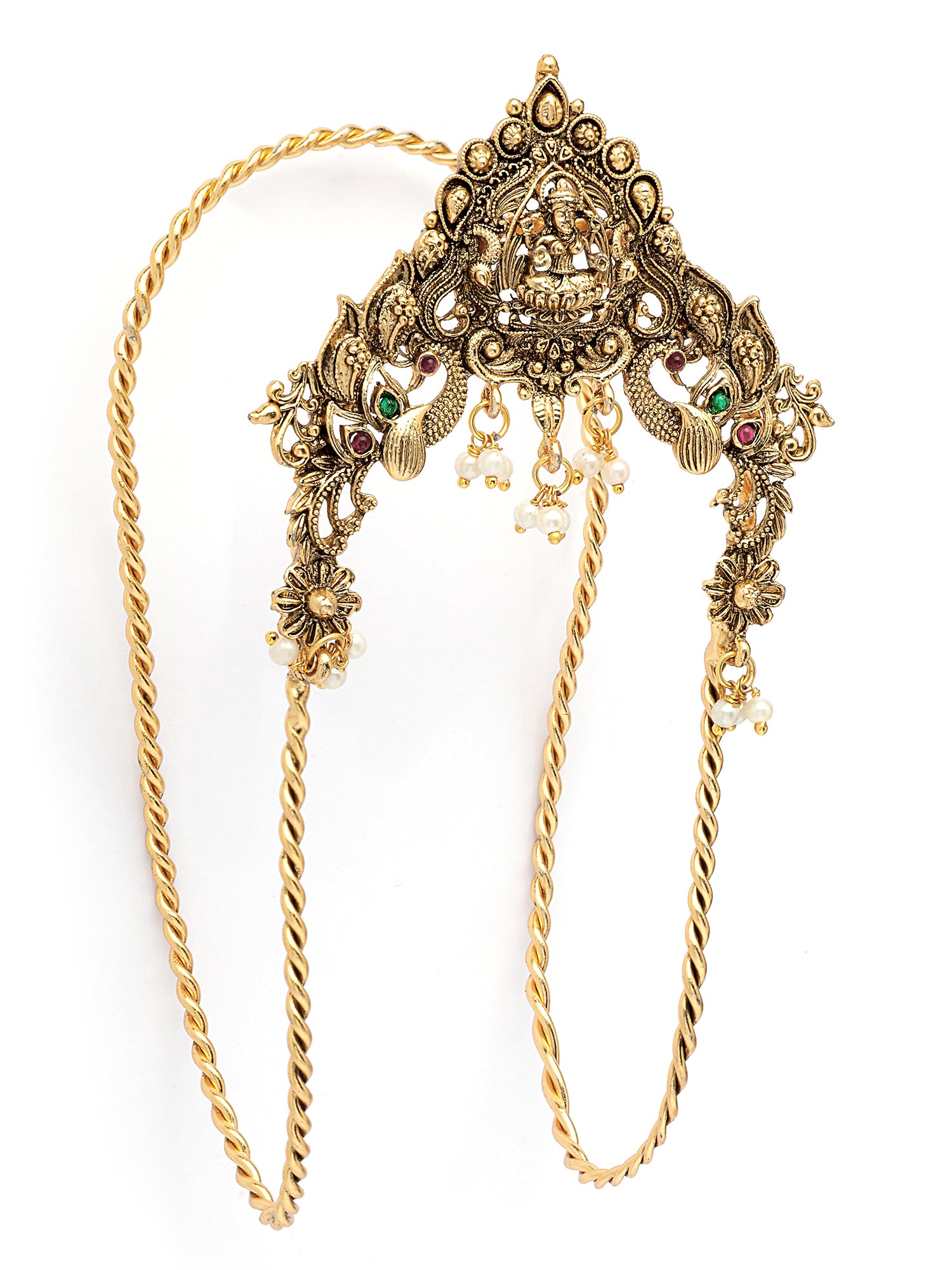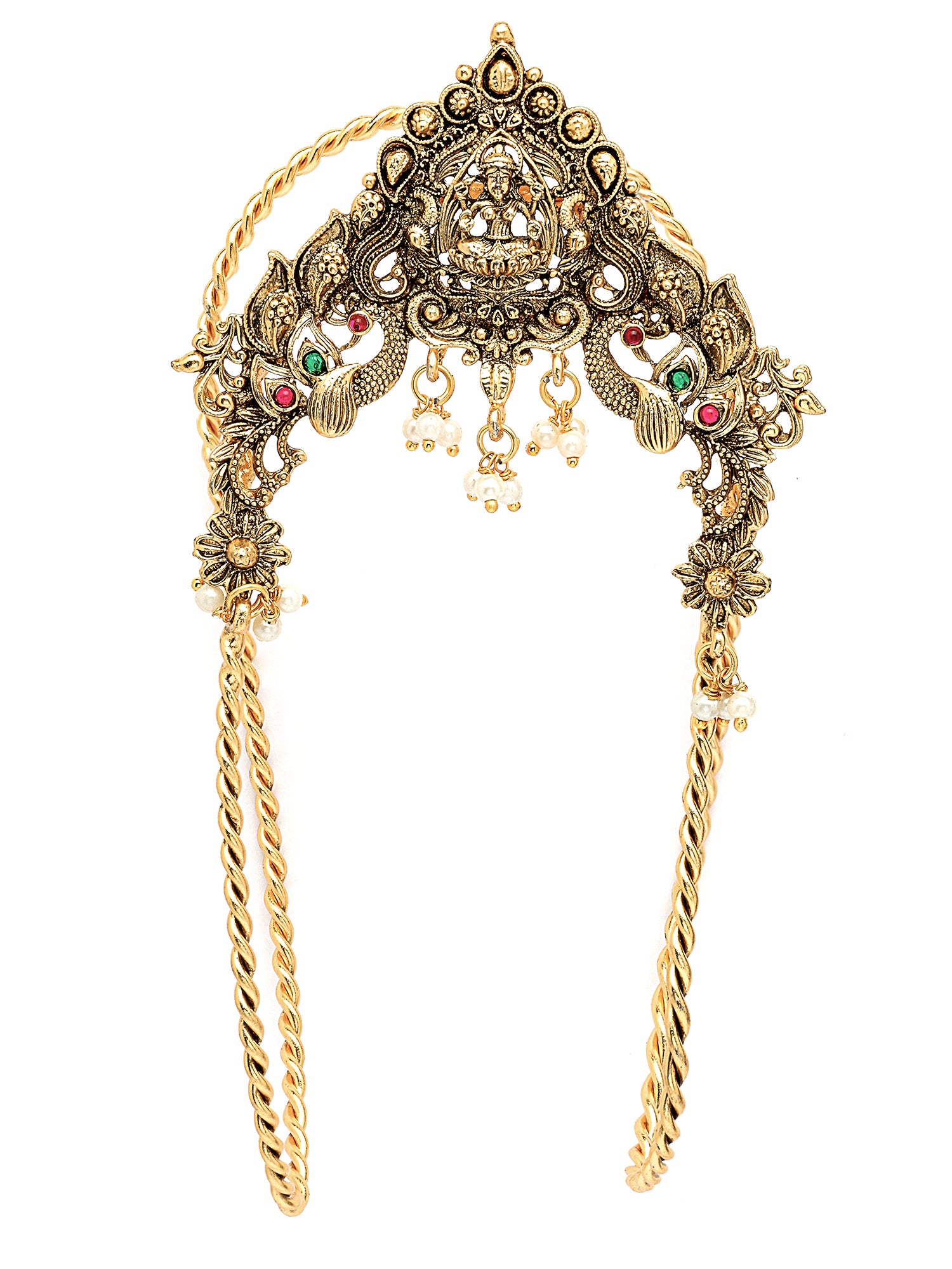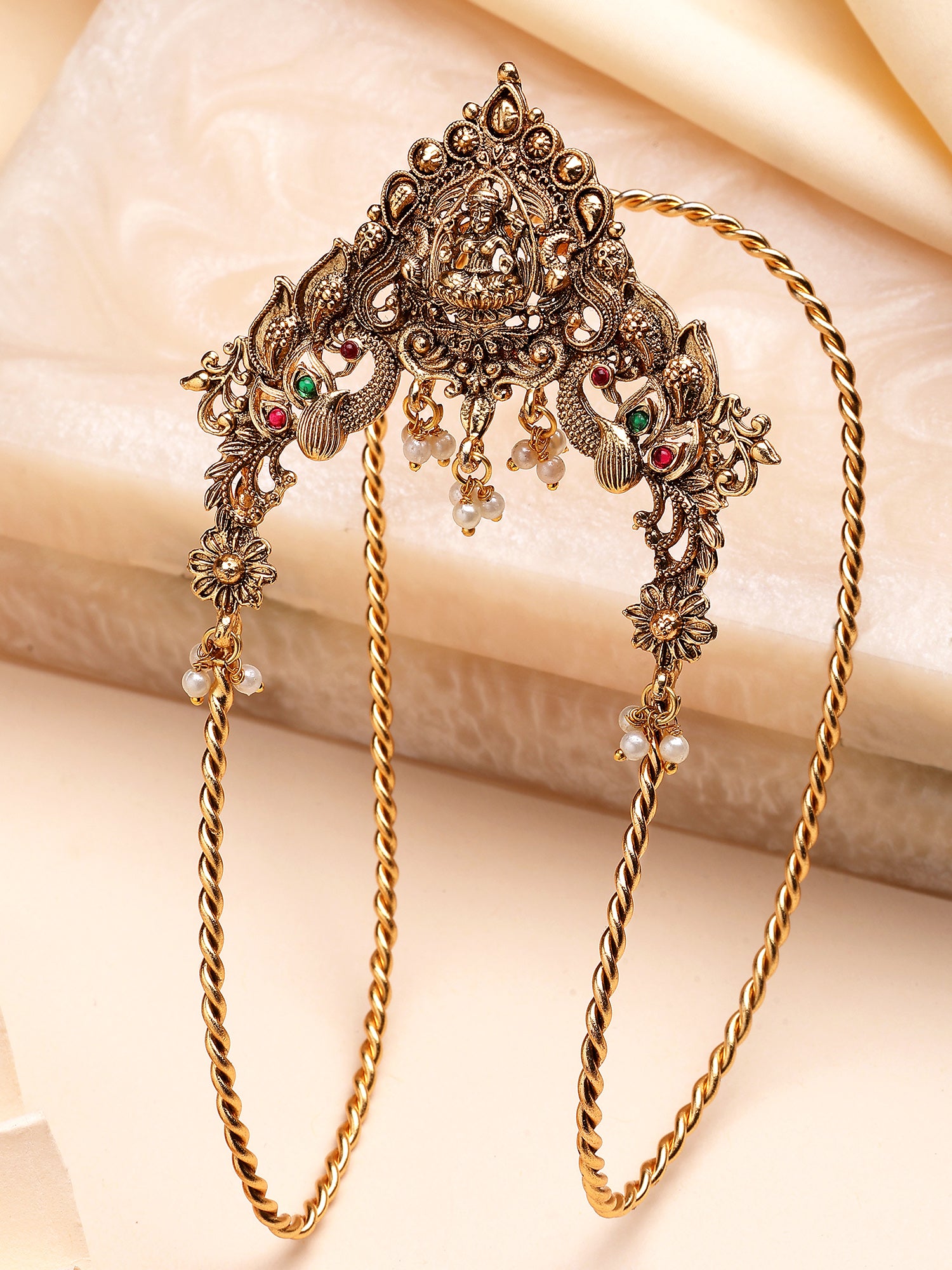 KARATCART Elegant Gold-Plated Hand Veni with Goddess Lakshmi Motif for Women