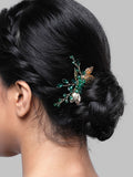 Bohey by KARATCART Green Crystal Leaf Design Hair Clip for Women