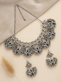 Oxidised Silver Black Kundan Studded Necklace Set