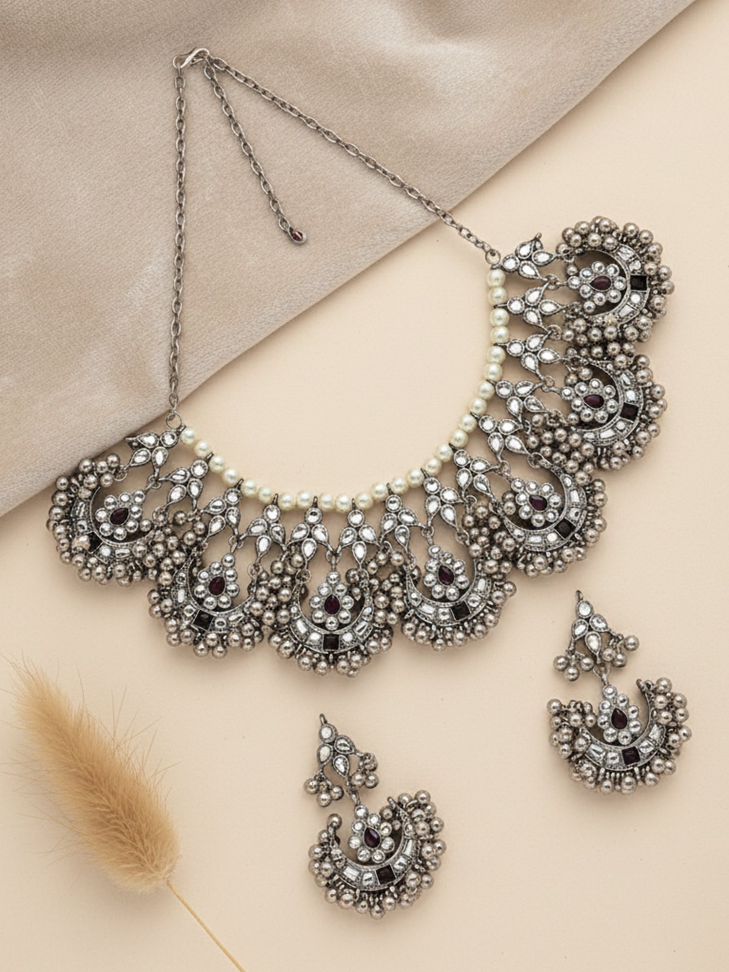 - Afghani Tribal Oxidised Silver Black Kundan Studded Necklace with Earrings. It is a High-Quality Oxidised Silver Jewellery Embellished with Kundan. Perfect for Weddings, Party, Festivals, Traditional Occasions.
