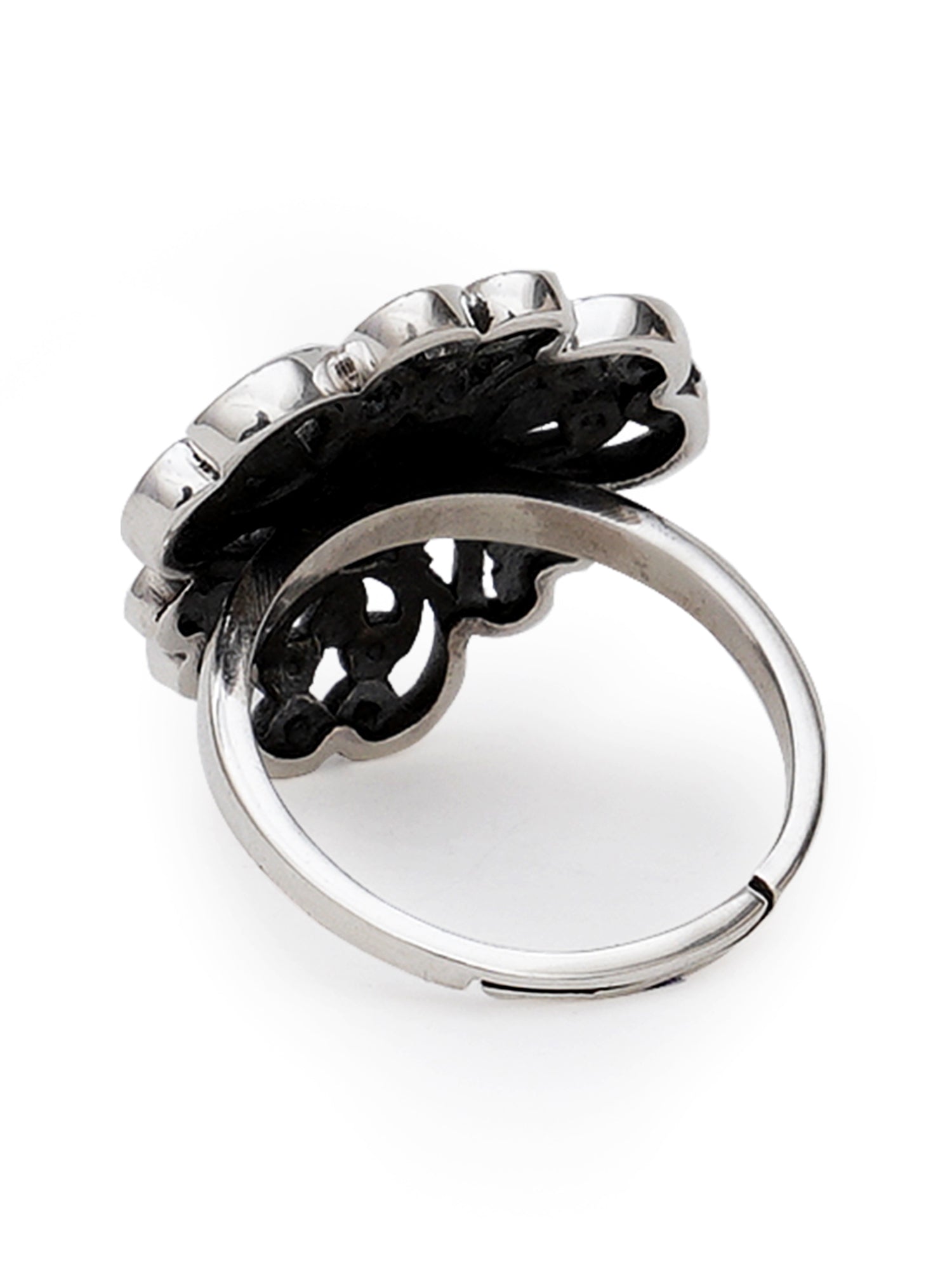- KUNUZ 925 Sterling Silver Oxidised Antique Adjustable Ring for Women