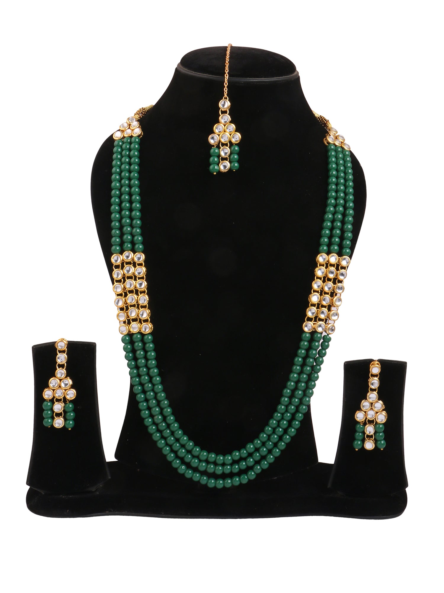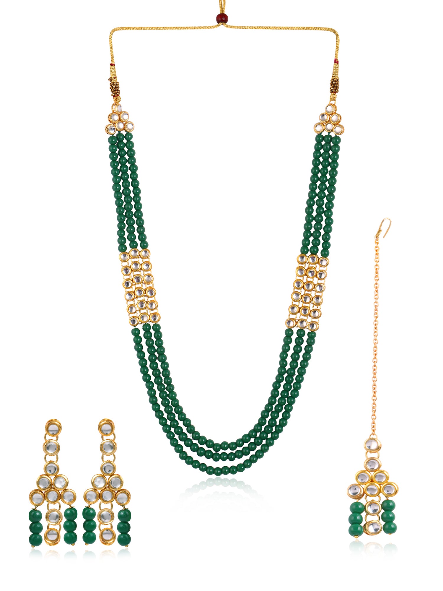 Be the sizzling diva who everyone looks up to in this Kundan ethnic necklace set. Pair it with a gorgeous lehenga or saree. Perfect if you're aiming for a simple yet dramatic look