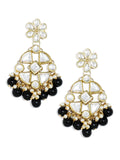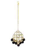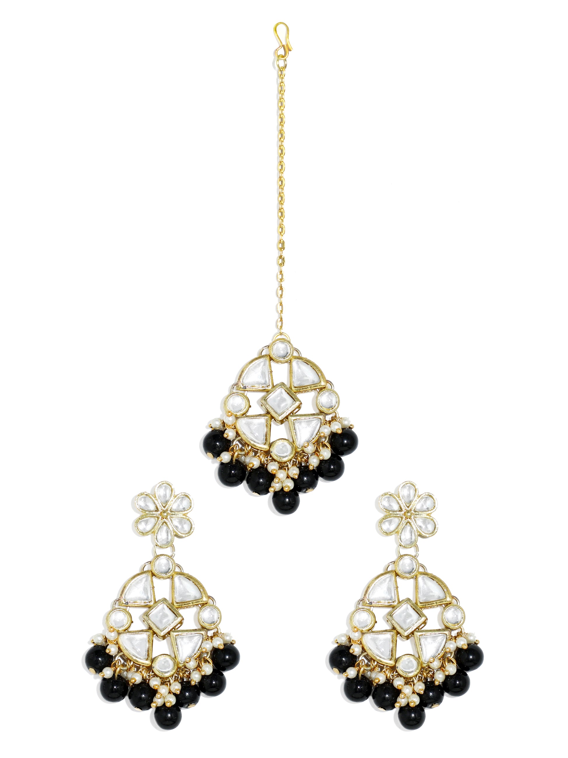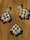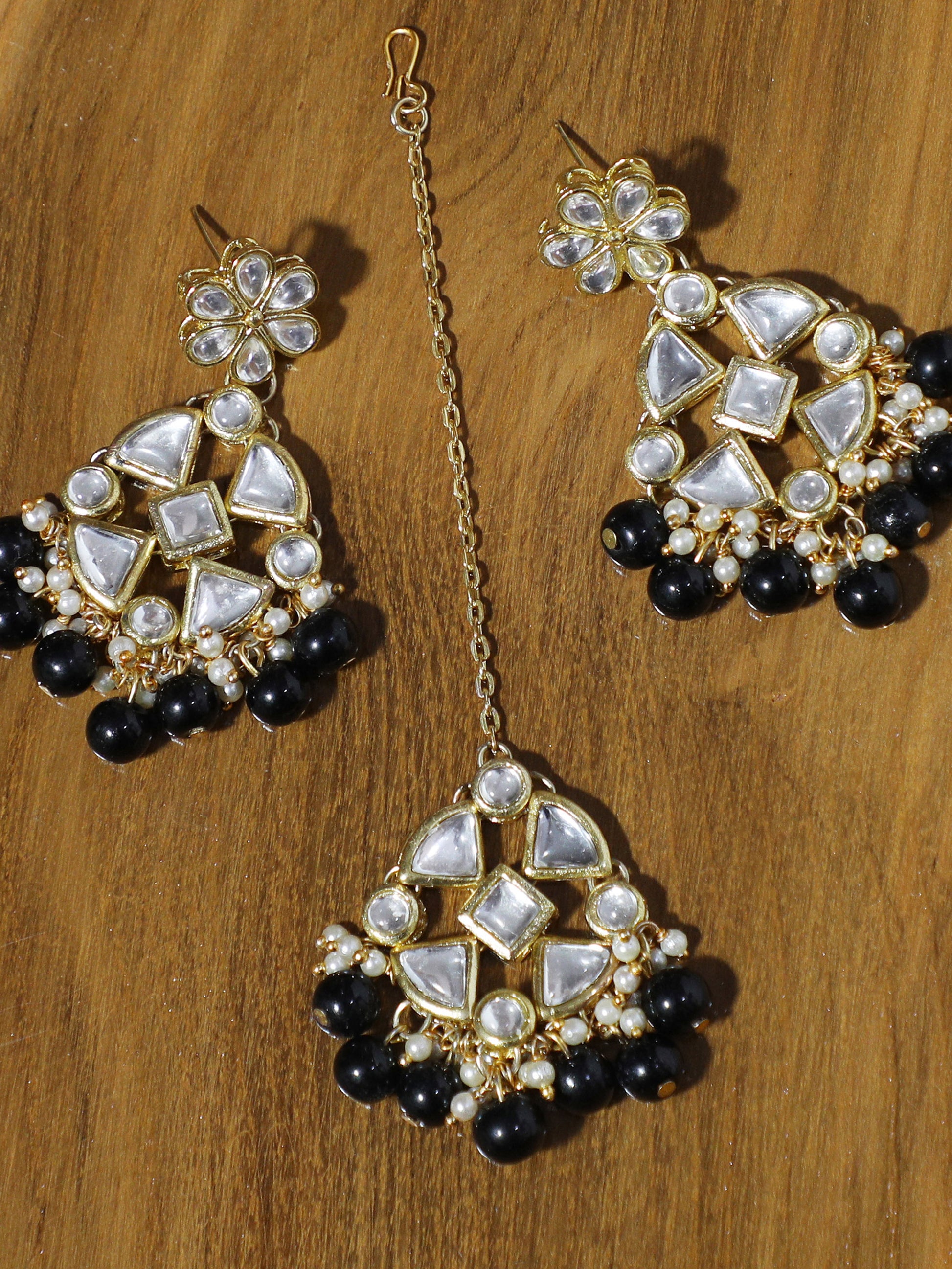 Black Beads Kundan Dangler Earrings with Maangtikka