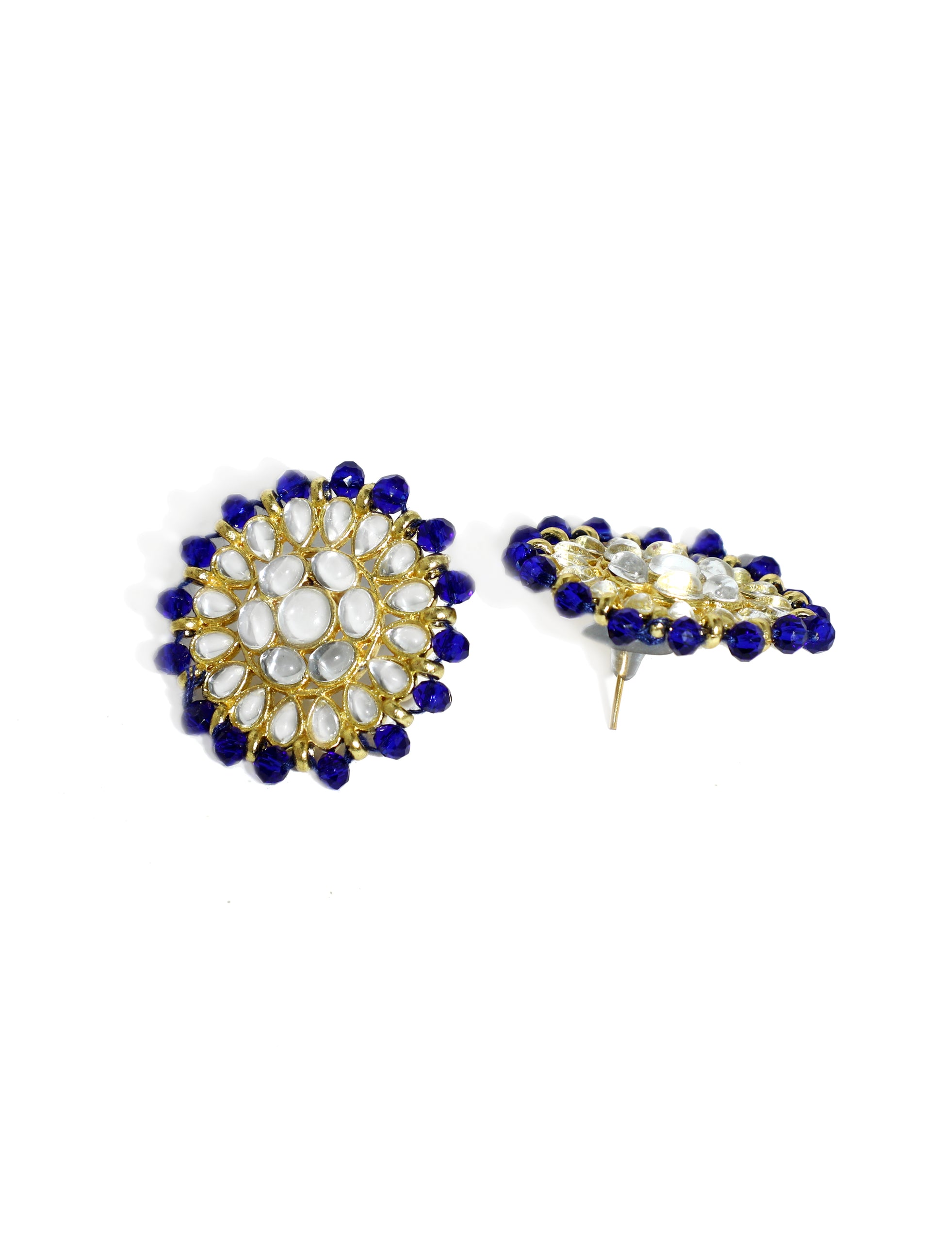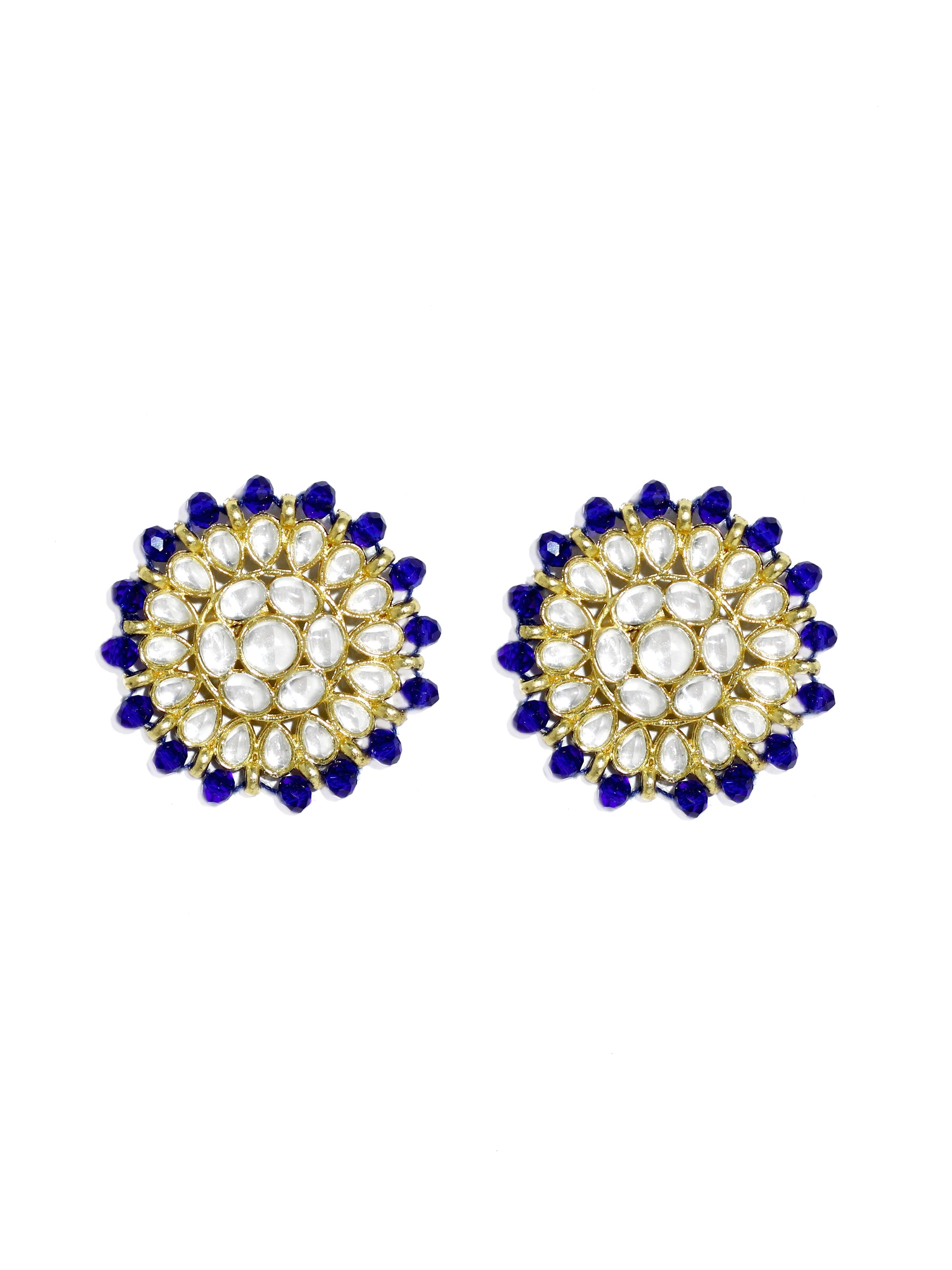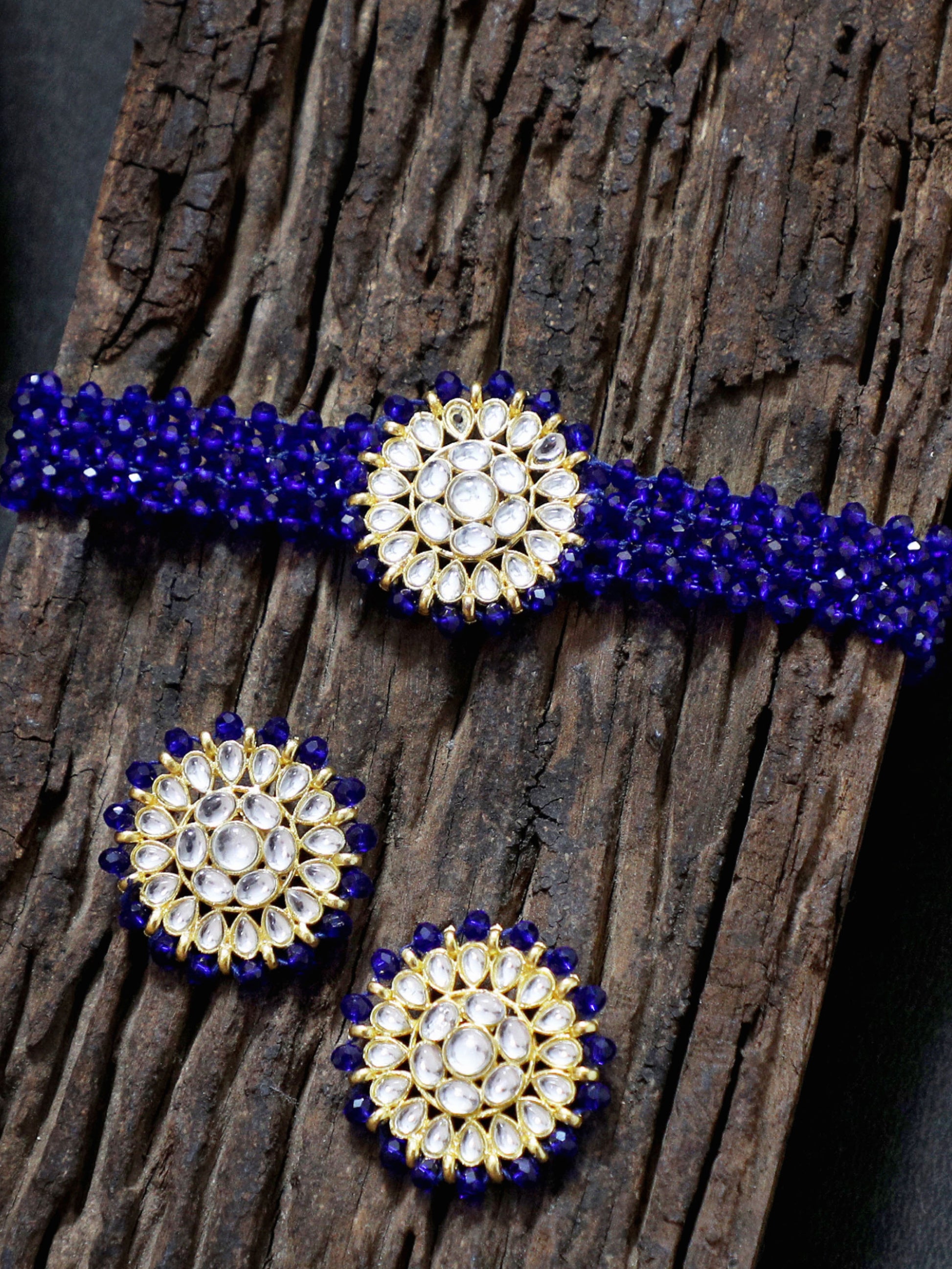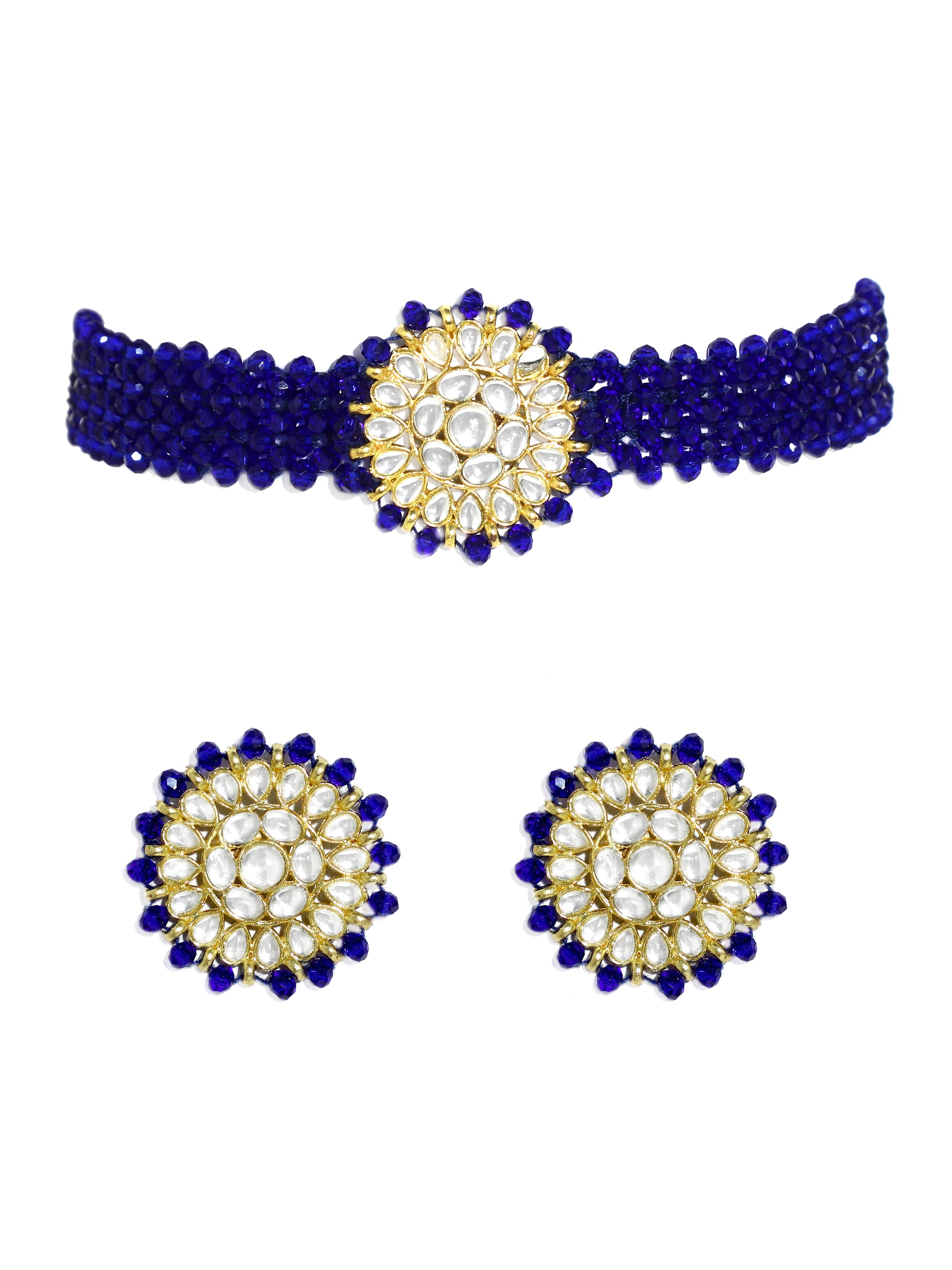 - Look Stylish and Trendy with this Blue Crystal Kundan Choker Necklace with Stud Earrings. Best when paired with Indian or Indo-Western Attire. Made with Internationally approved skin-friendly material. Perfect for Weddings, Festivals, Traditional Occasions. Best when paired with any Indian outfit.