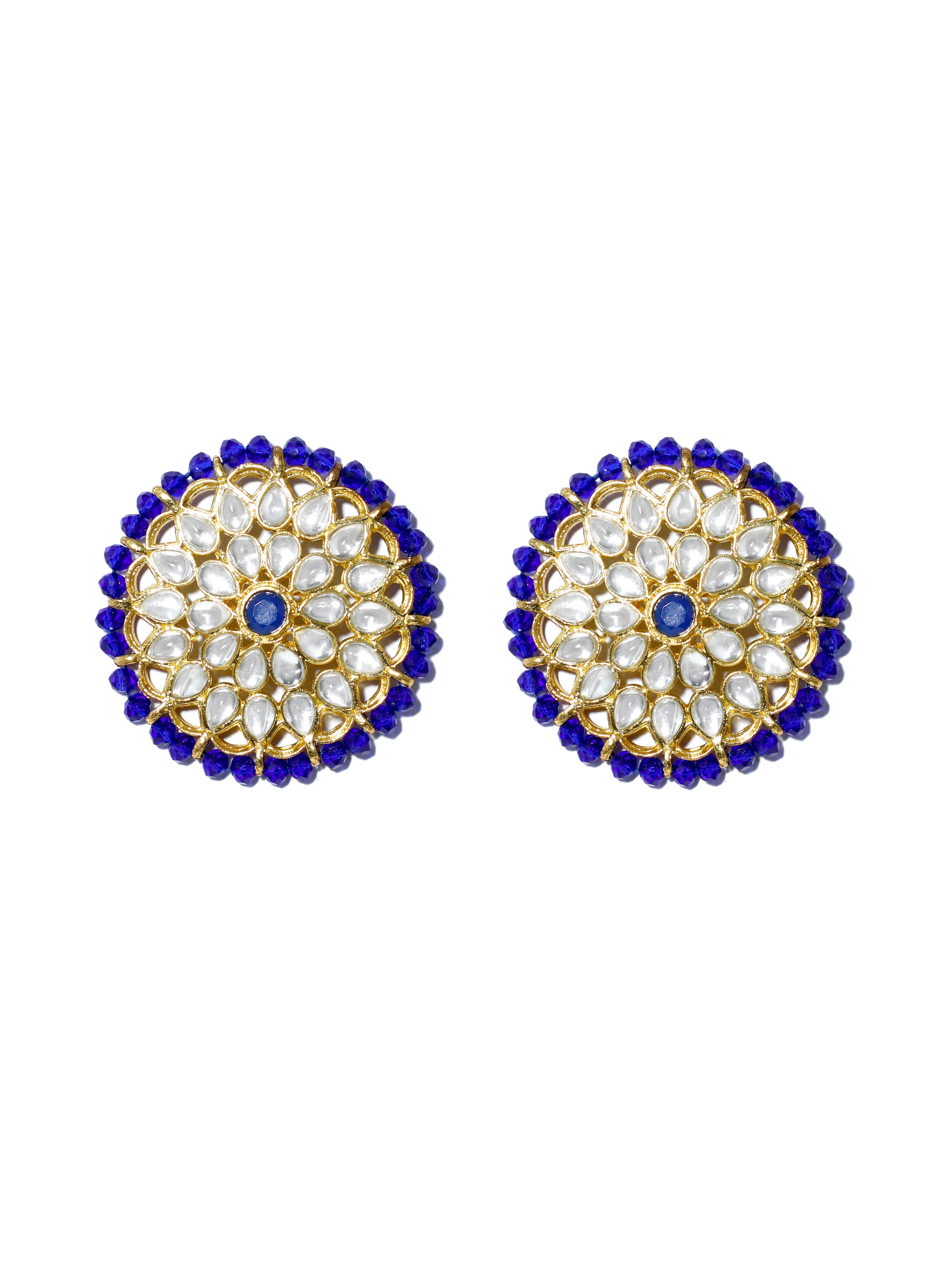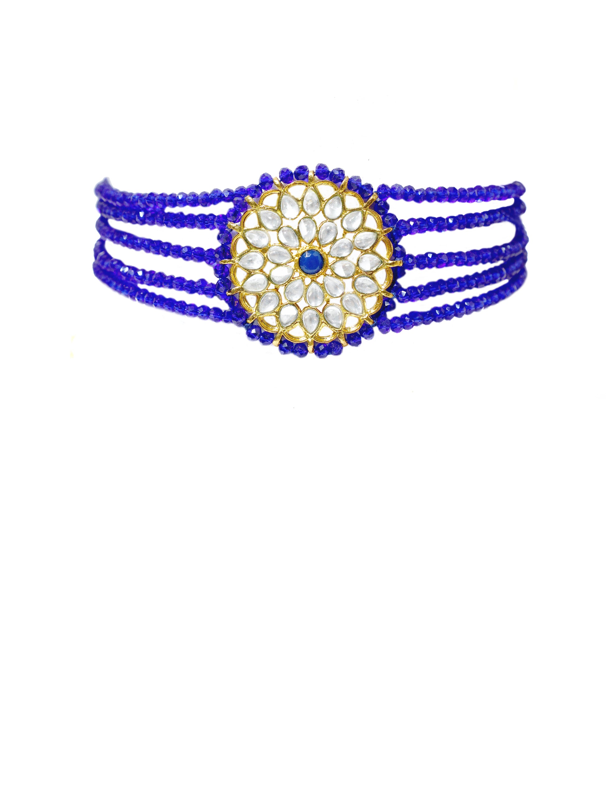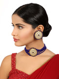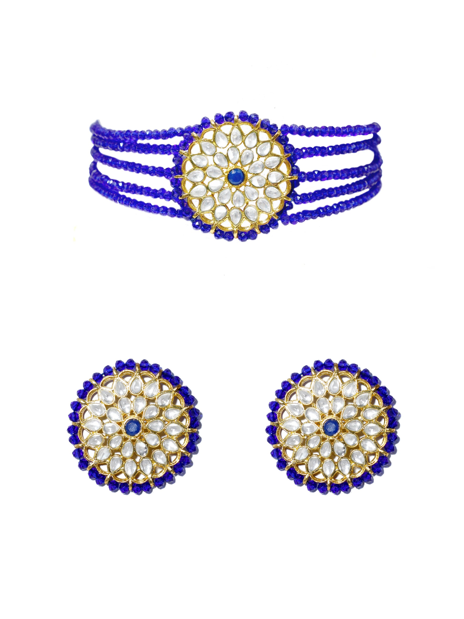 - Look Stylish and Trendy with this Blue Beads Studded Kundan Choker Necklace with Stud Earrings. Best when paired with Indian or Indo Western Attire. Made with Internationally approved skin friendly material