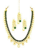 - 22K GoldPlated Kundan Layered Green Drop Ethnic Necklace set.