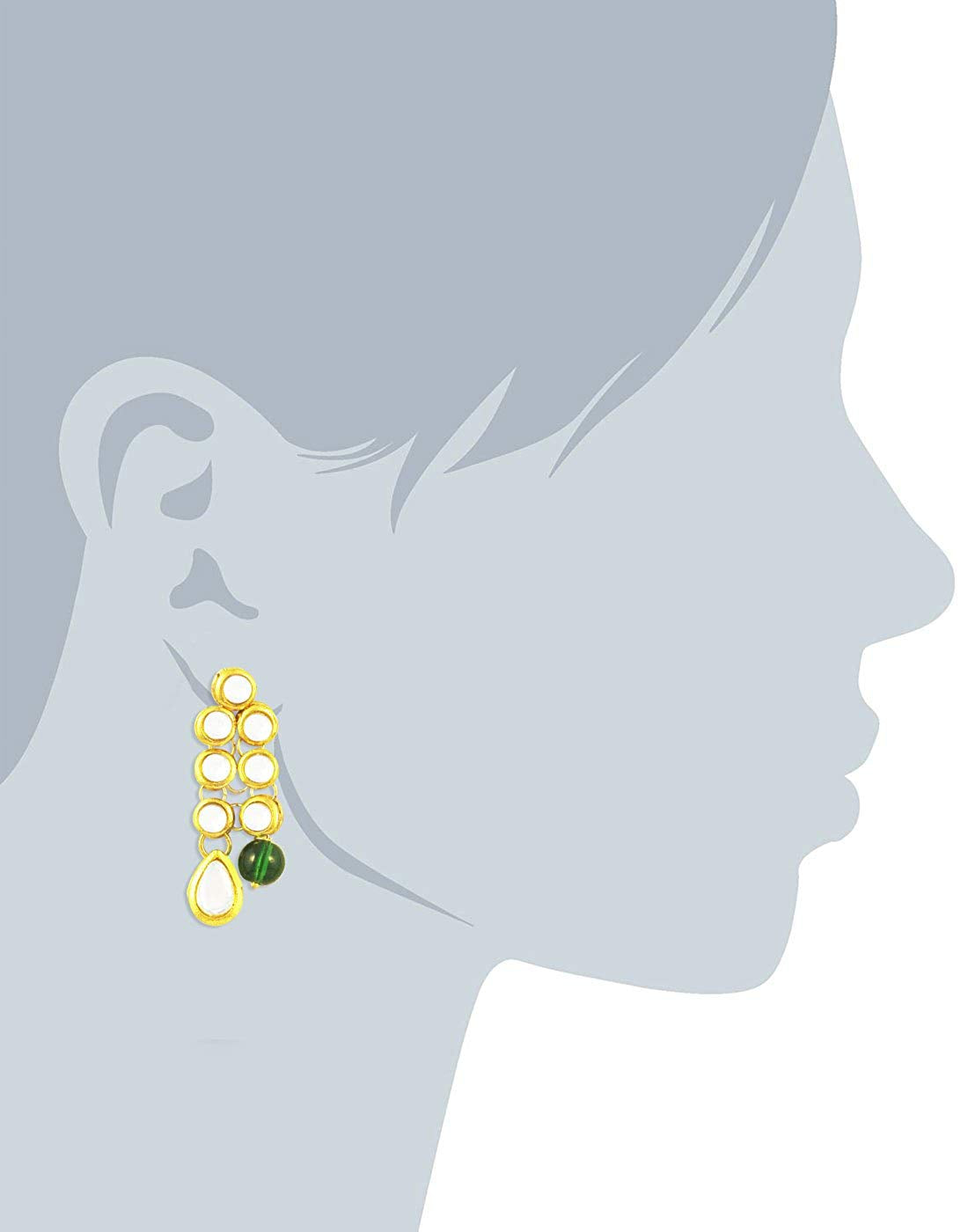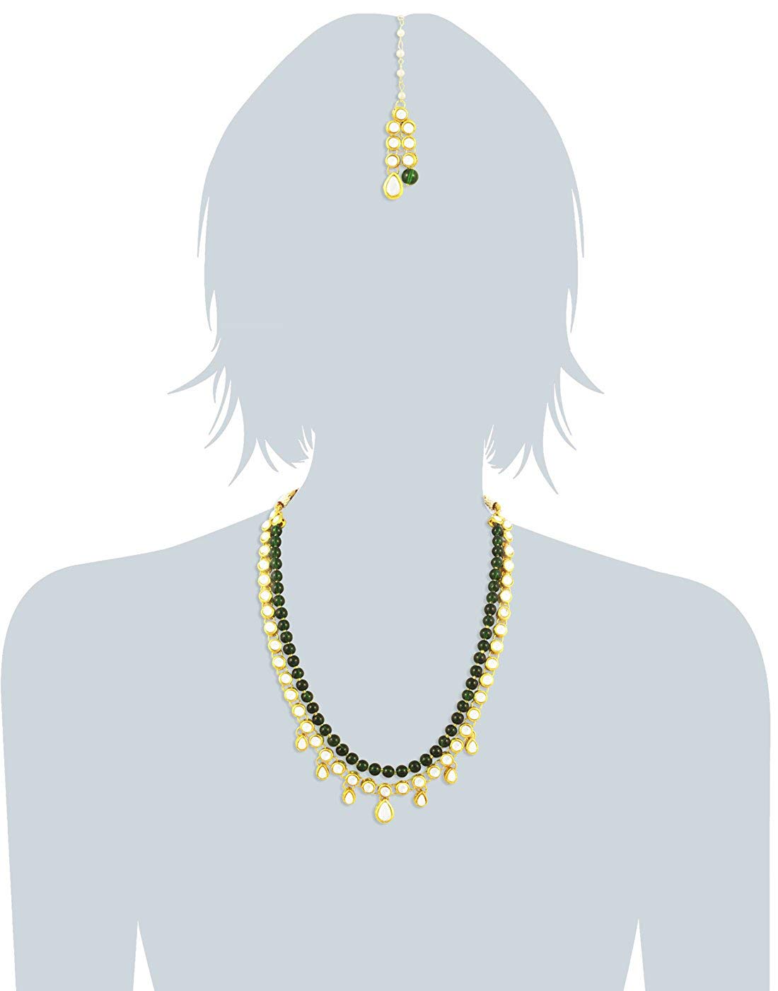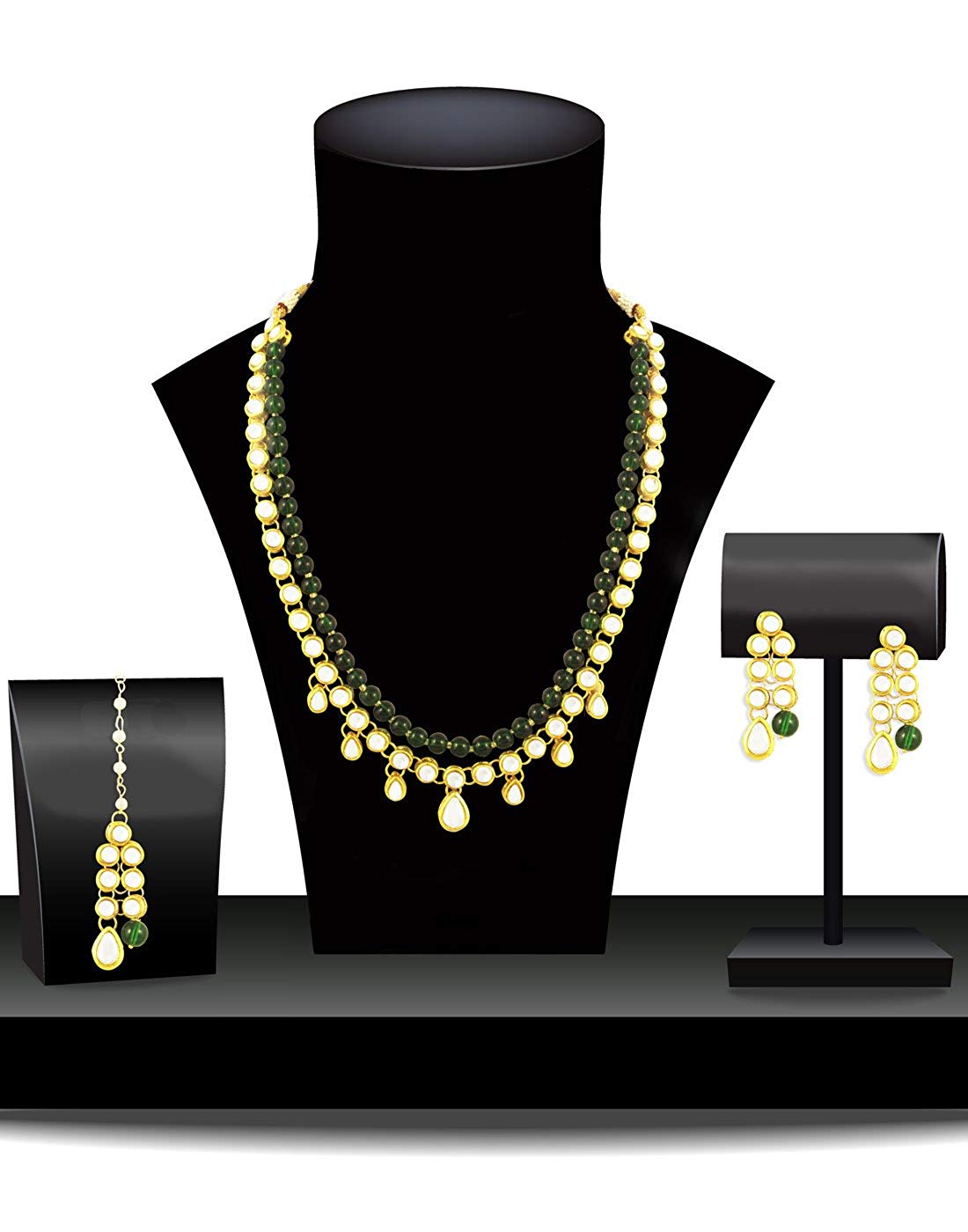 Karatcart 22K GoldPlated Kundan Layered Green Drop Ethnic Rani Haar Necklace Set