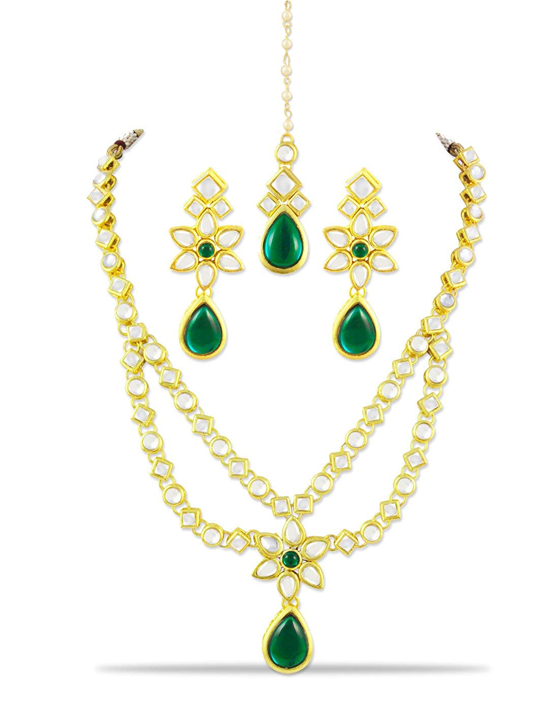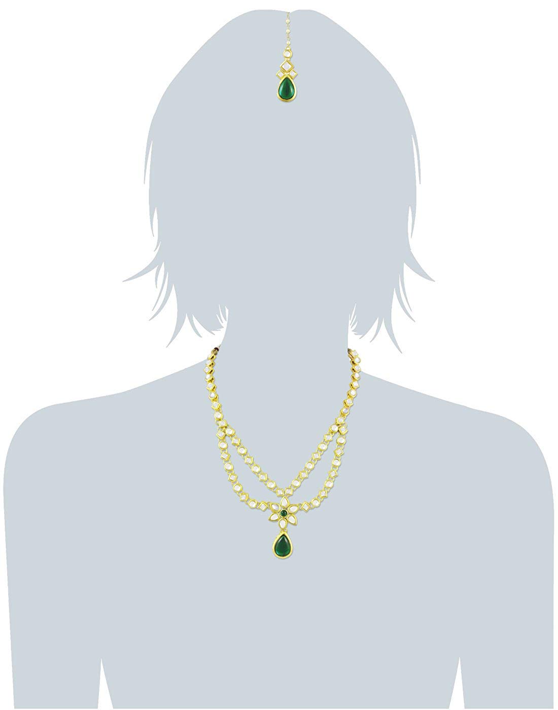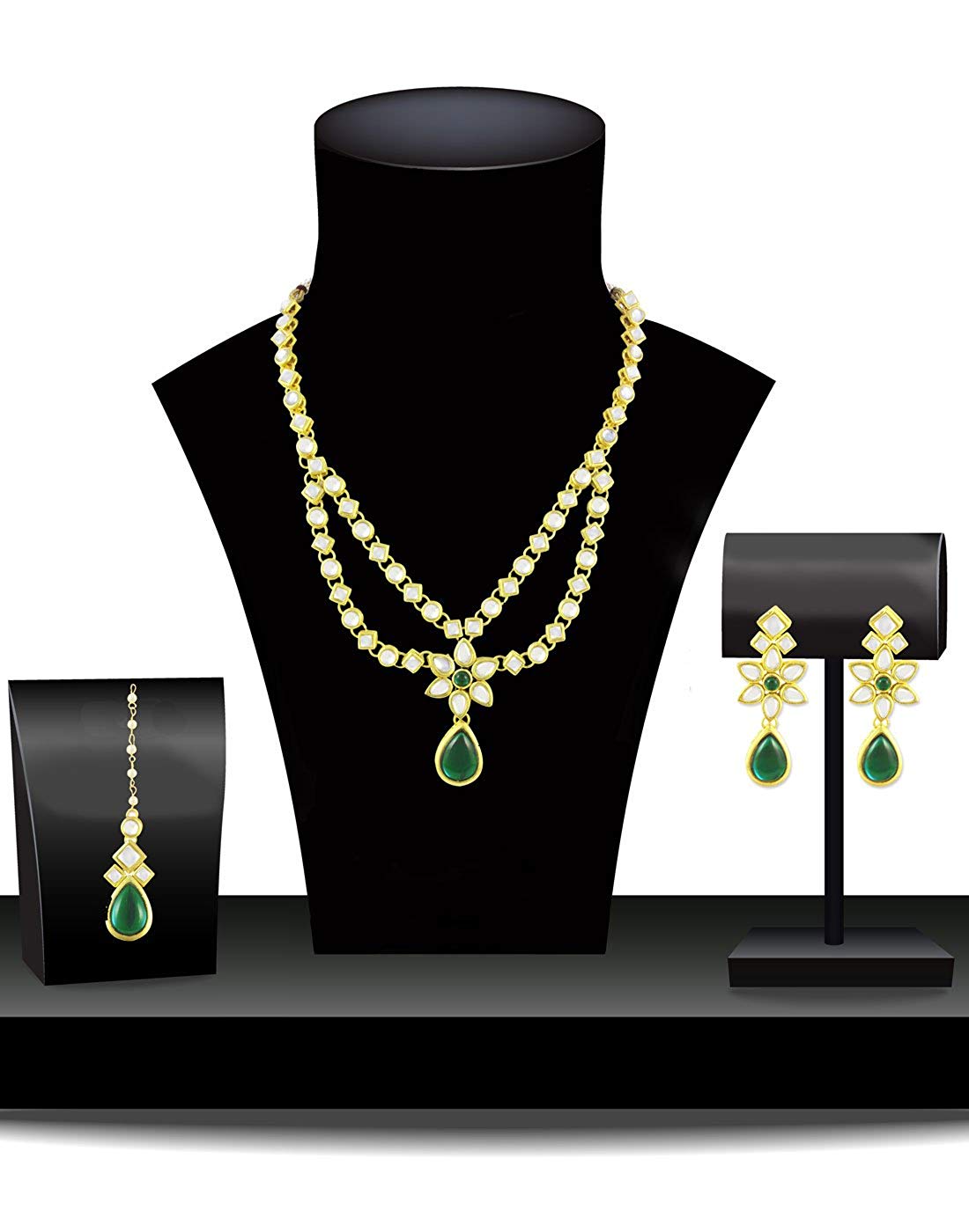 Karatcart 22K GoldPlated Kundan Layered Green Drop Ethnic Necklace Set for Women