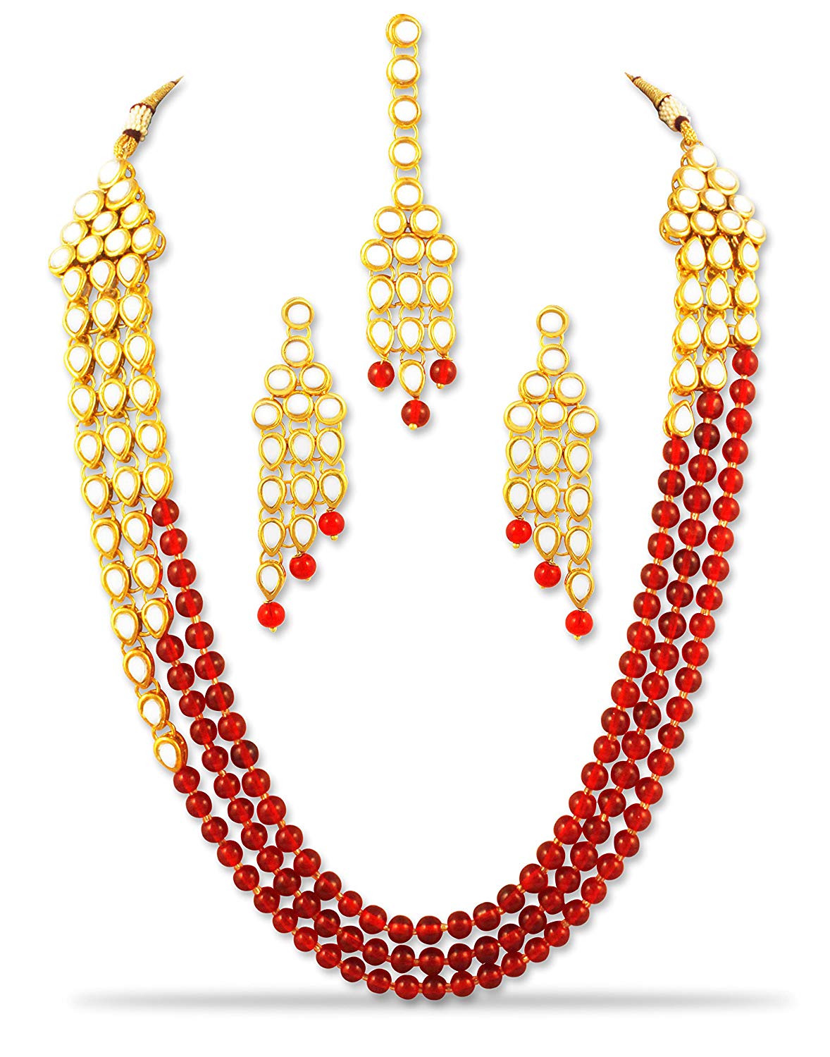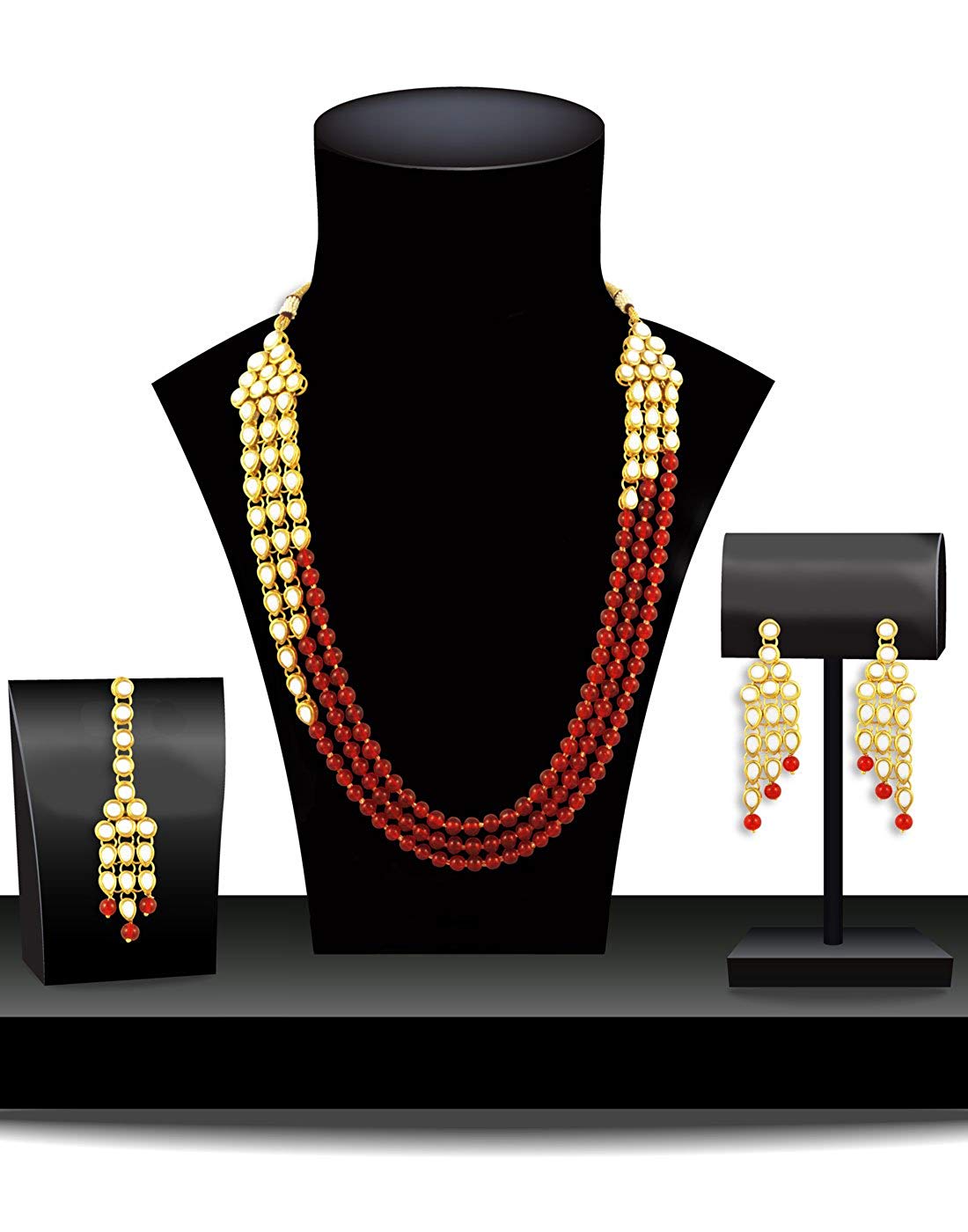 Karatcart 22K GoldPlated Antique Rani Haar Kundan Necklace Set for Women