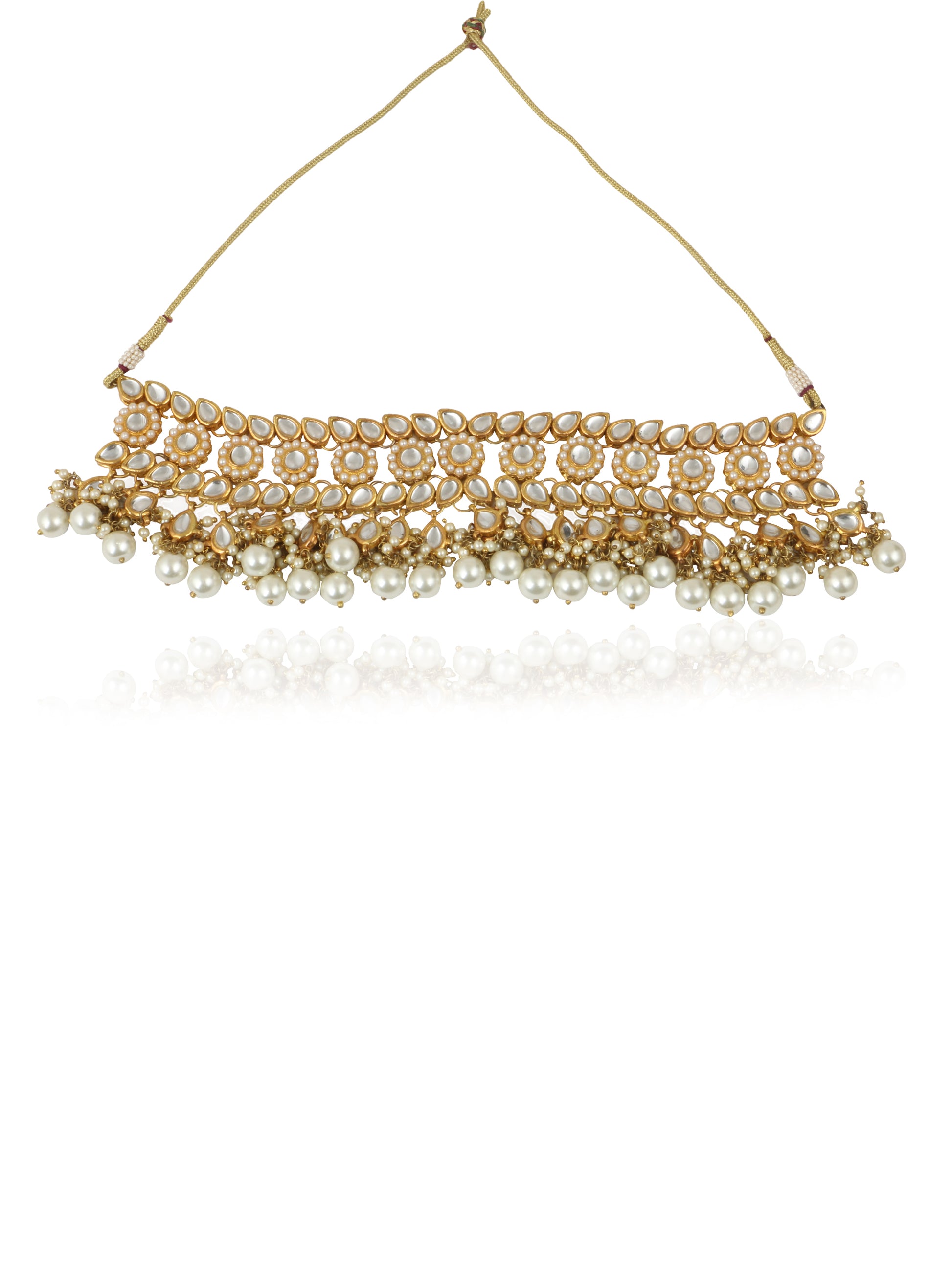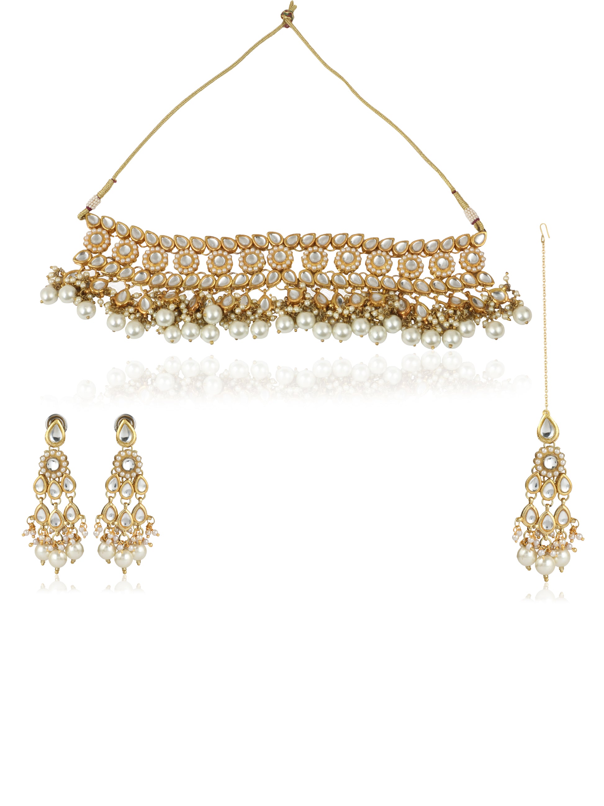 - Antique origings Kundan Choker Necklace with Earrings and Maangtikka