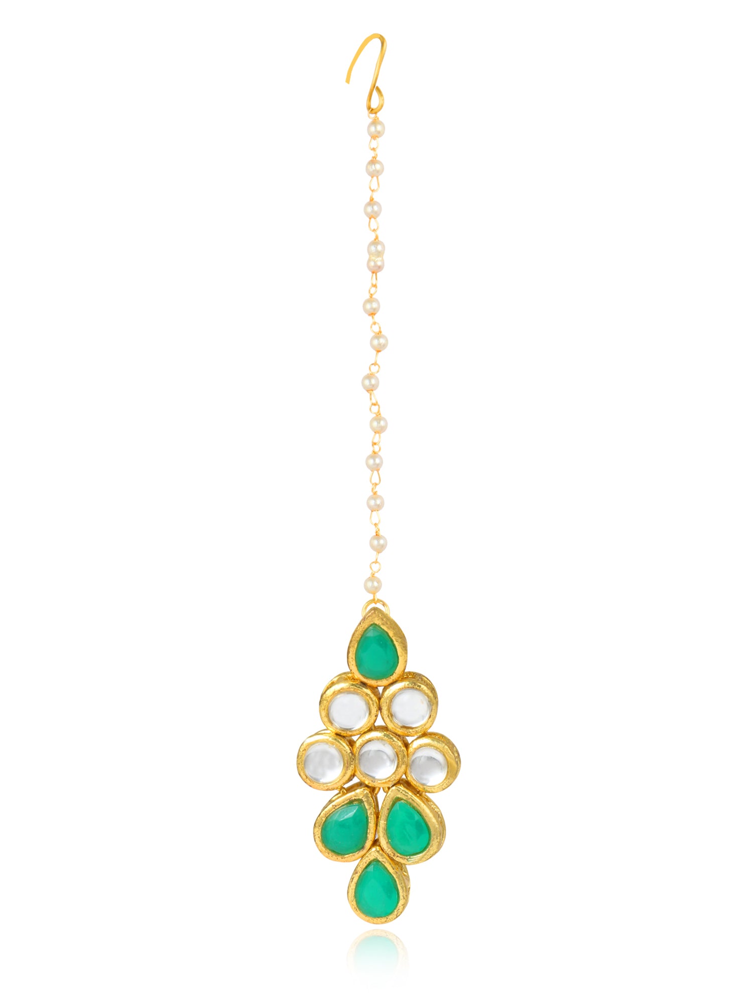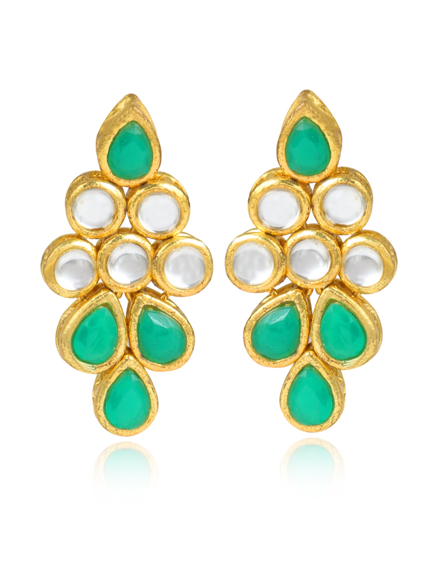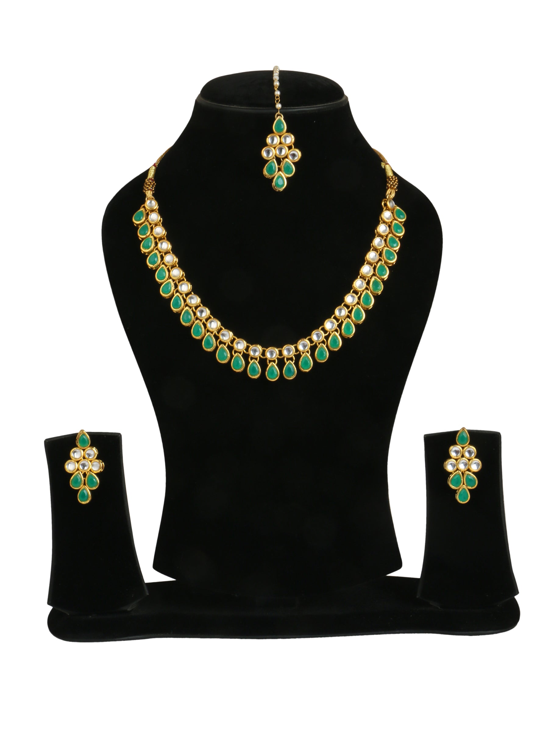 - 22K GoldPlated Green Drop Kundan Necklace For Women