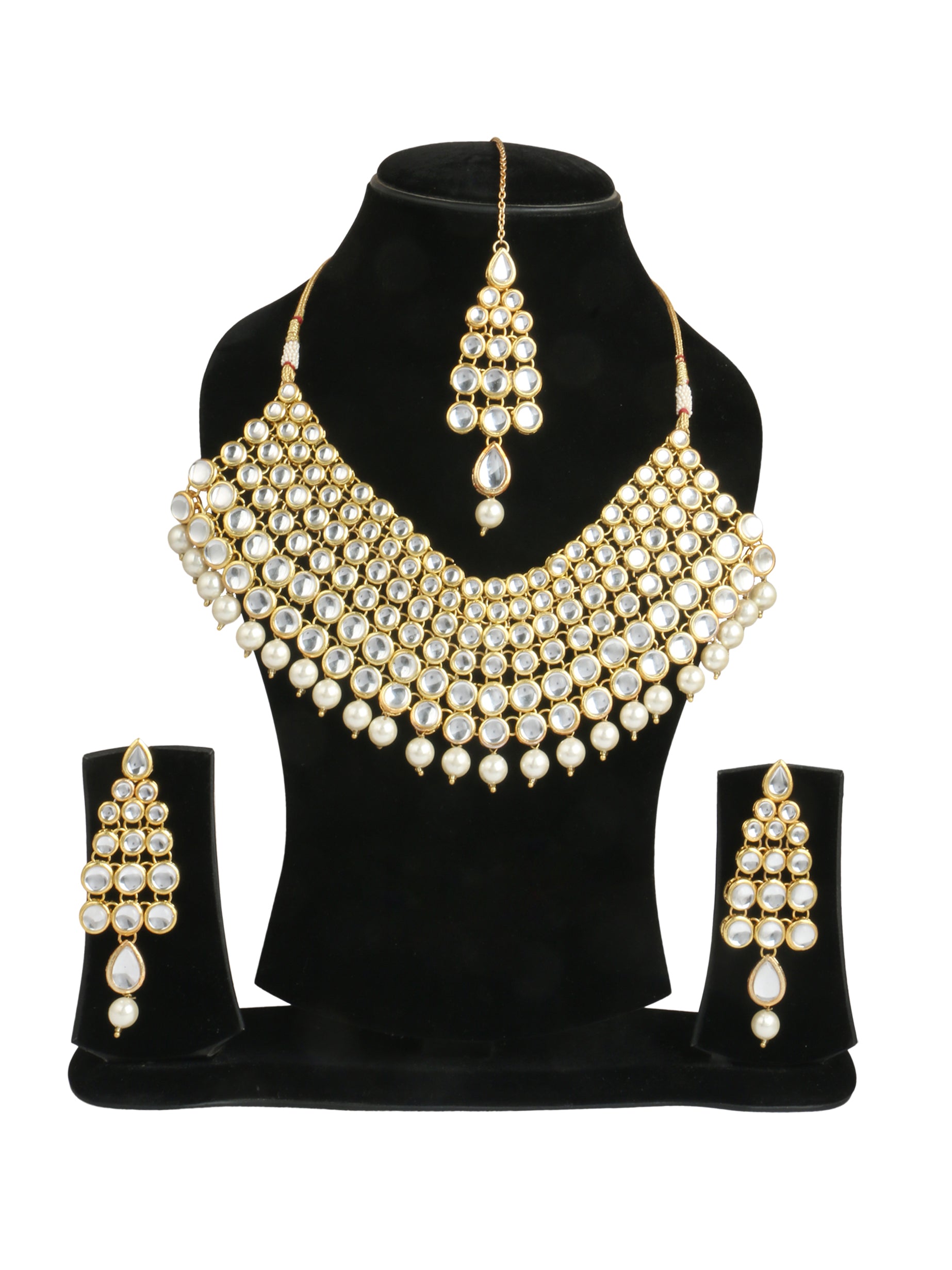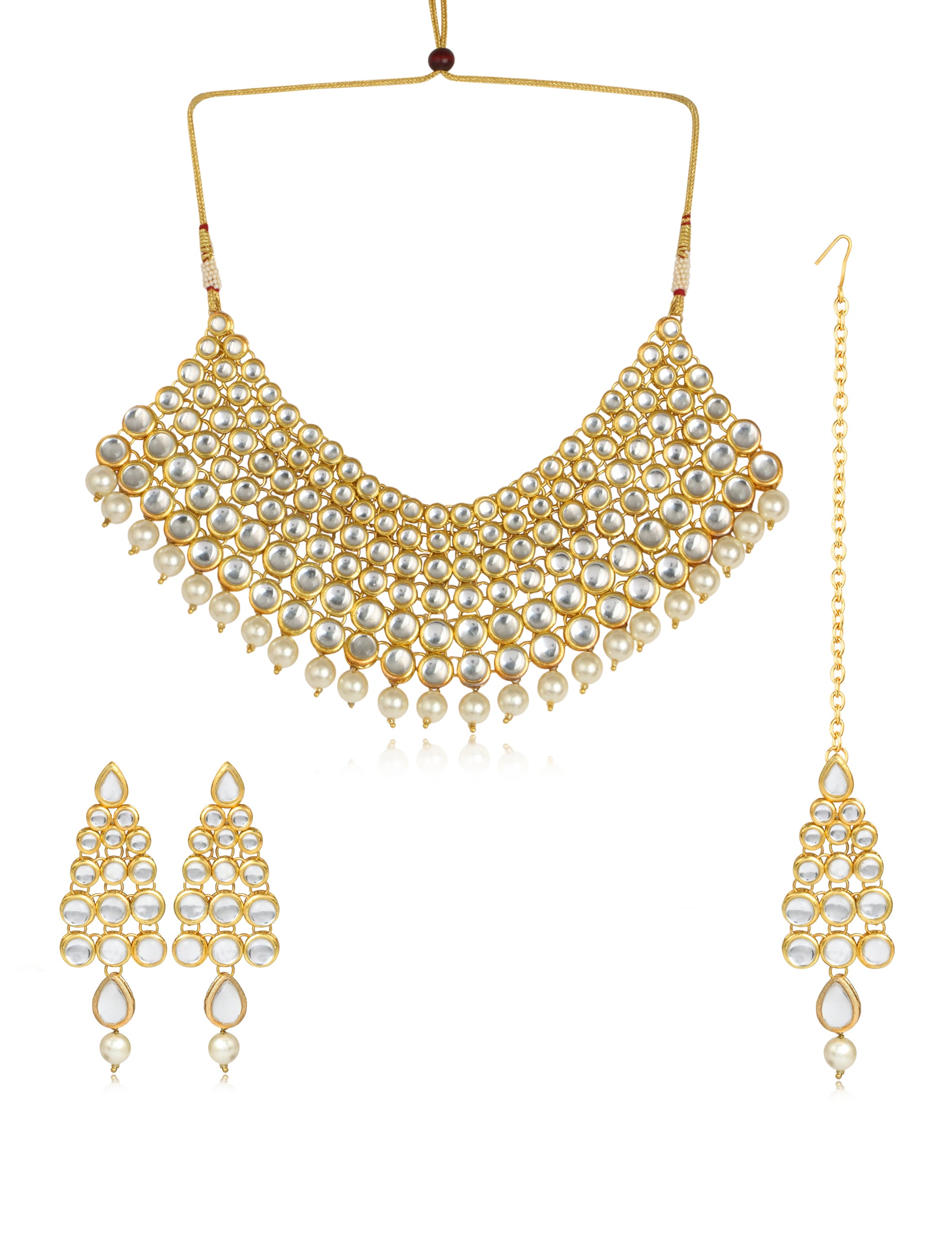 - Karatcart 22K GoldPlated Antique origins Kundan Red Drop Long Necklace For Women
