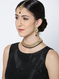 Karatcart Gold-Plated Handcrafted Kundan & Black Beads Studded Choker Necklace Set