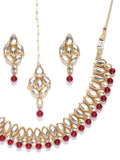 Karatcart Gold-Plated Handcrafted Kundan & Red Beads Studded Necklace Set