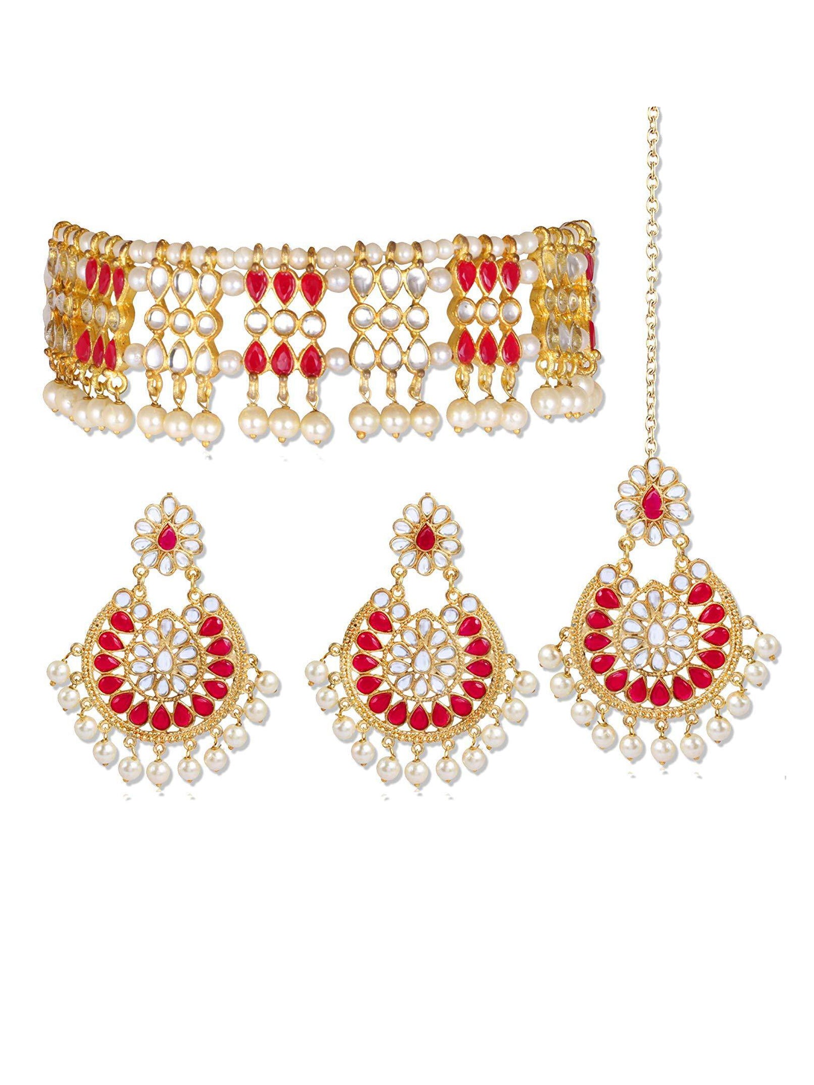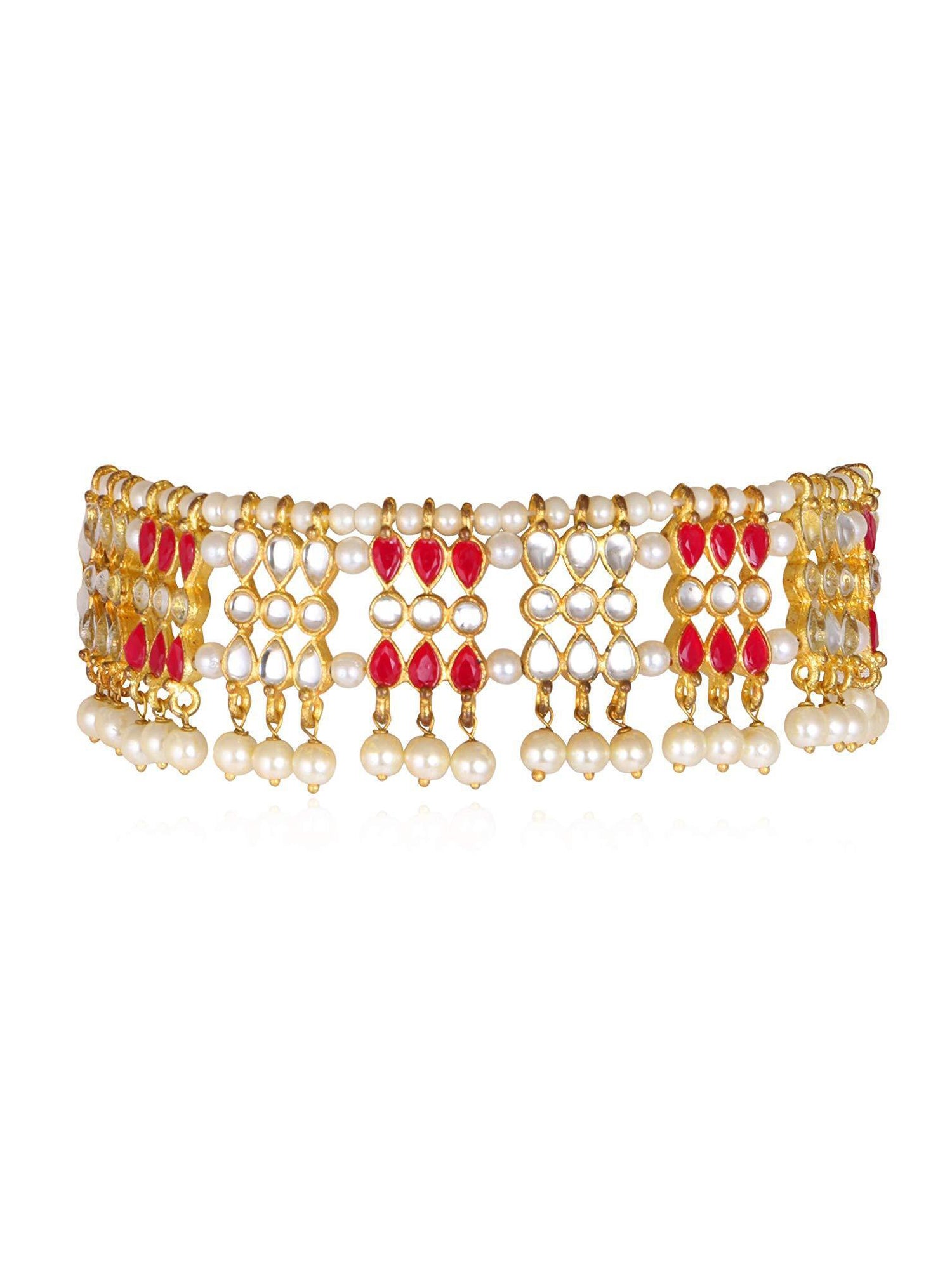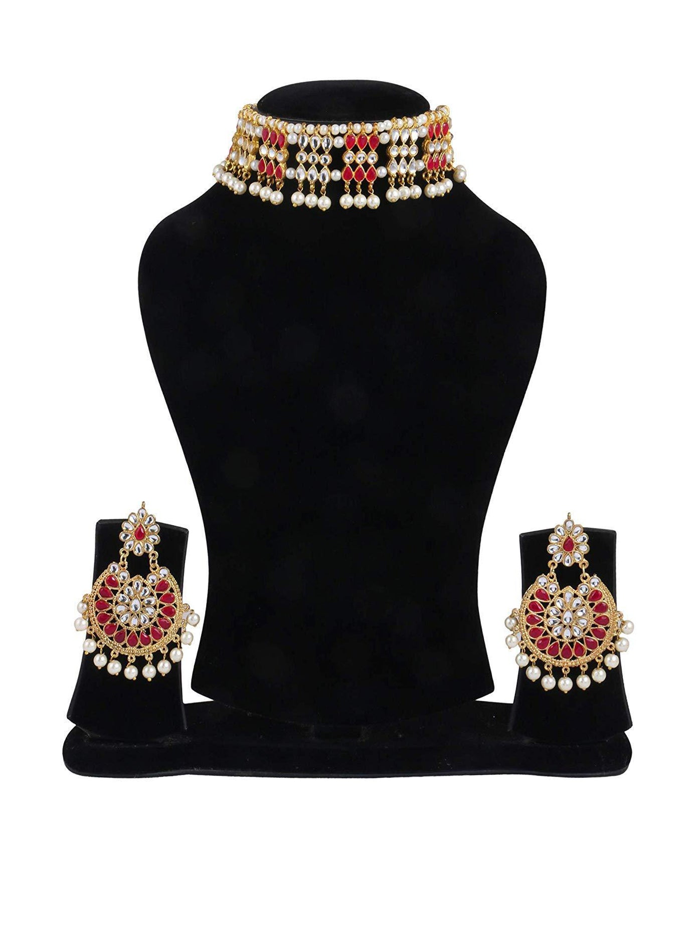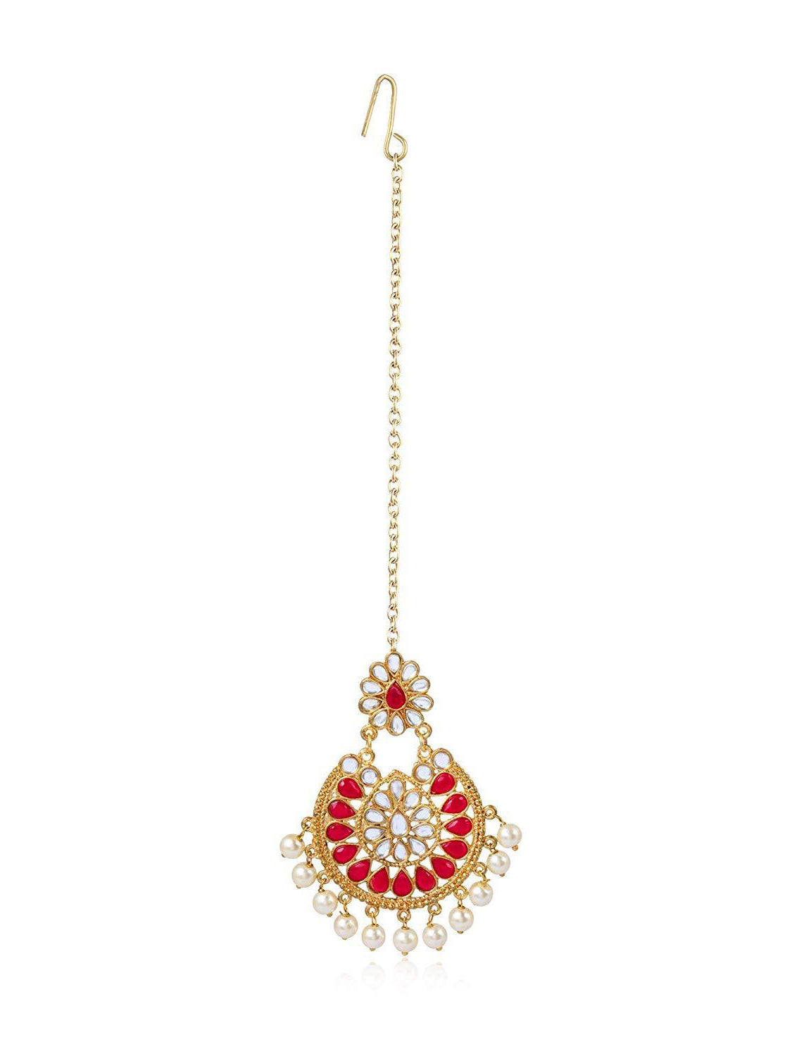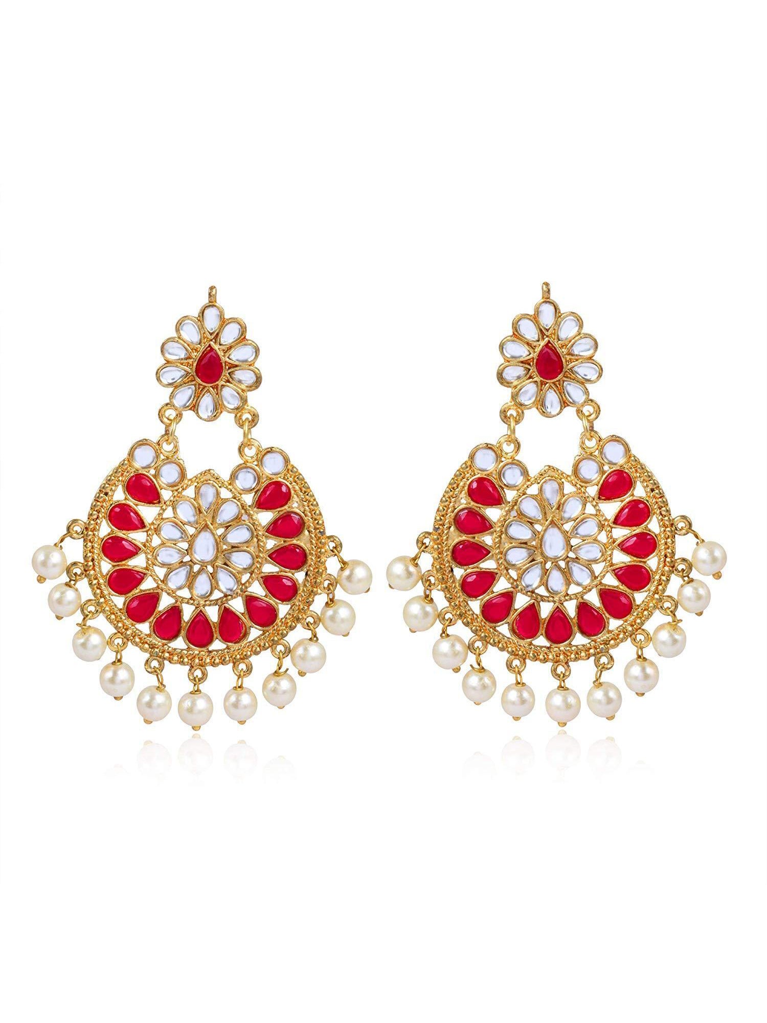 - Kundan earrings with Chaind and Green Beads. Made with Internationally approved skin friendly materials