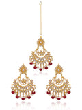 Karatcart Red Beads and Kundan Chandbali Earrings with Maangtikka