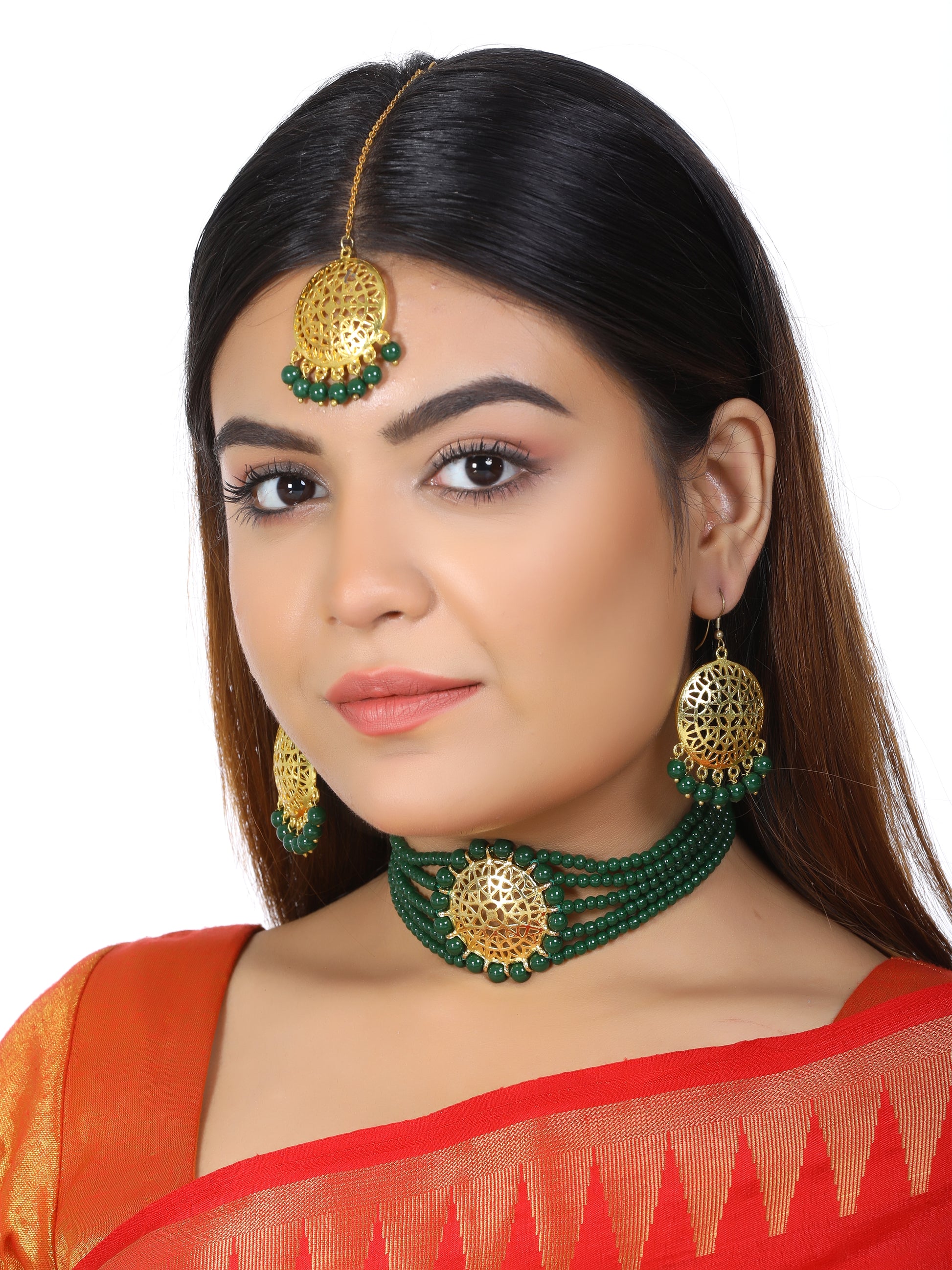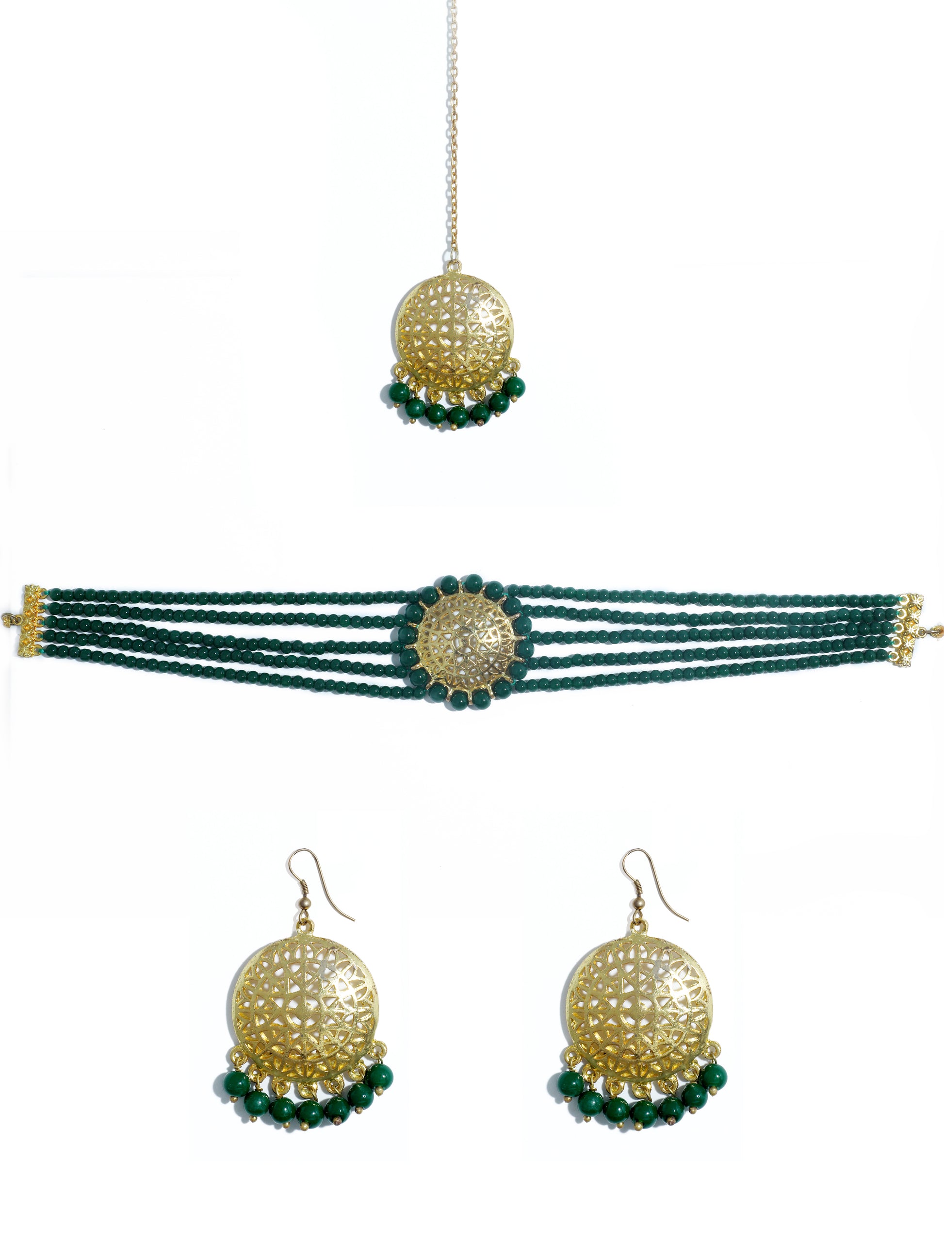 Dark Green Beaded Choker Necklace Set